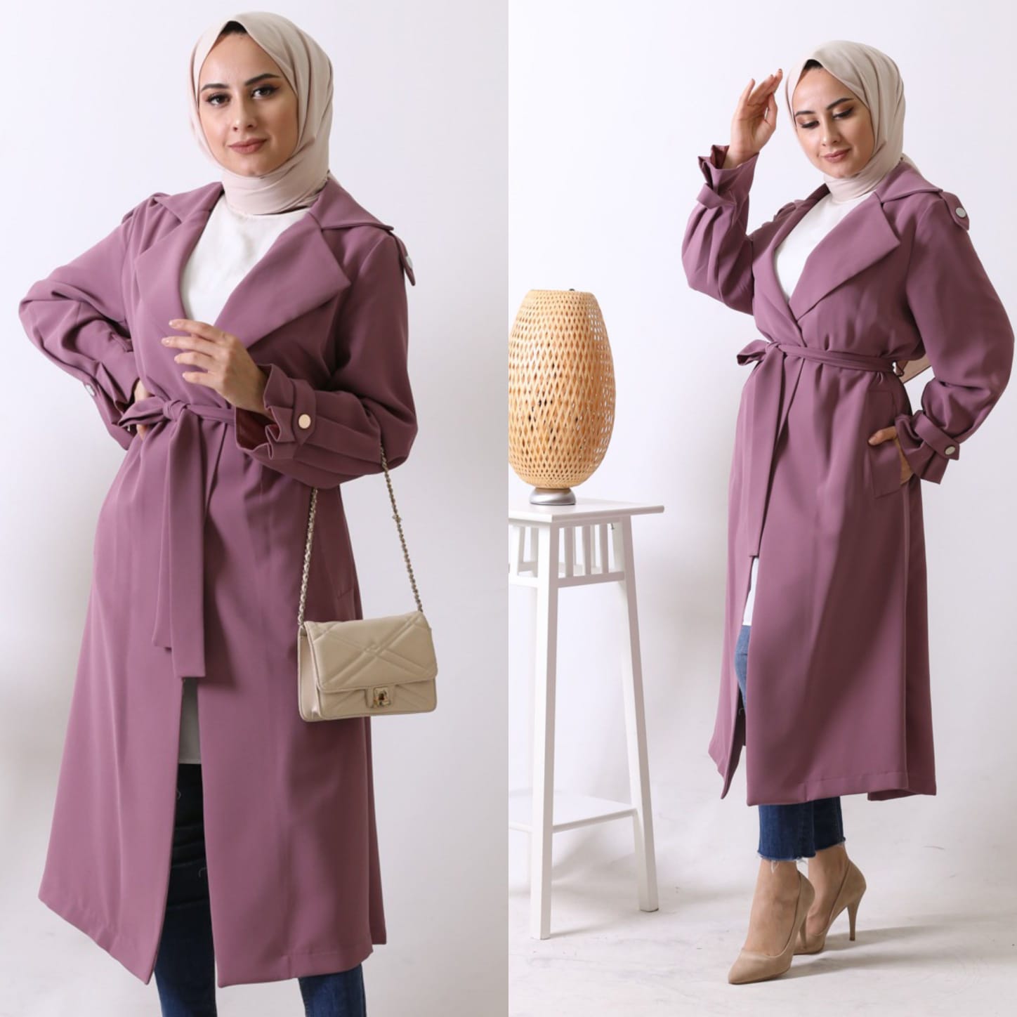 Örme krep kumaş trençler - Saklı tesettür kadın giyim elbise etek tunik takım