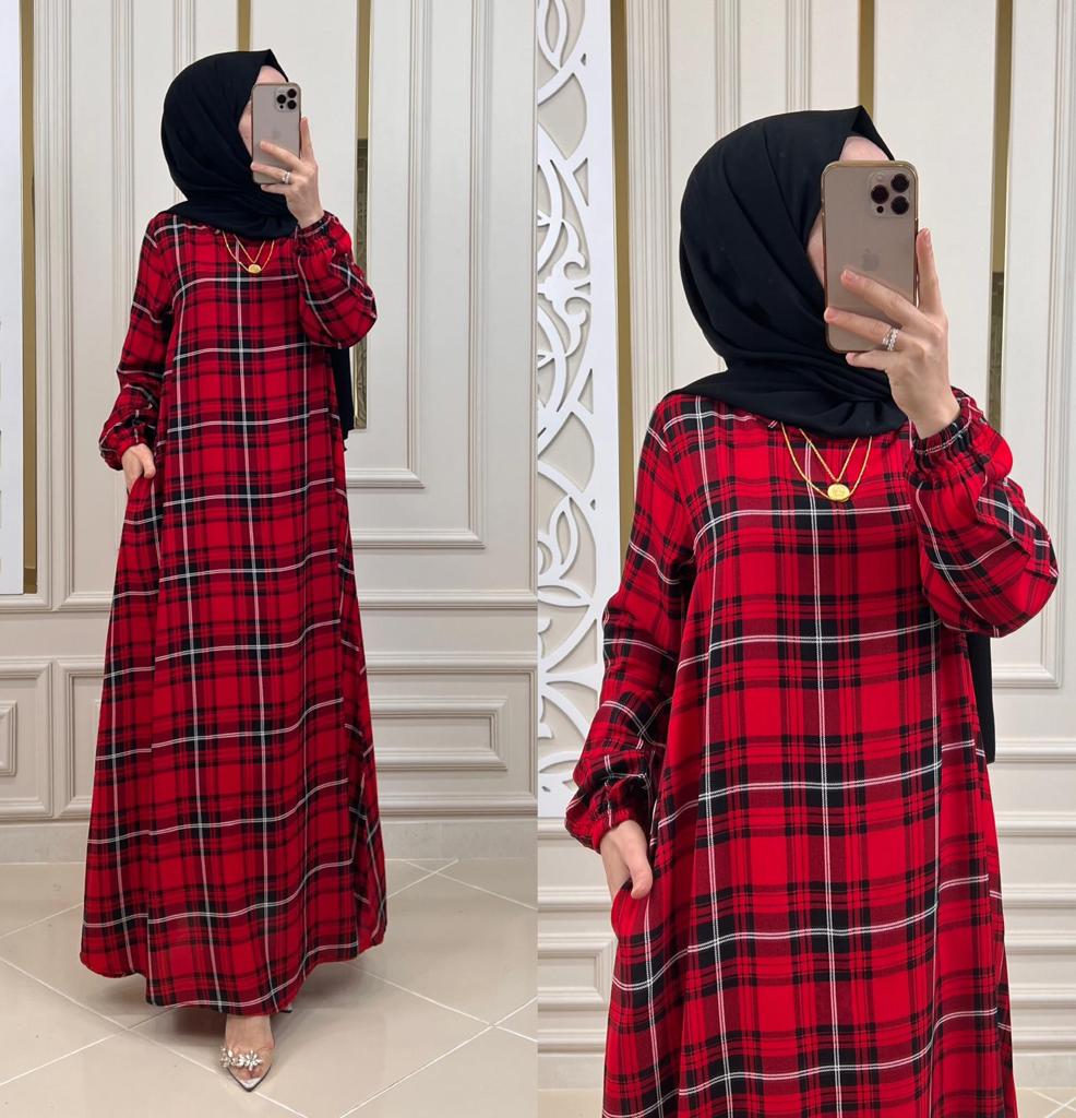 Pamuklu viskon kumaş elbise - Saklı tesettür kadın giyim elbise etek tunik takım
