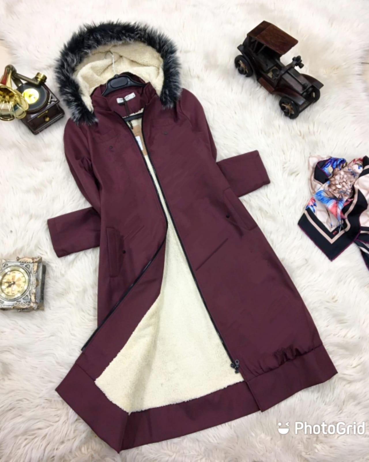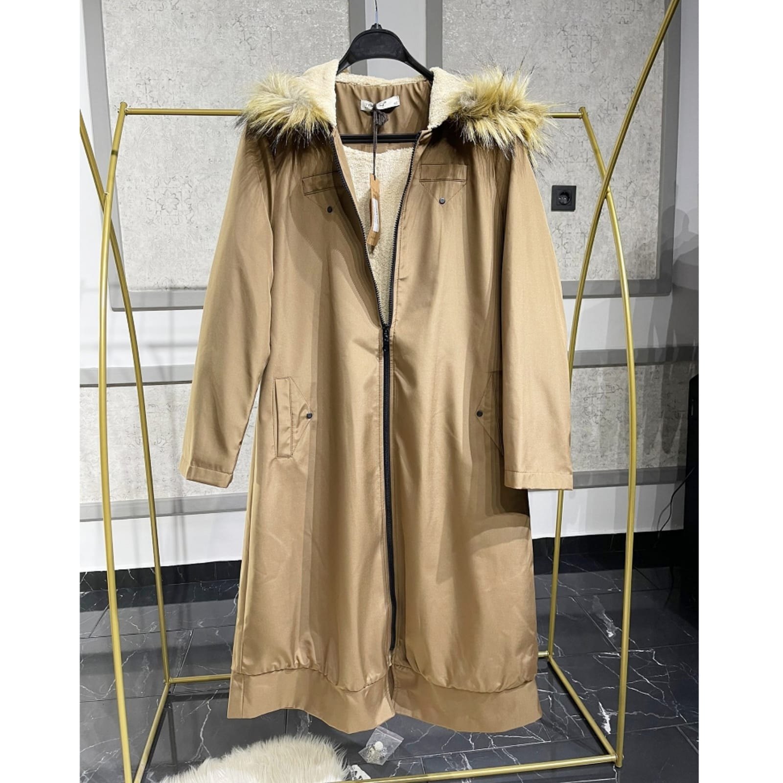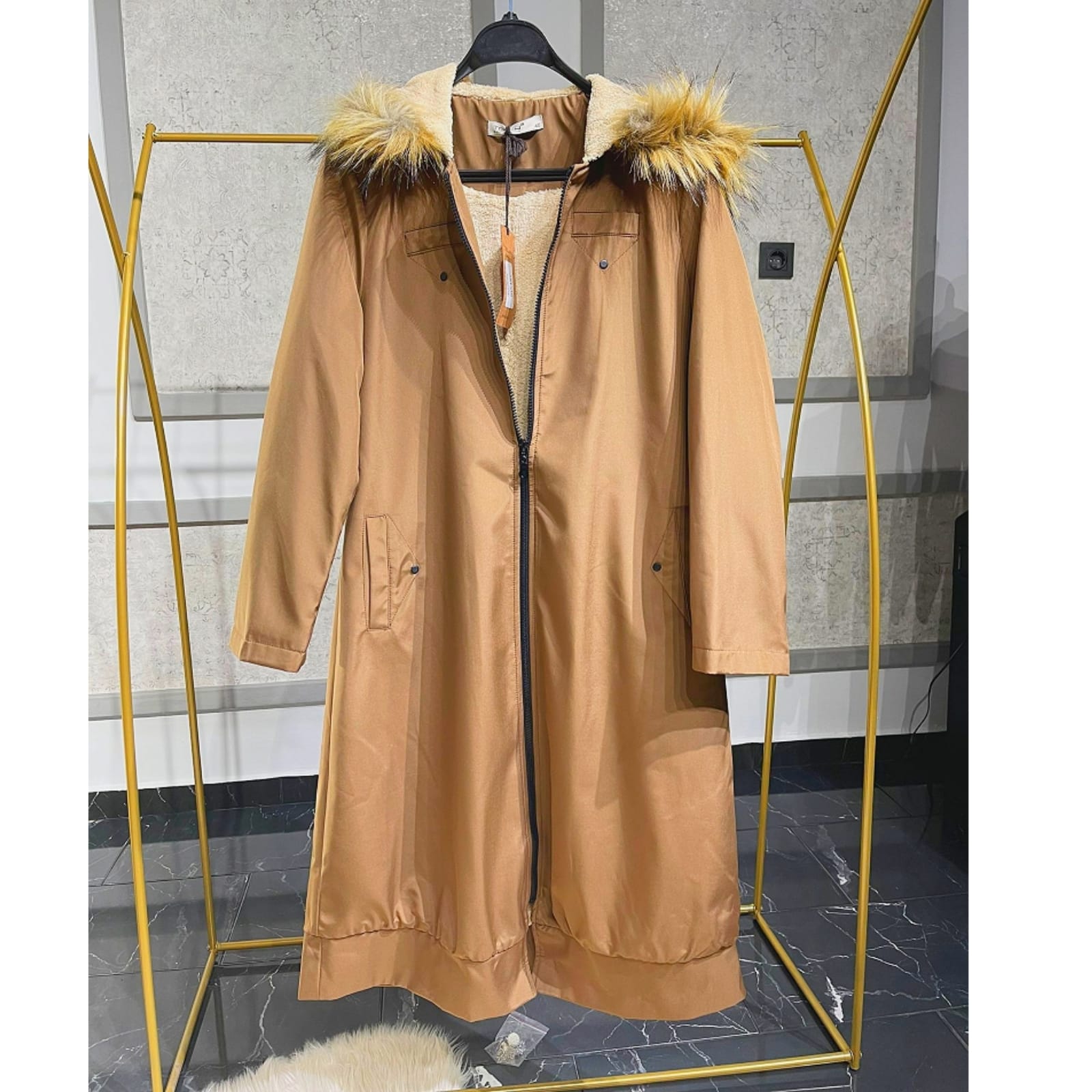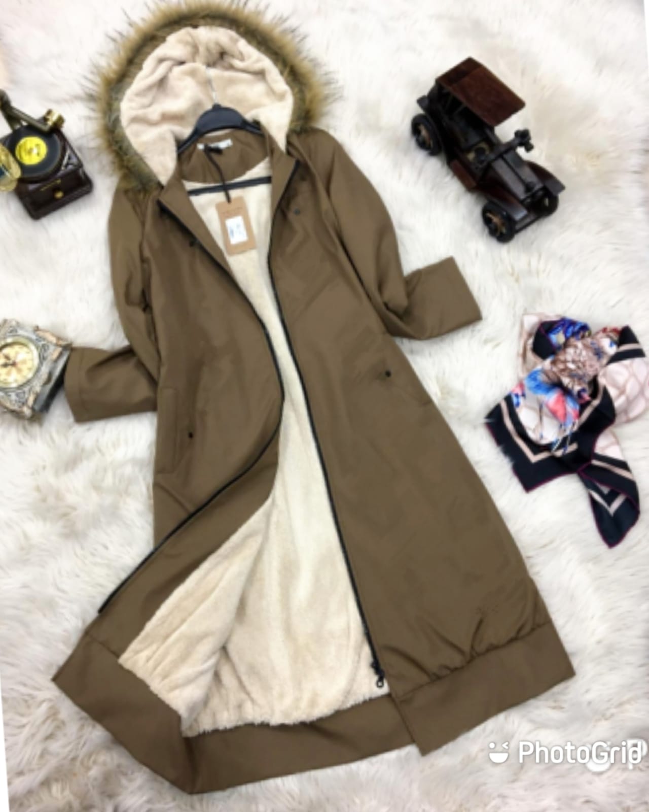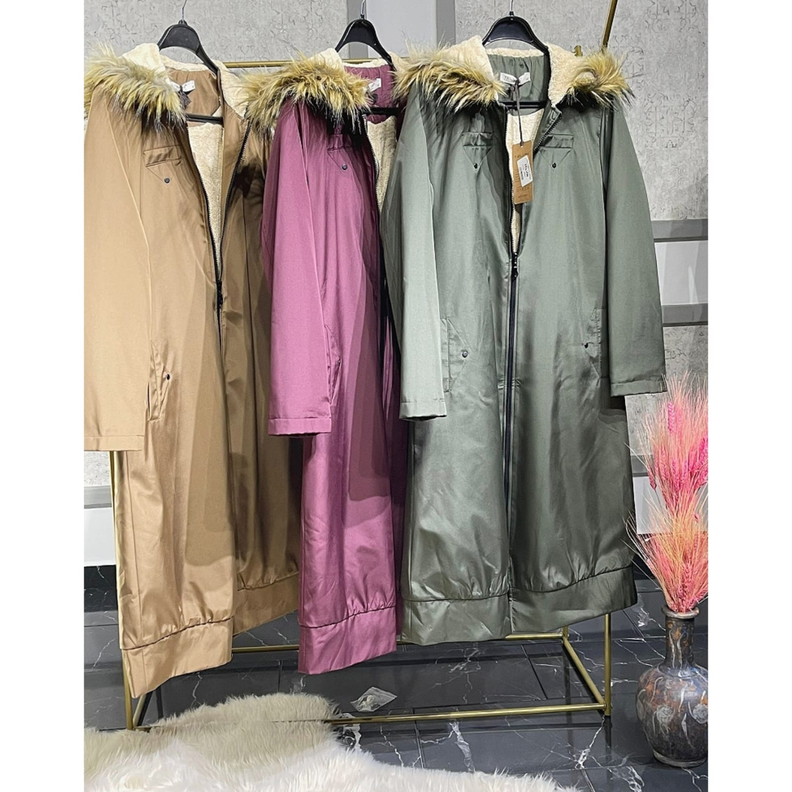 Peluş kürklü kaban - Saklı tesettür kadın giyim elbise etek tunik takım