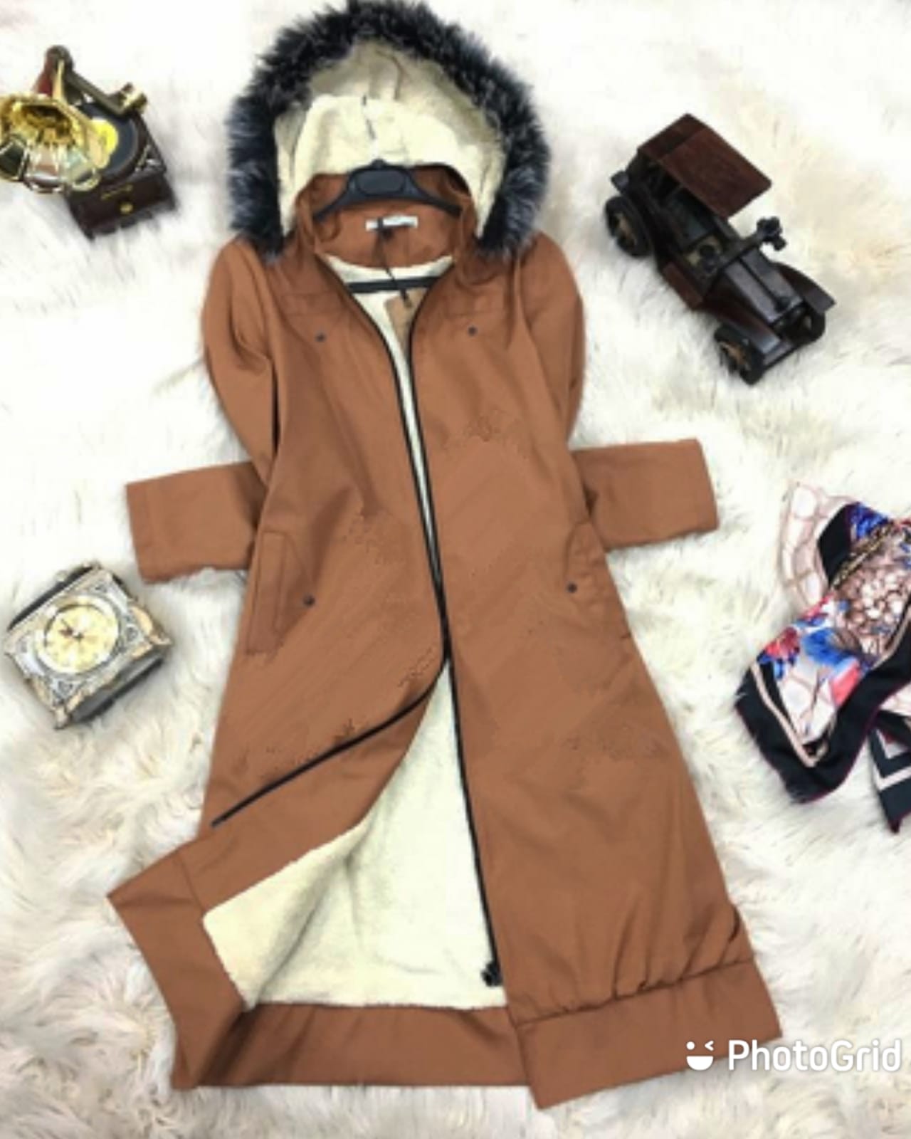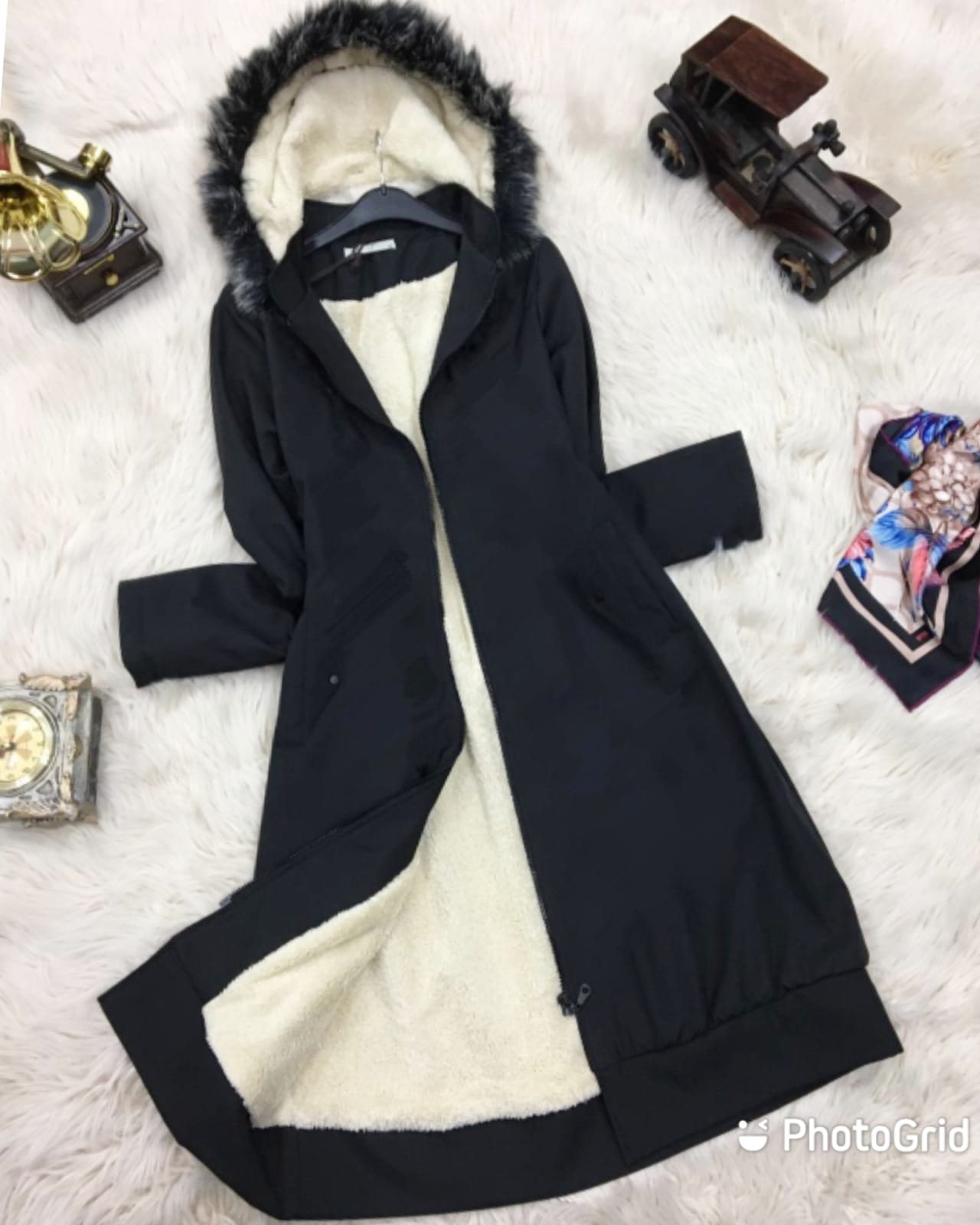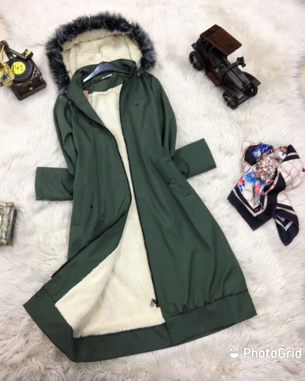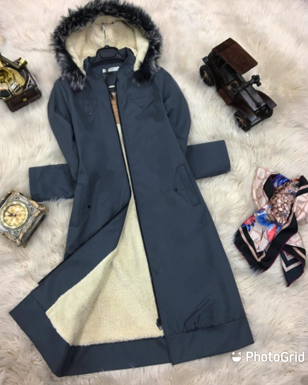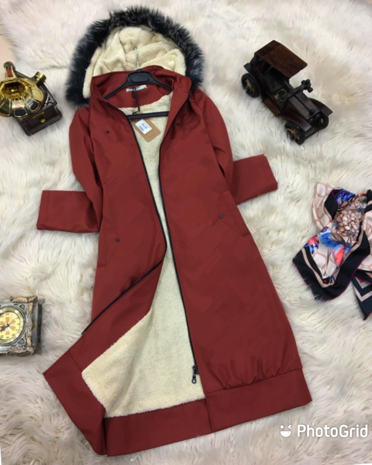 Peluş kürklü kaban - Saklı tesettür kadın giyim elbise etek tunik takım