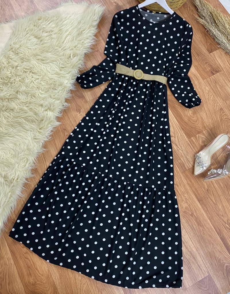 Sevilen Puantiyeli Rengarenk Hasır Kemerli Elbiselerimiz🌹