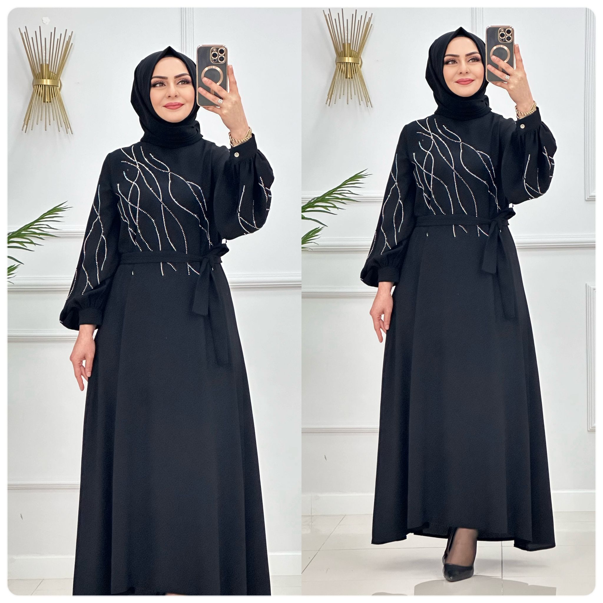 Birinci kalite krep kumaş taş baskılı Rana abiye