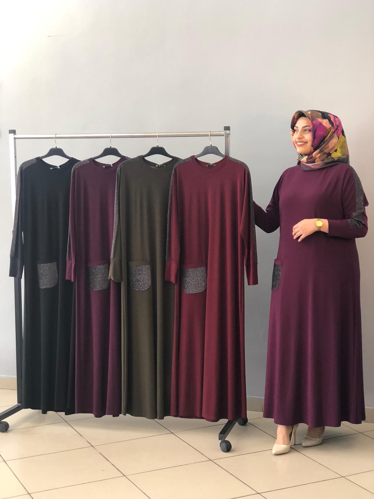 💫SİMLİ CEPLİ DETAYLI SANDY ELBİSE (Z)