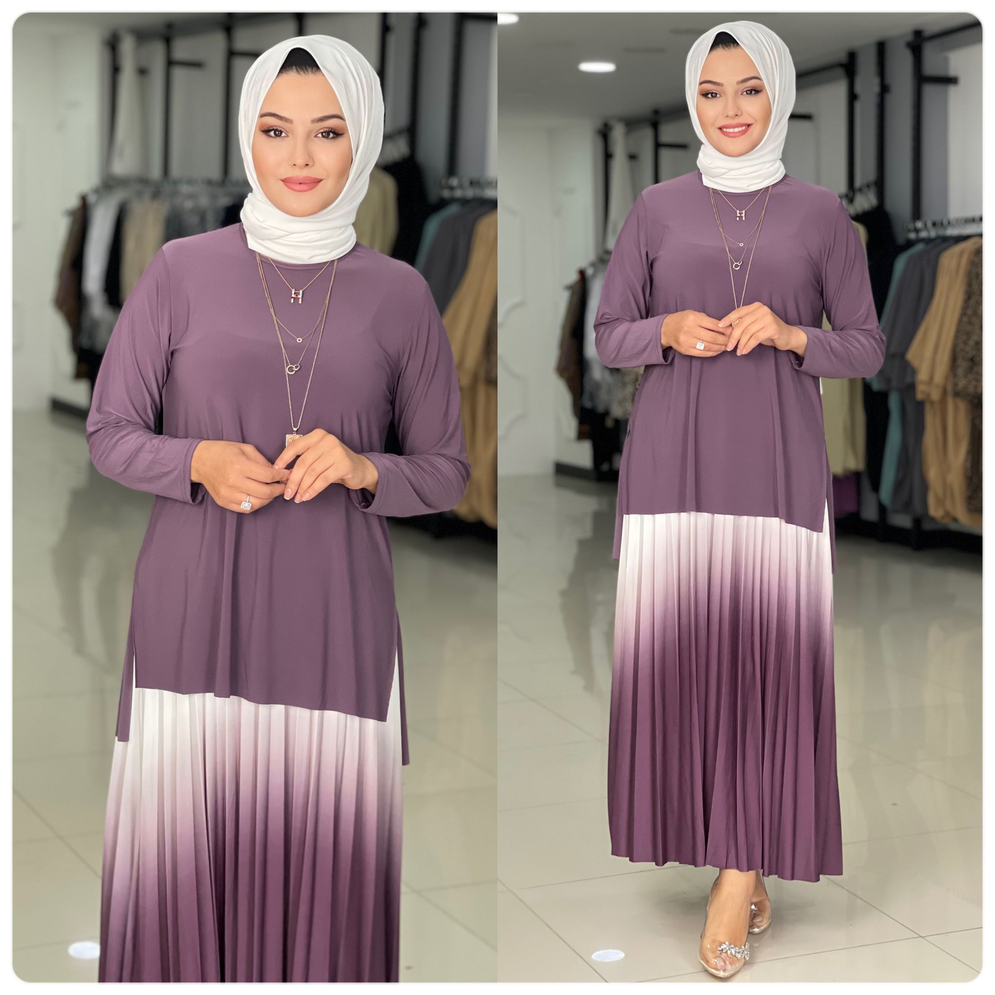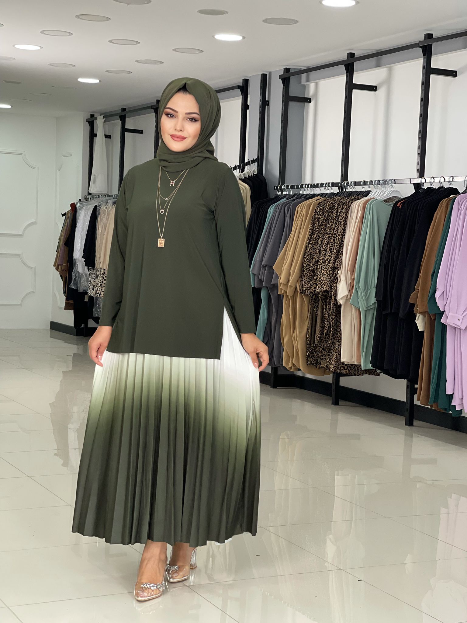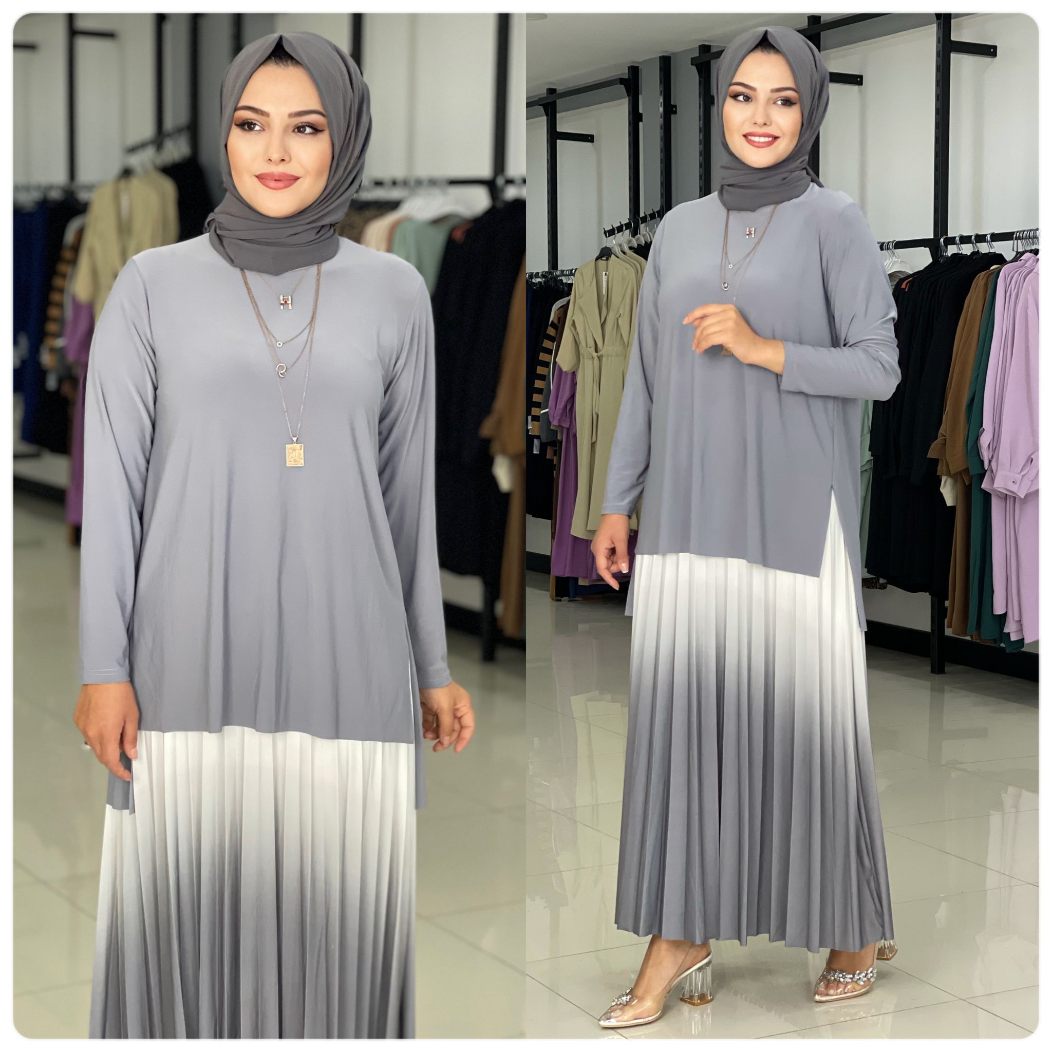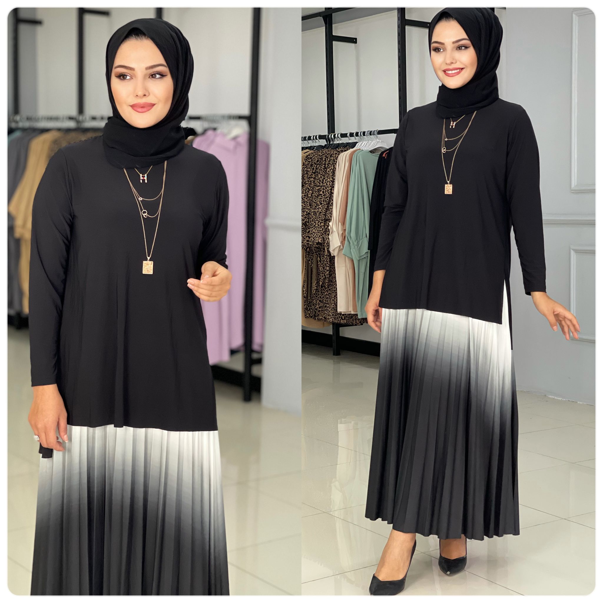 Sandy kumaş Ahenk piliseli etekli takımımız birbirinden güzel renkleriyle stokta