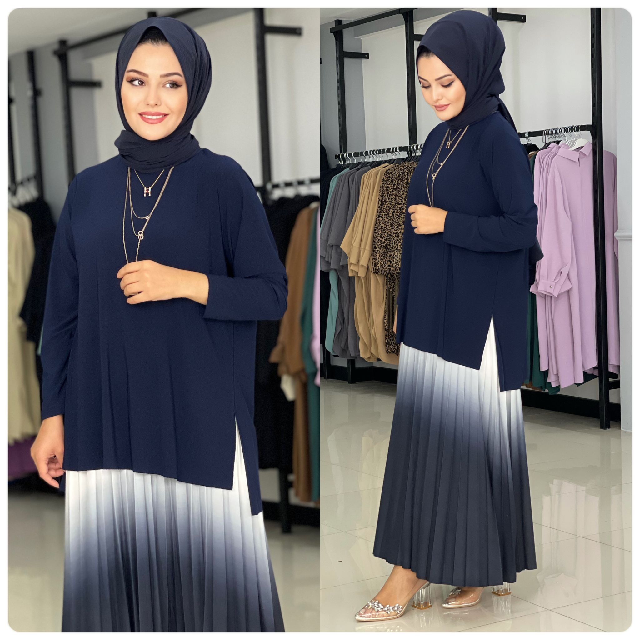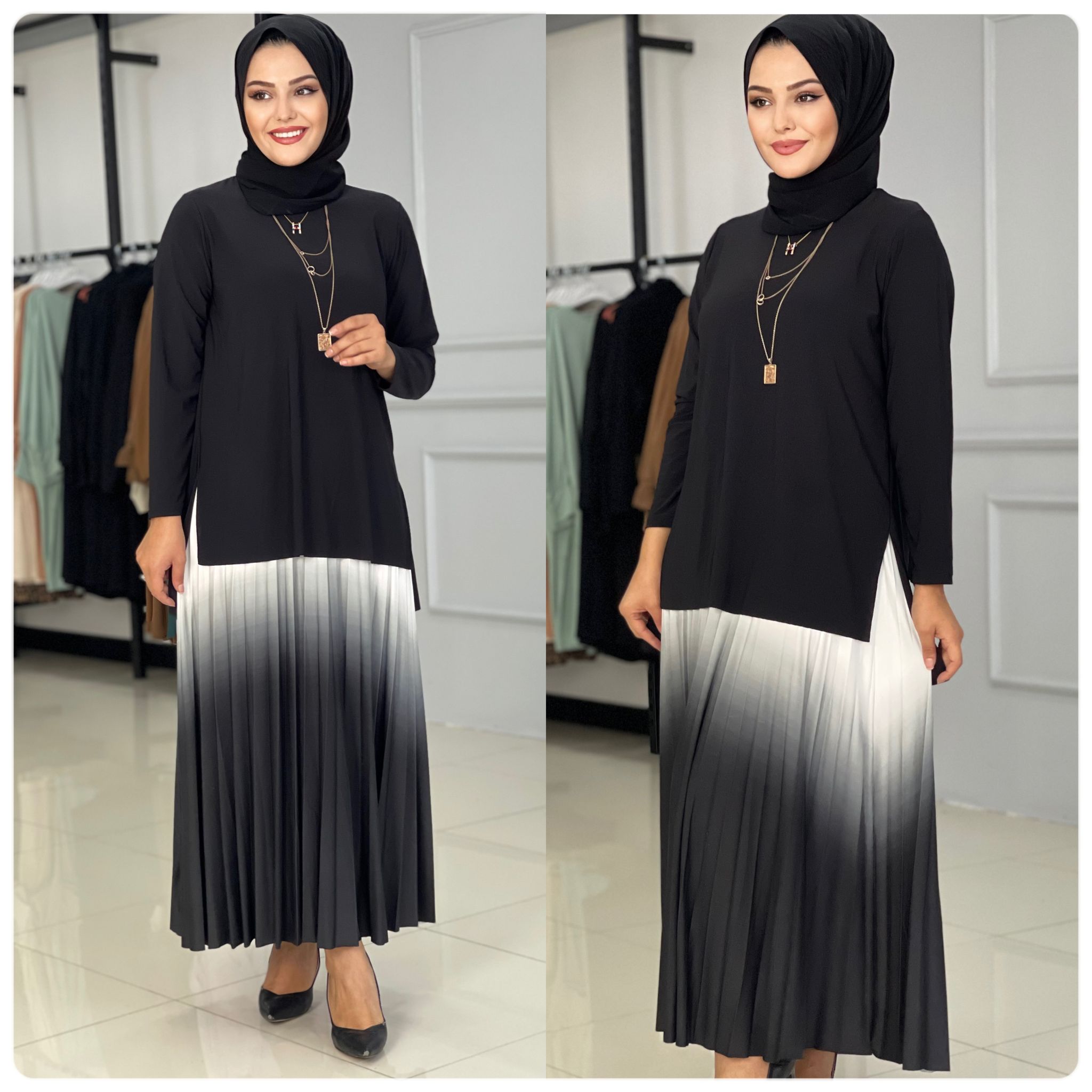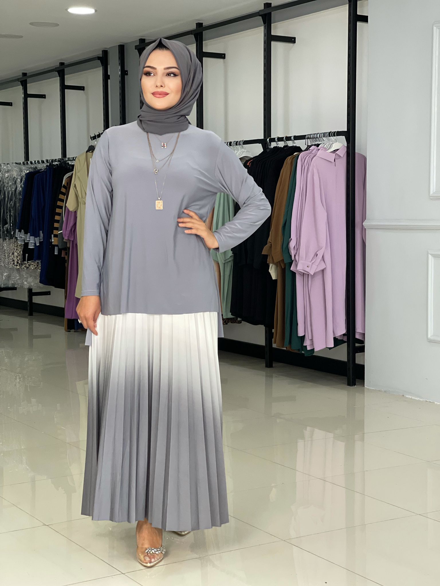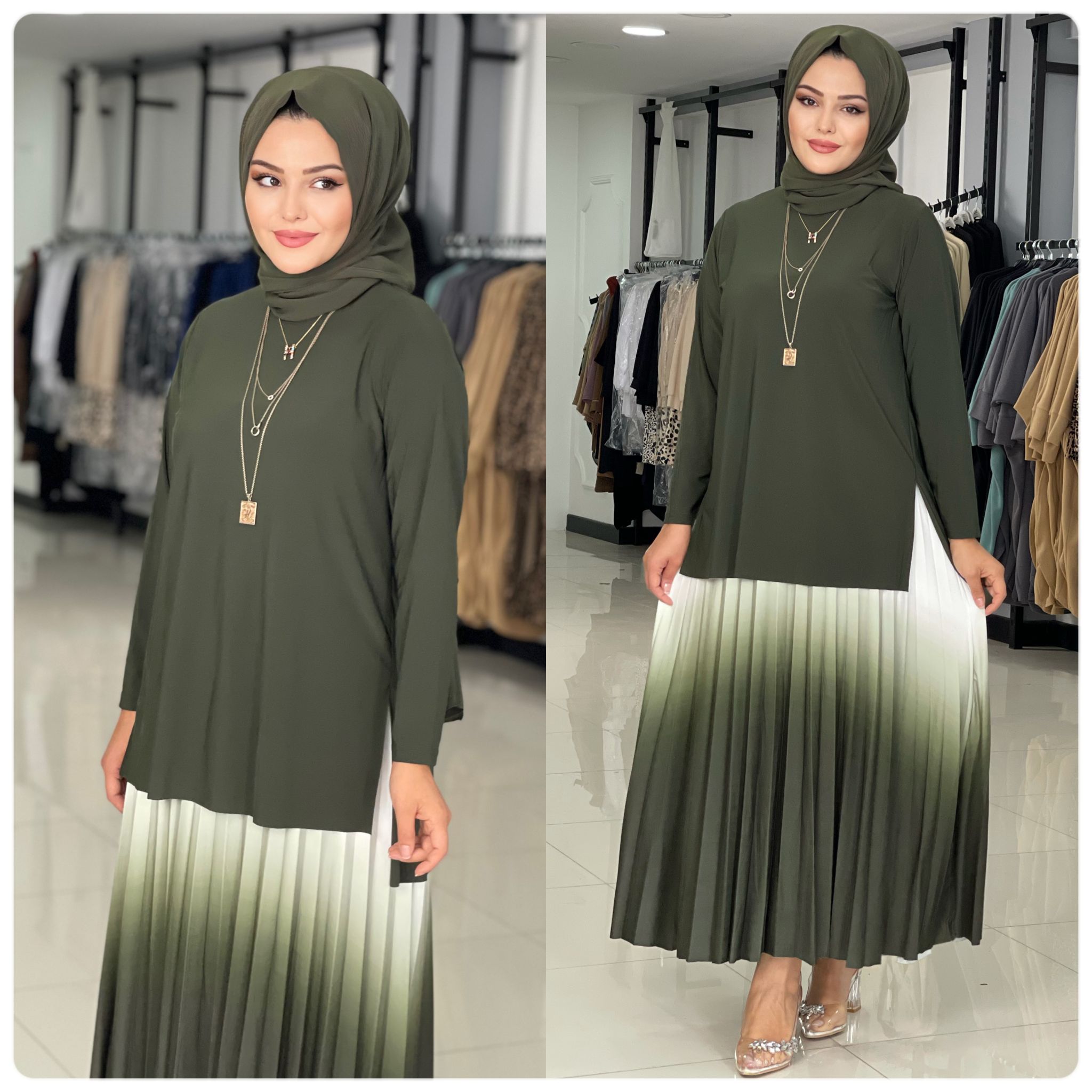 Sandy kumaş Ahenk piliseli etekli takımımız birbirinden güzel renkleriyle stokta
