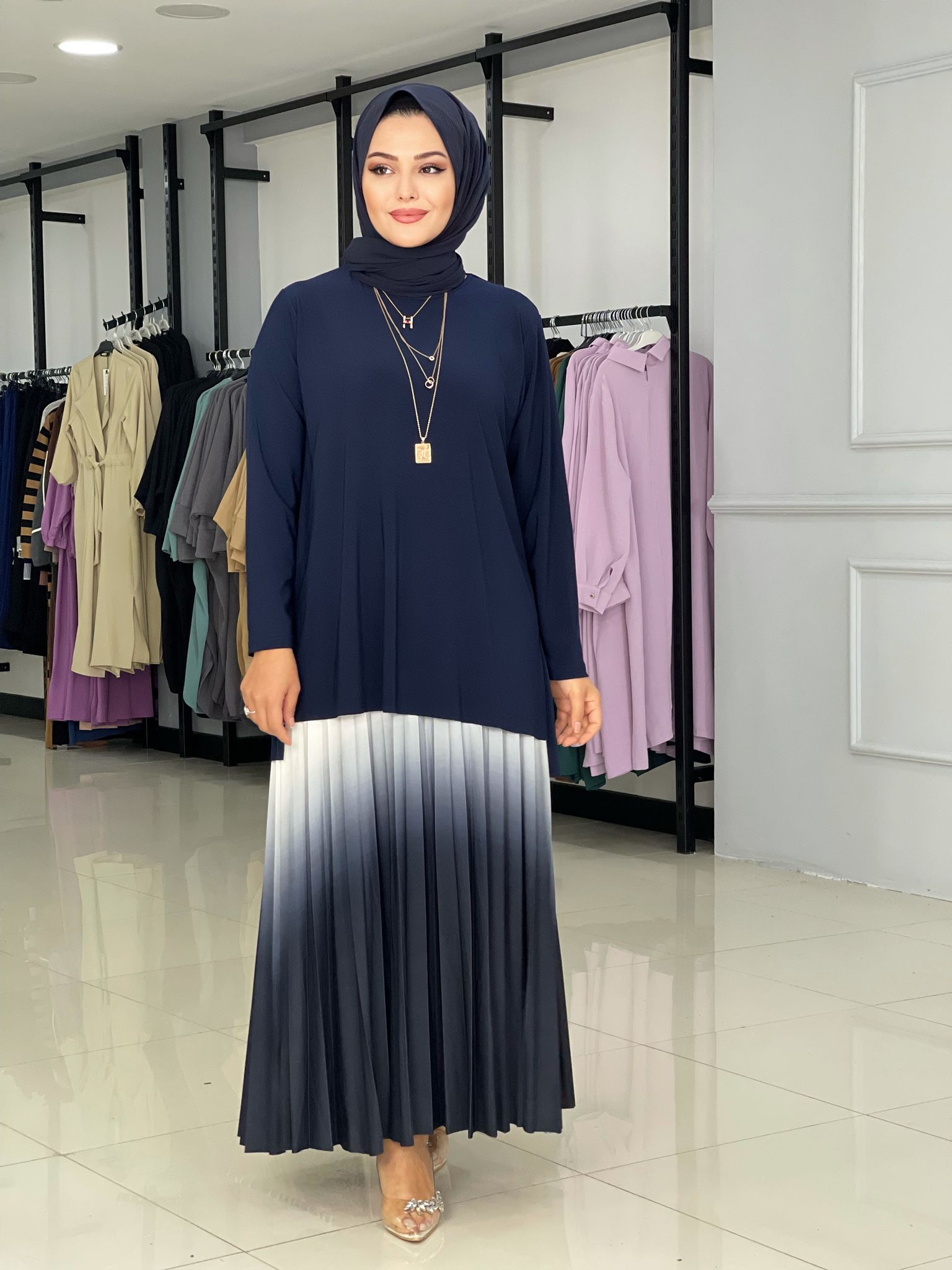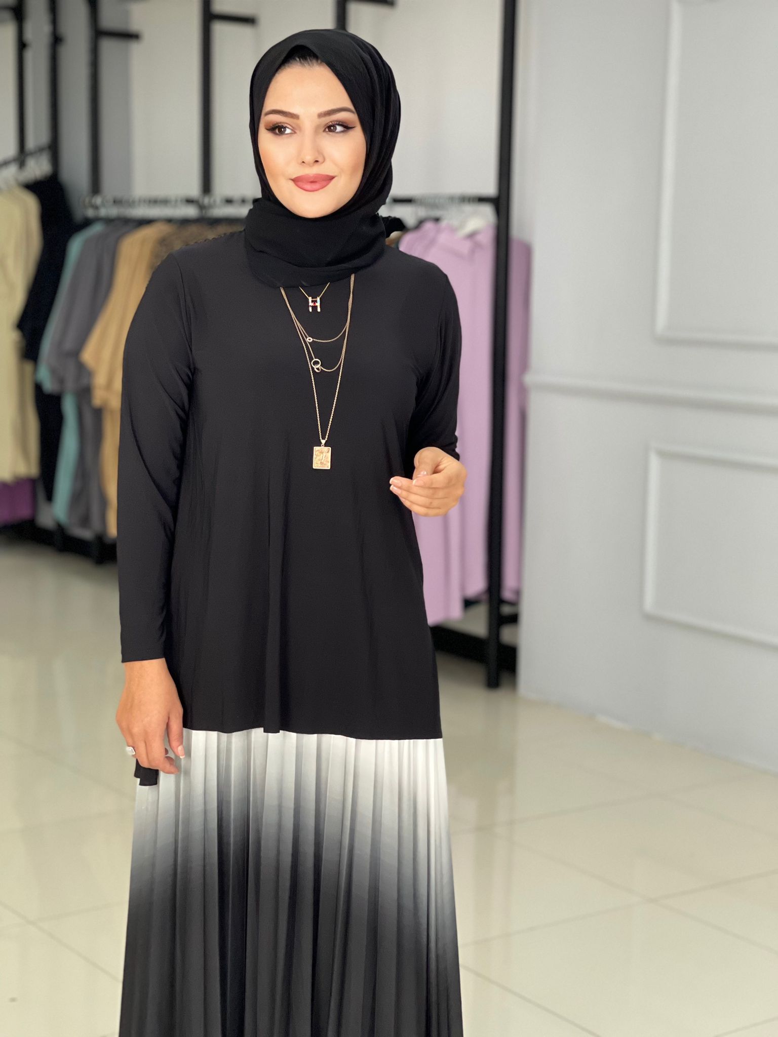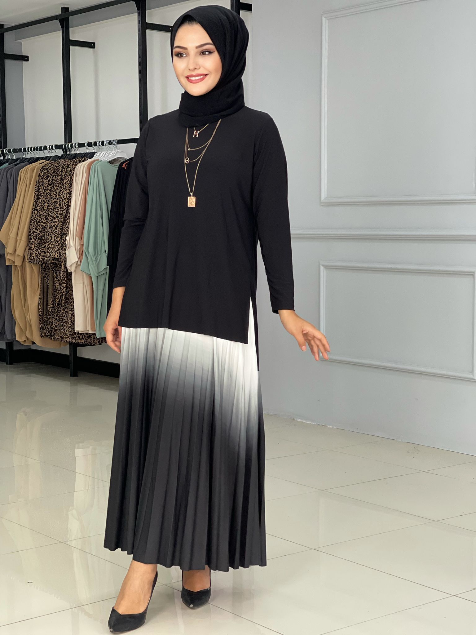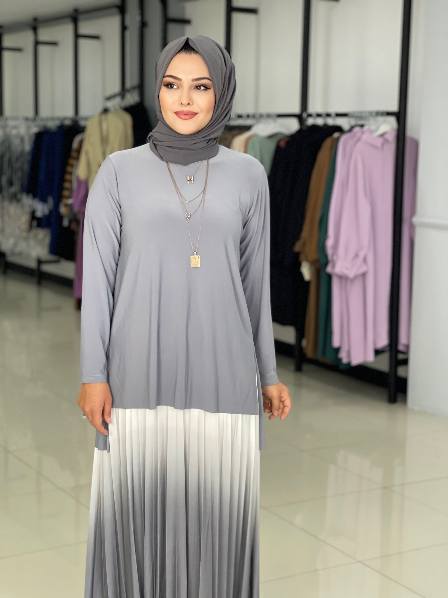 Sandy kumaş Ahenk piliseli etekli takımımız birbirinden güzel renkleriyle stokta