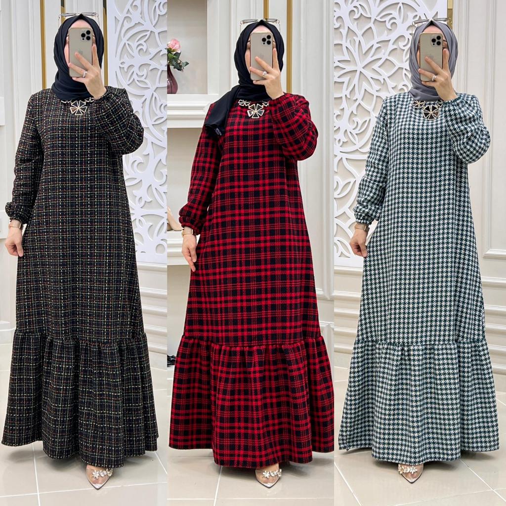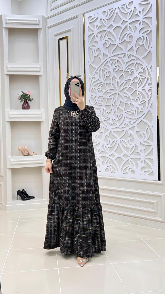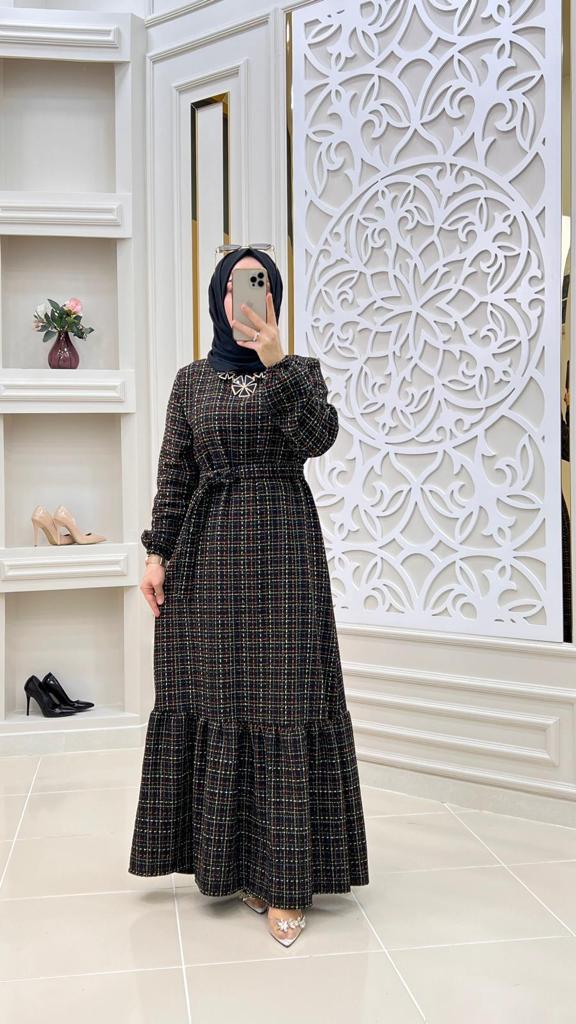 Şanel kumaş kışlık elbise - Saklı tesettür kadın giyim elbise etek tunik takım