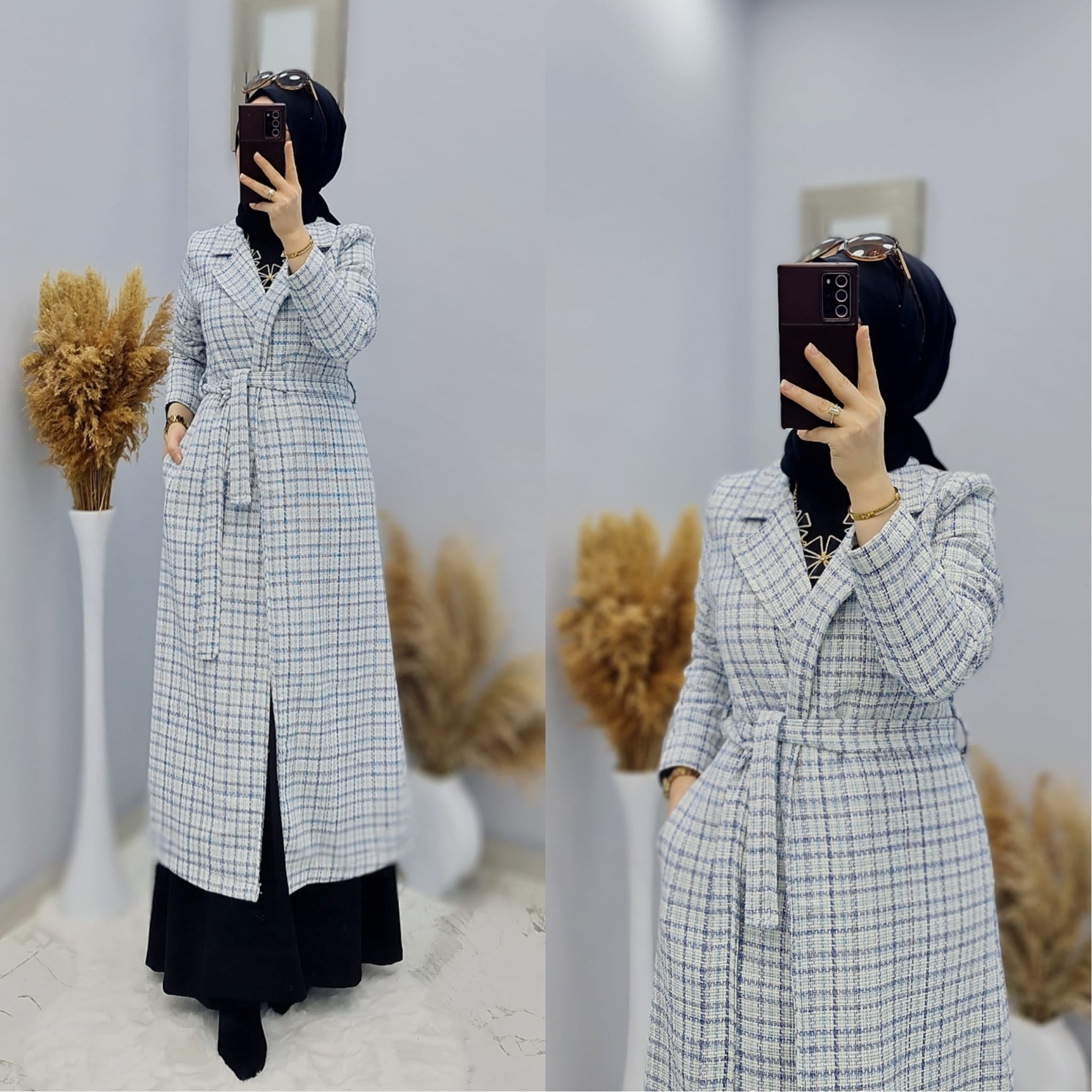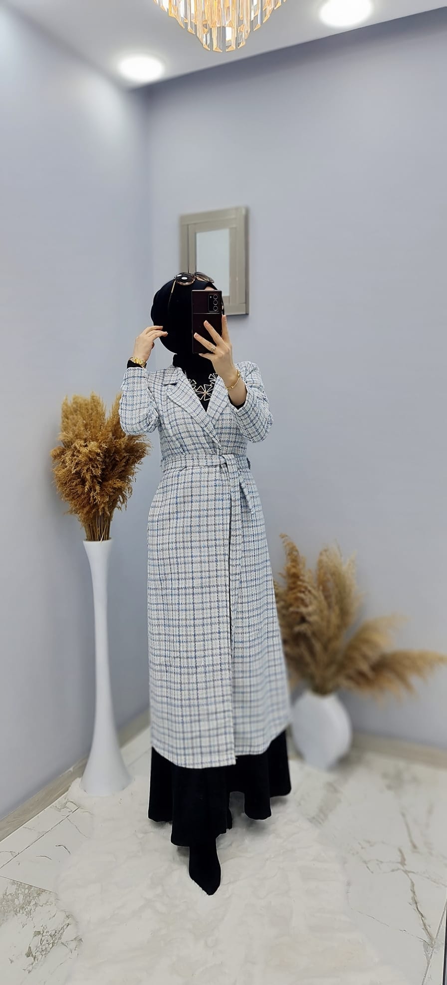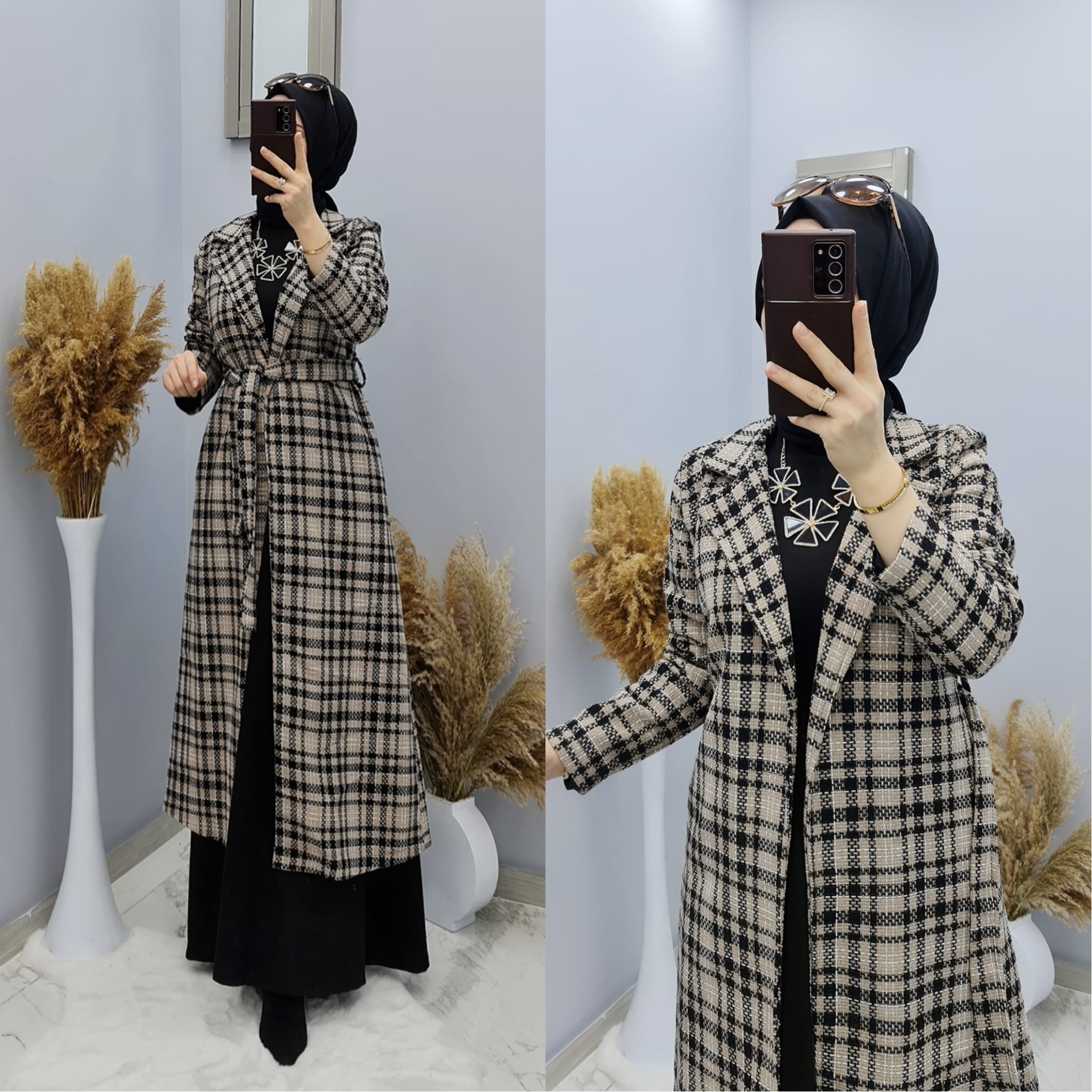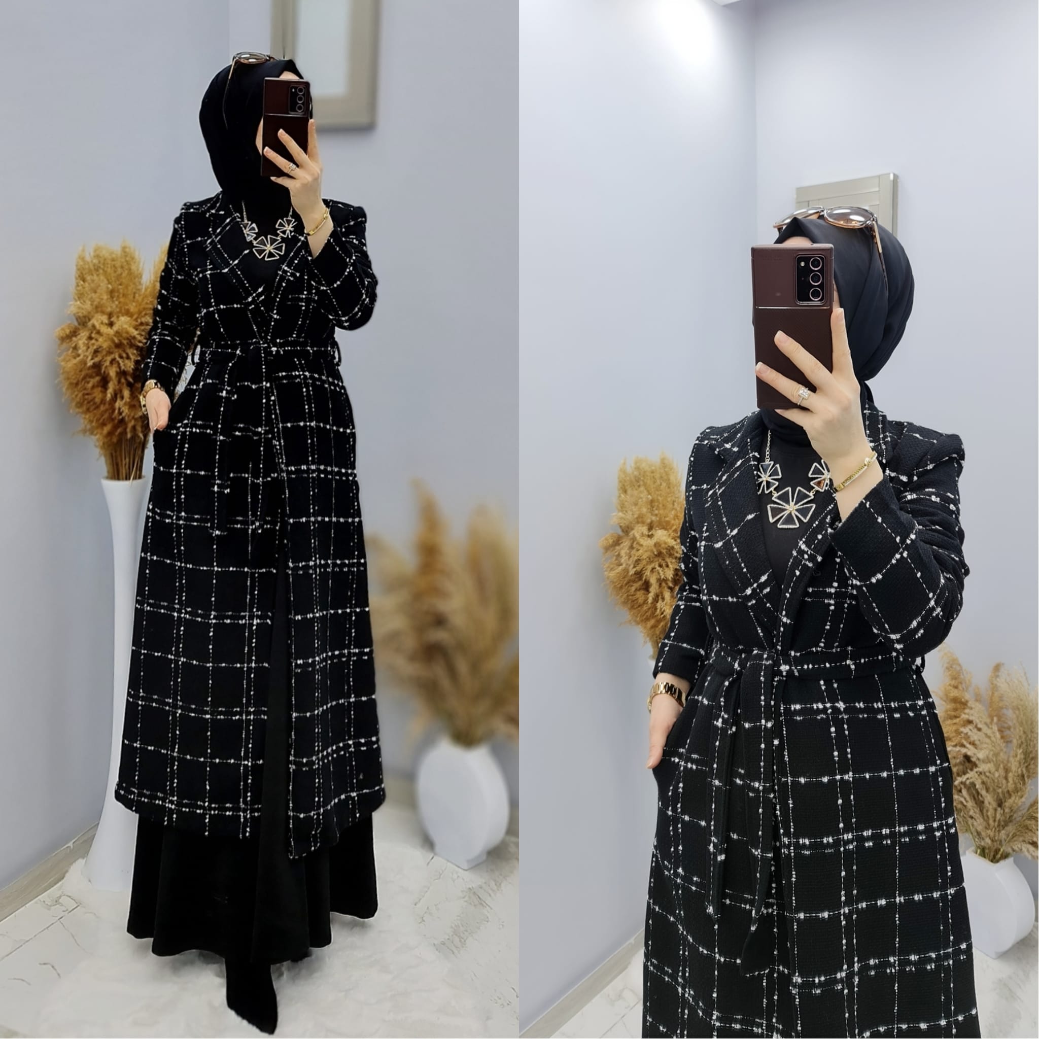 Şanel kumaş kuşaklı kap - Saklı tesettür kadın giyim elbise etek tunik takım
