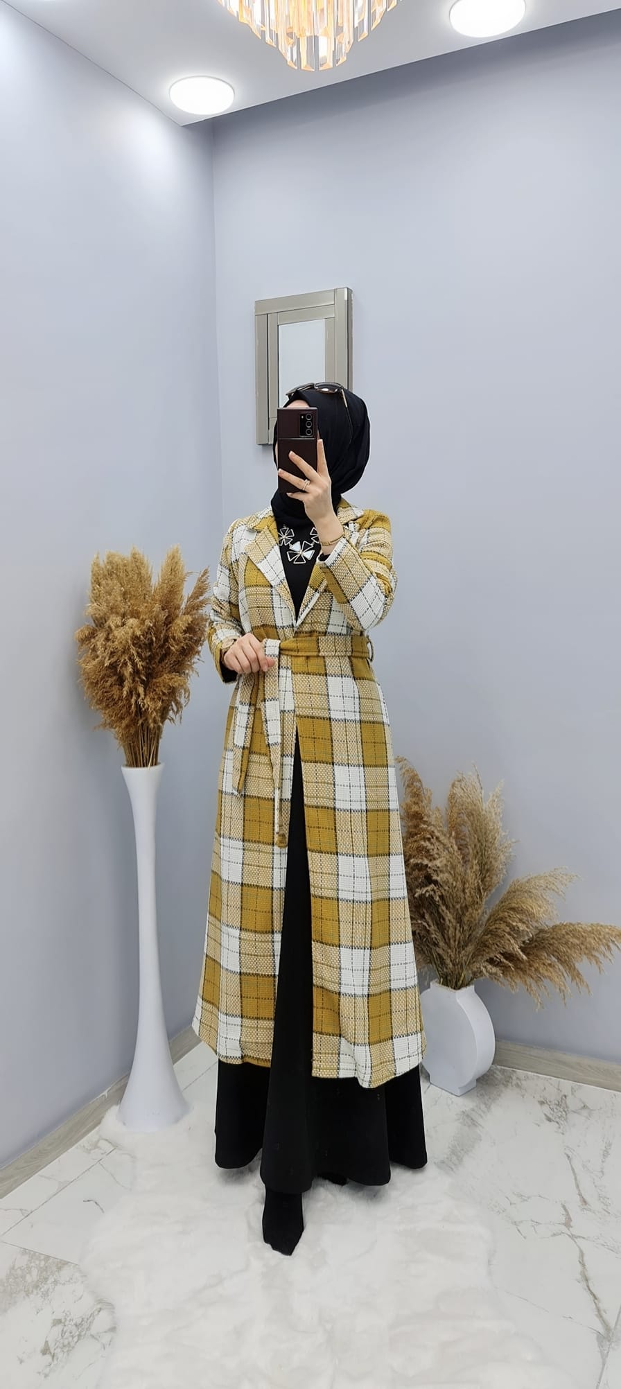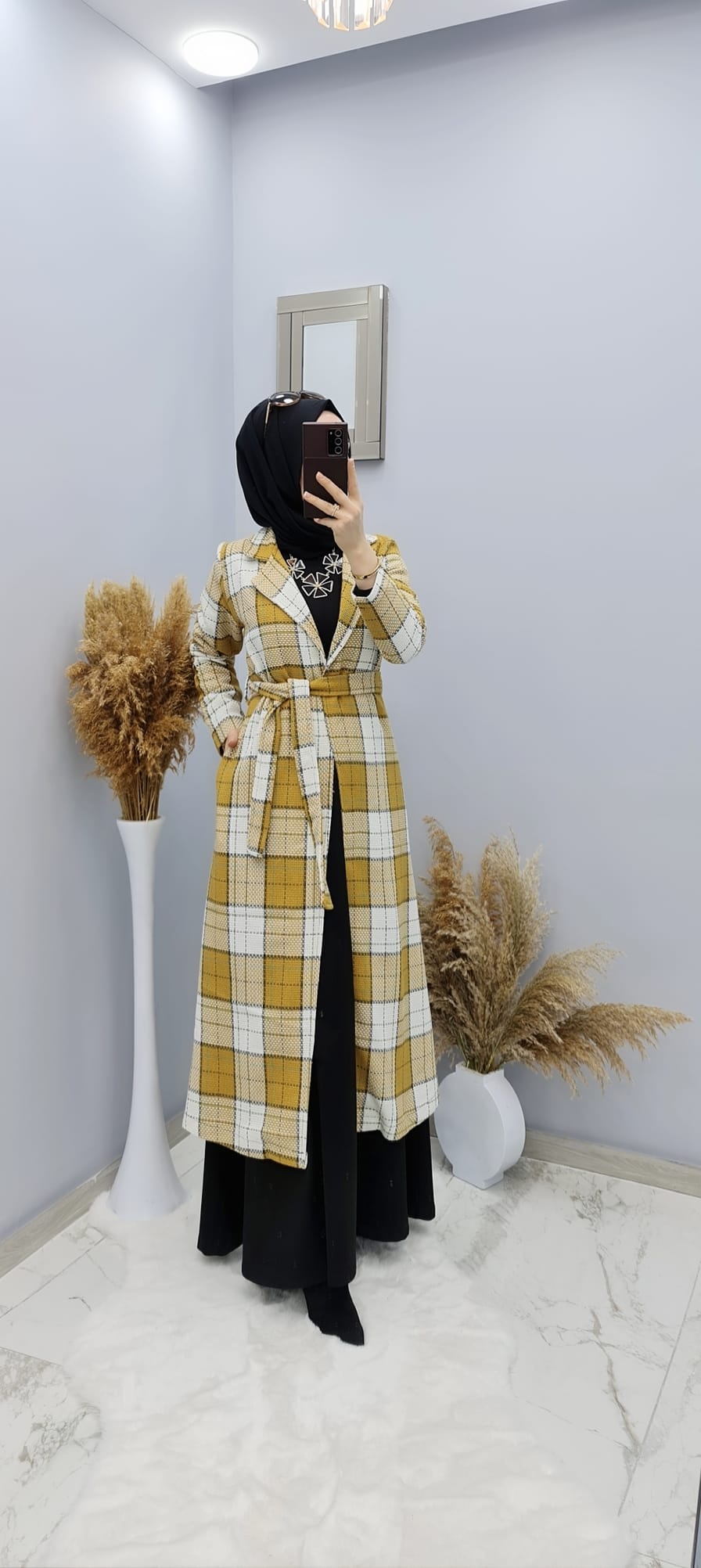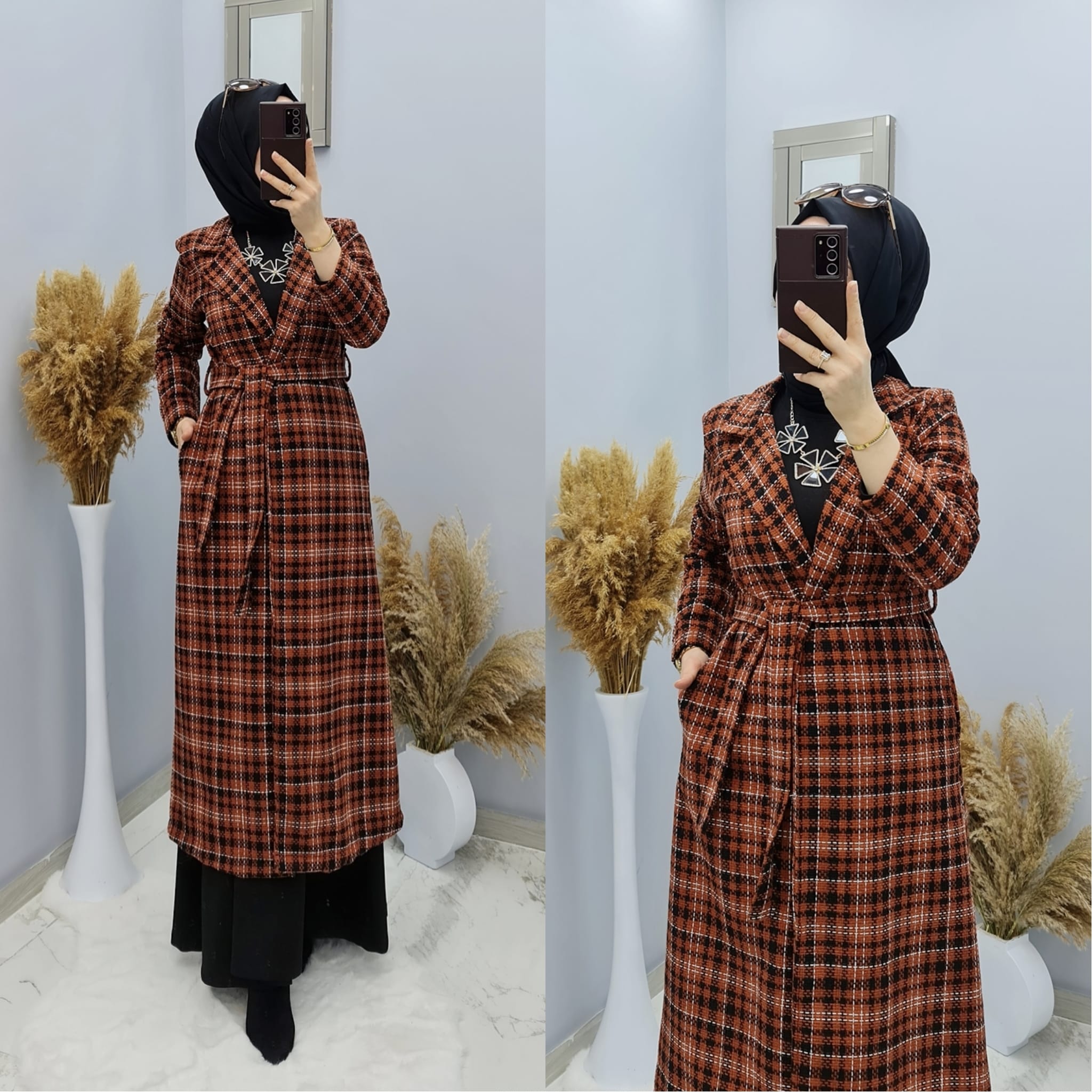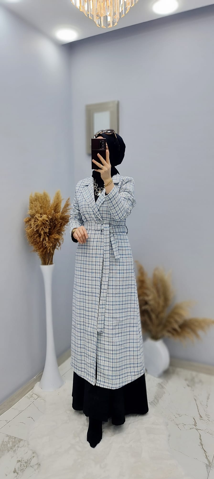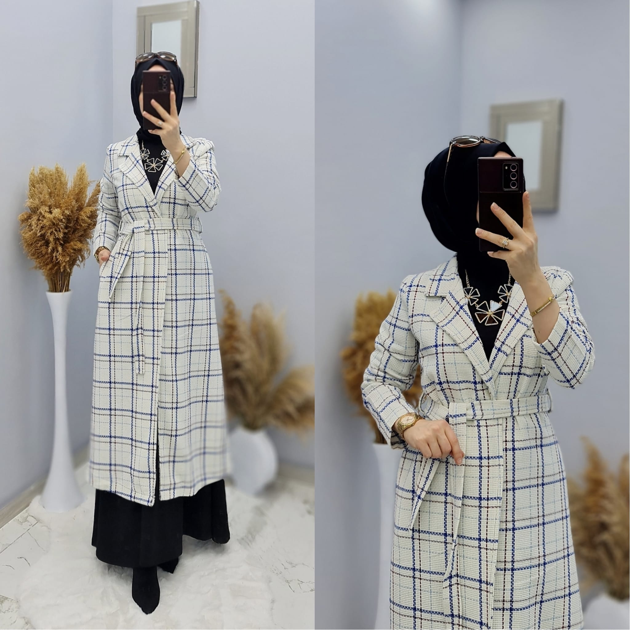 Şanel kumaş kuşaklı kap - Saklı tesettür kadın giyim elbise etek tunik takım