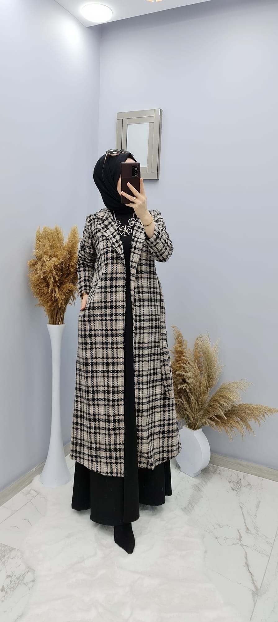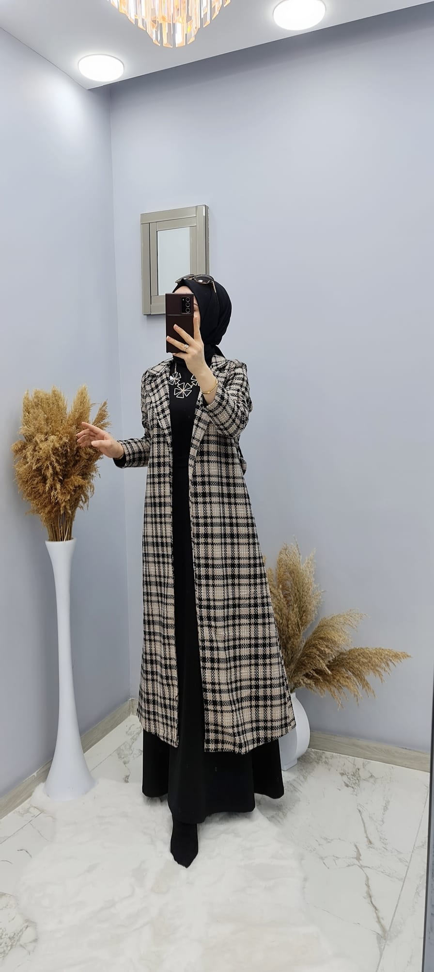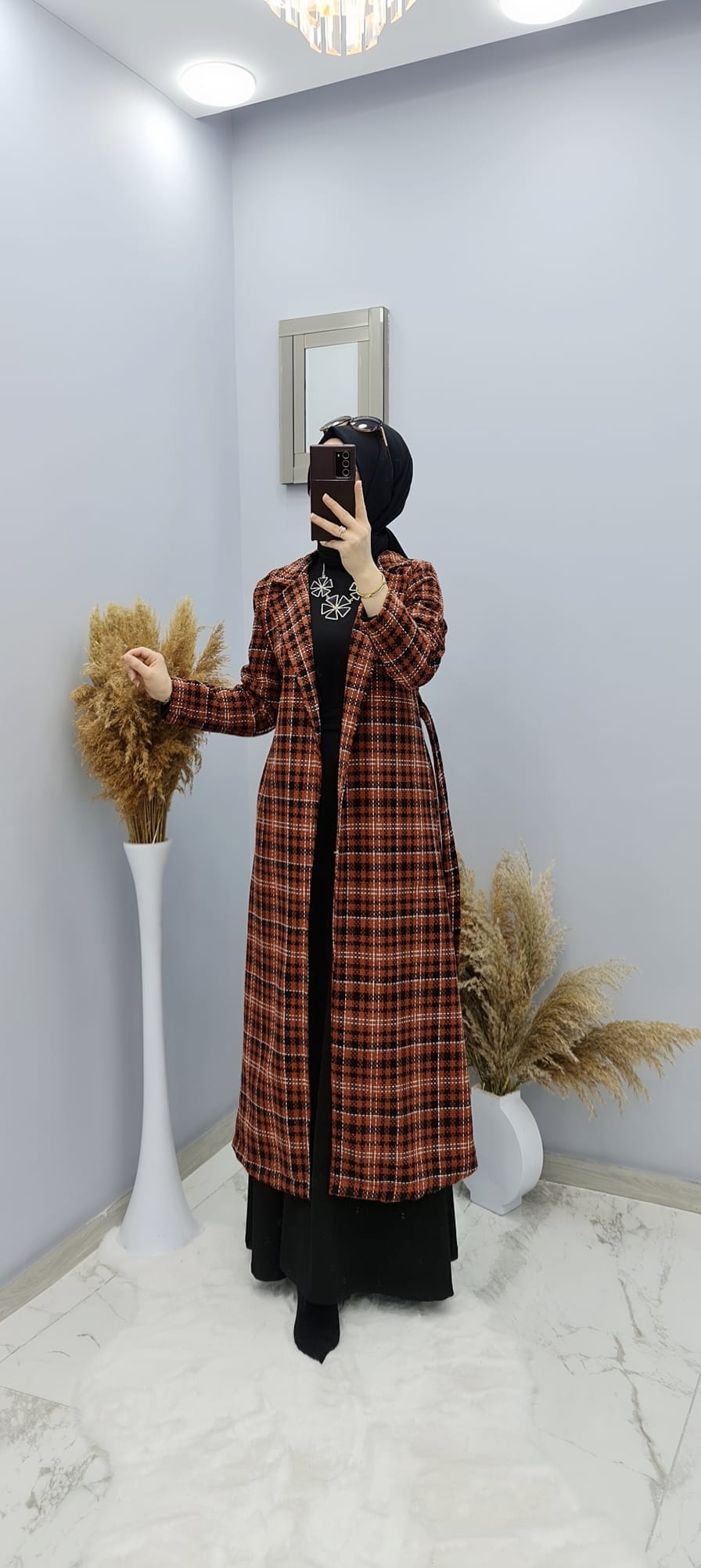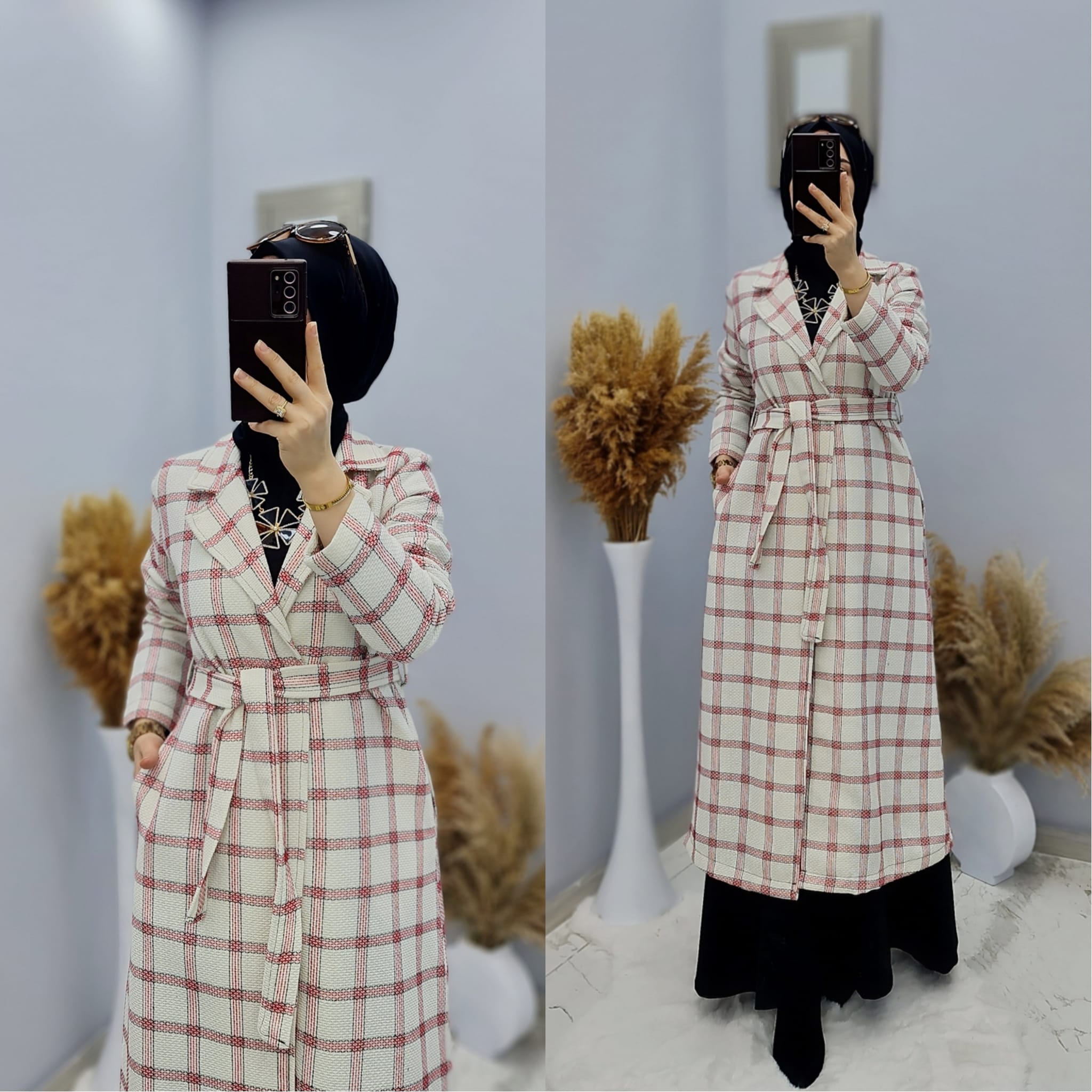 Şanel kumaş kuşaklı kap - Saklı tesettür kadın giyim elbise etek tunik takım