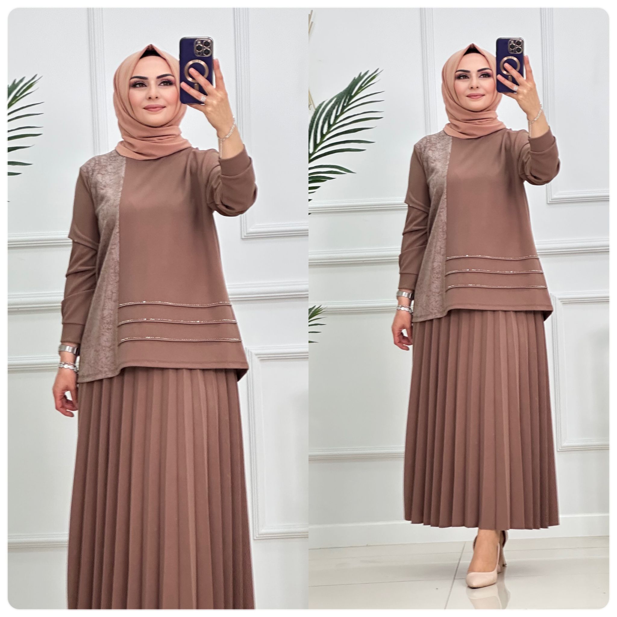 Saklı tesettür kadın giyim elbise etek tunik takım