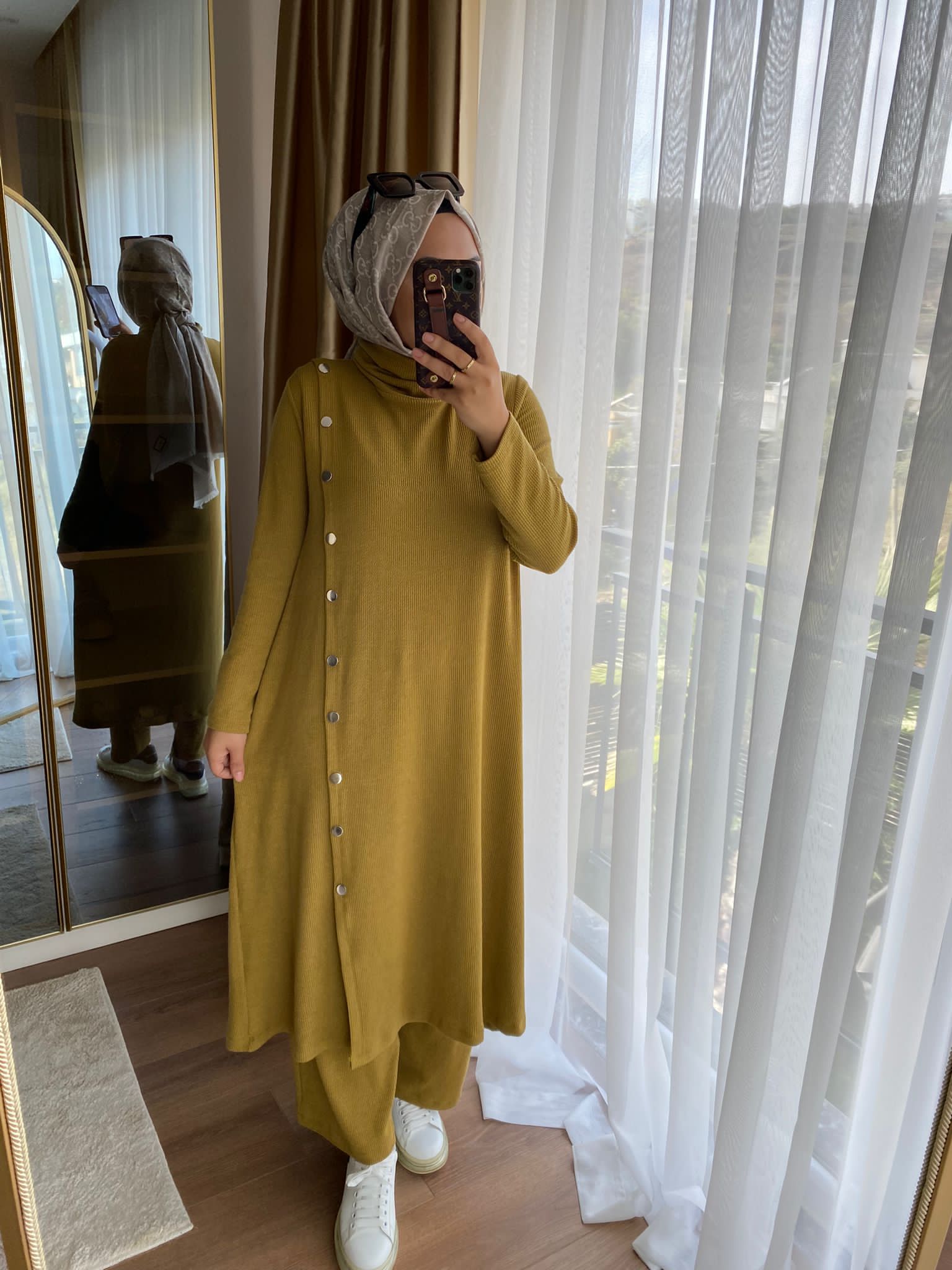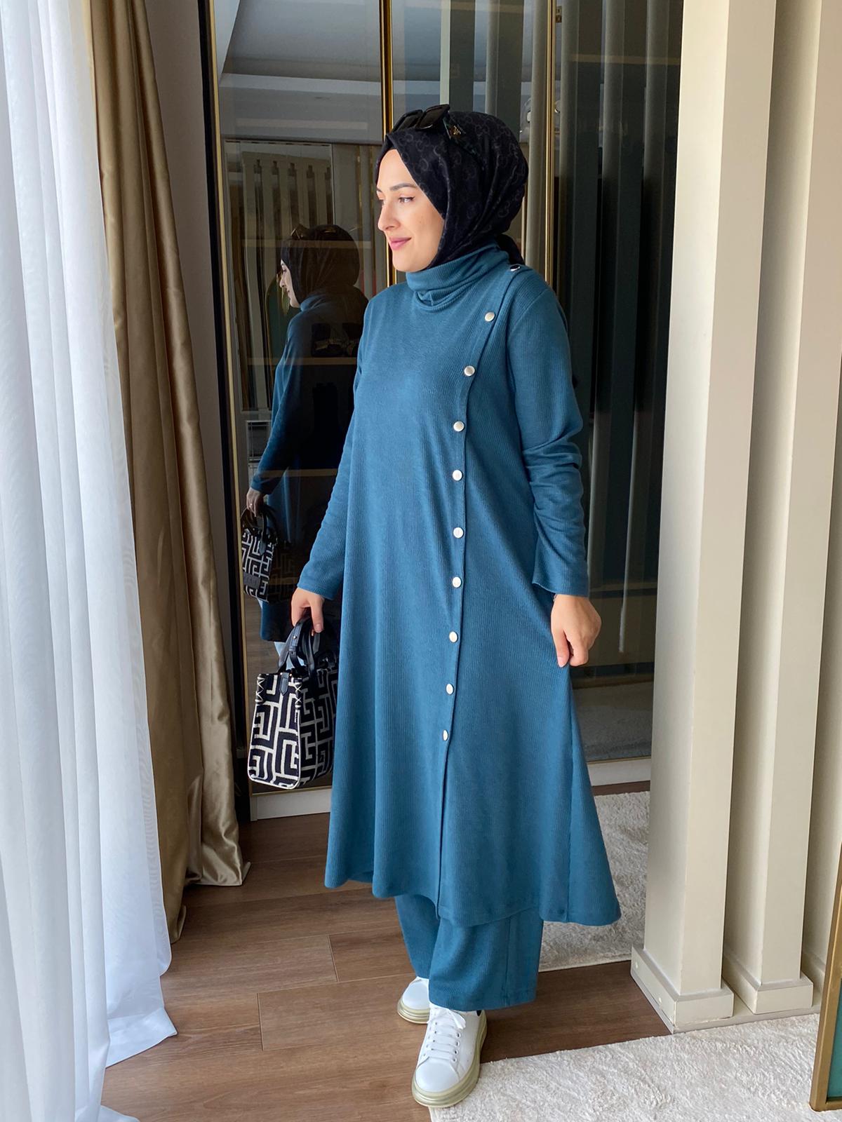 Seremoni takım fitilli kumaş - Saklı tesettür kadın giyim elbise etek tunik takım