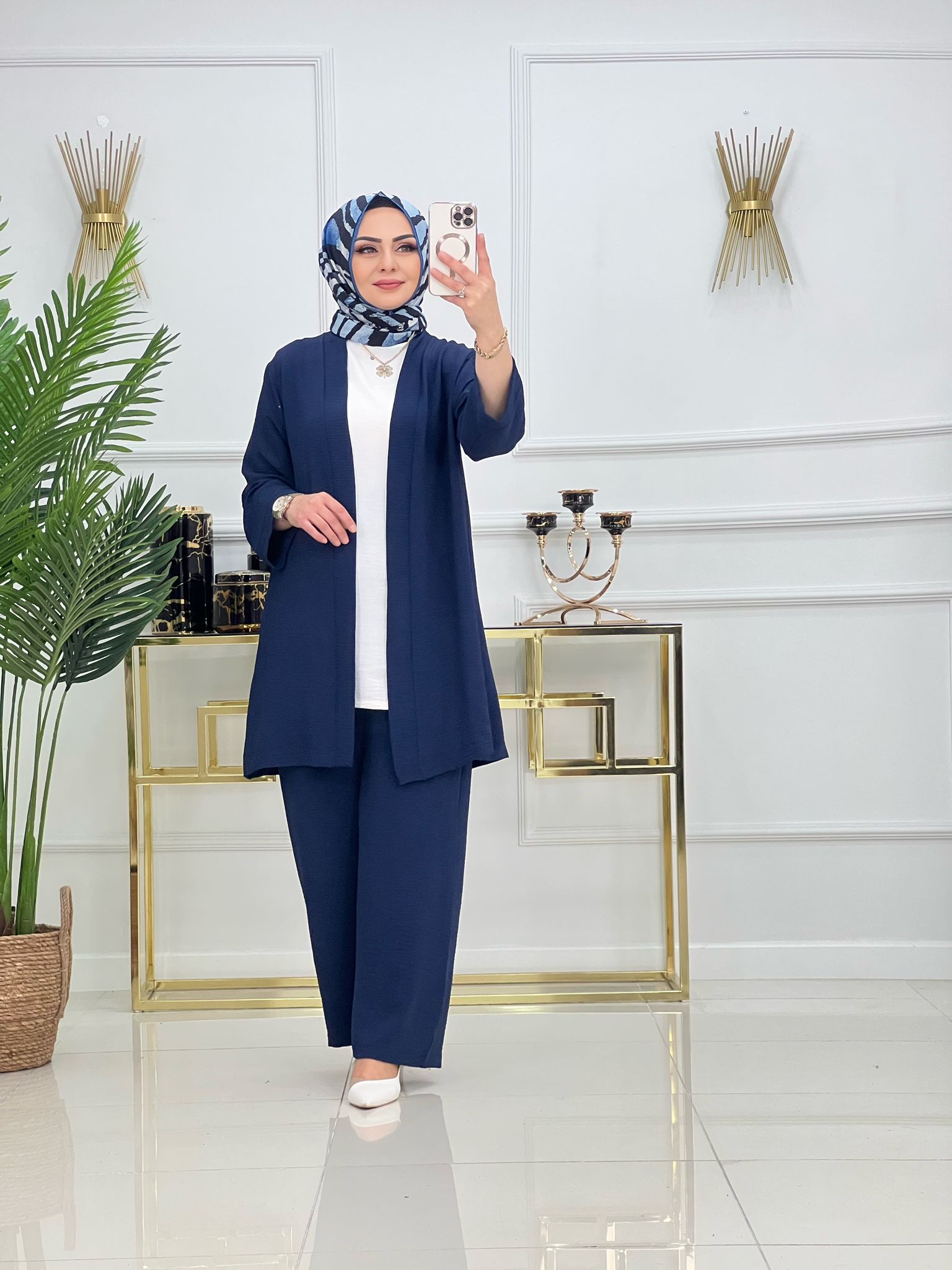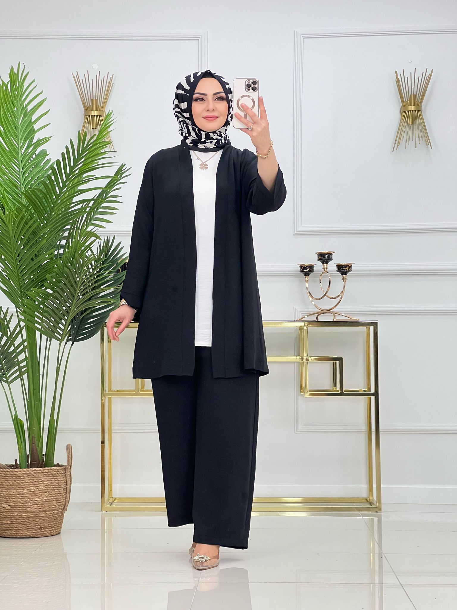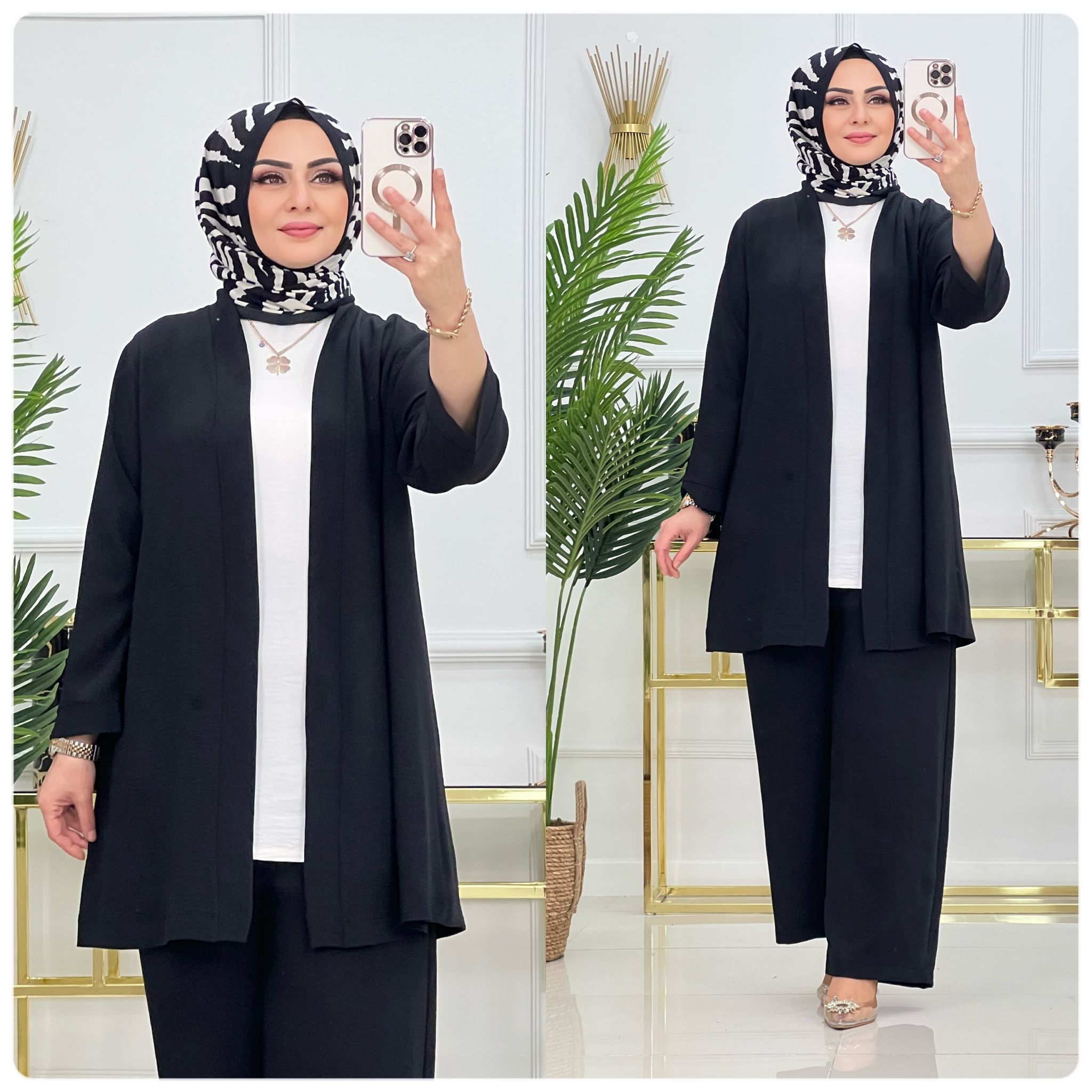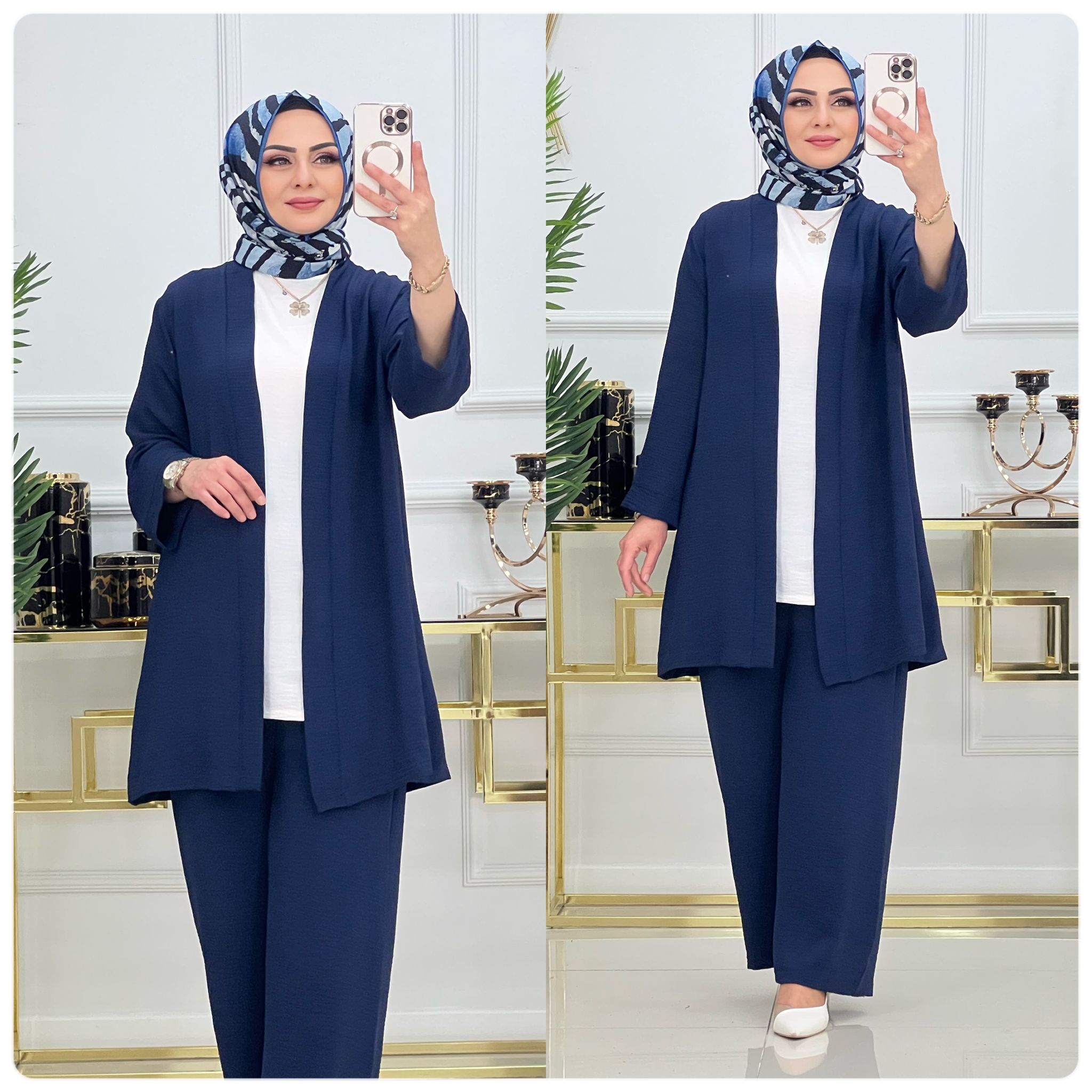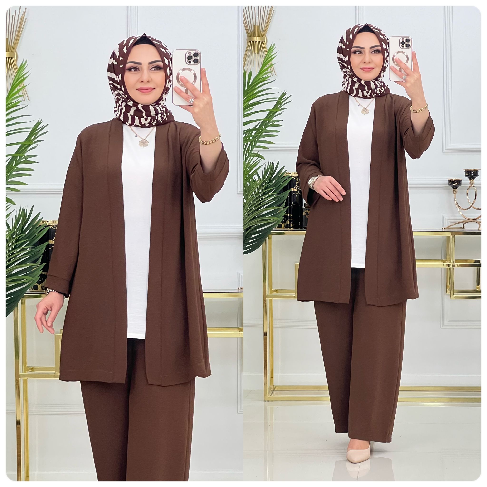 Şeyma üçlü takım ayrobin kumaş - Saklı tesettür kadın giyim elbise etek tunik takım