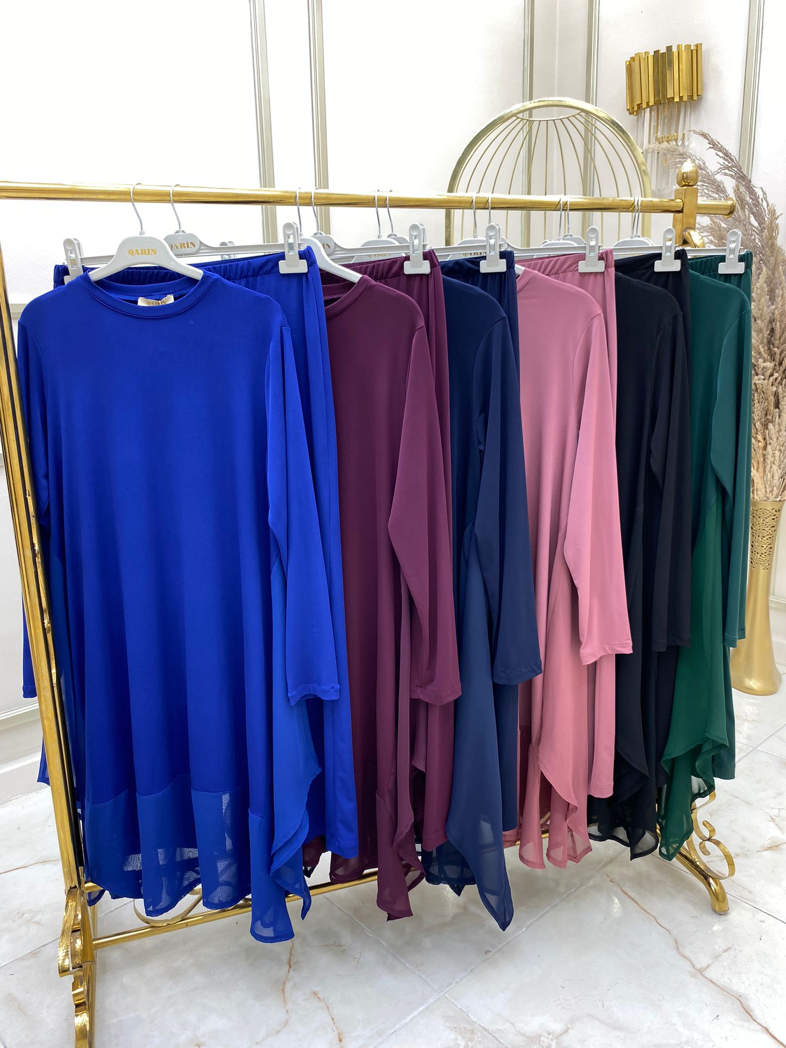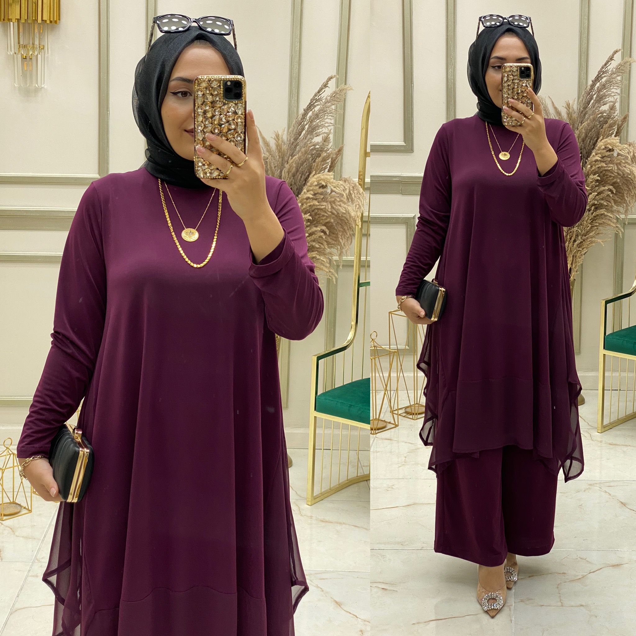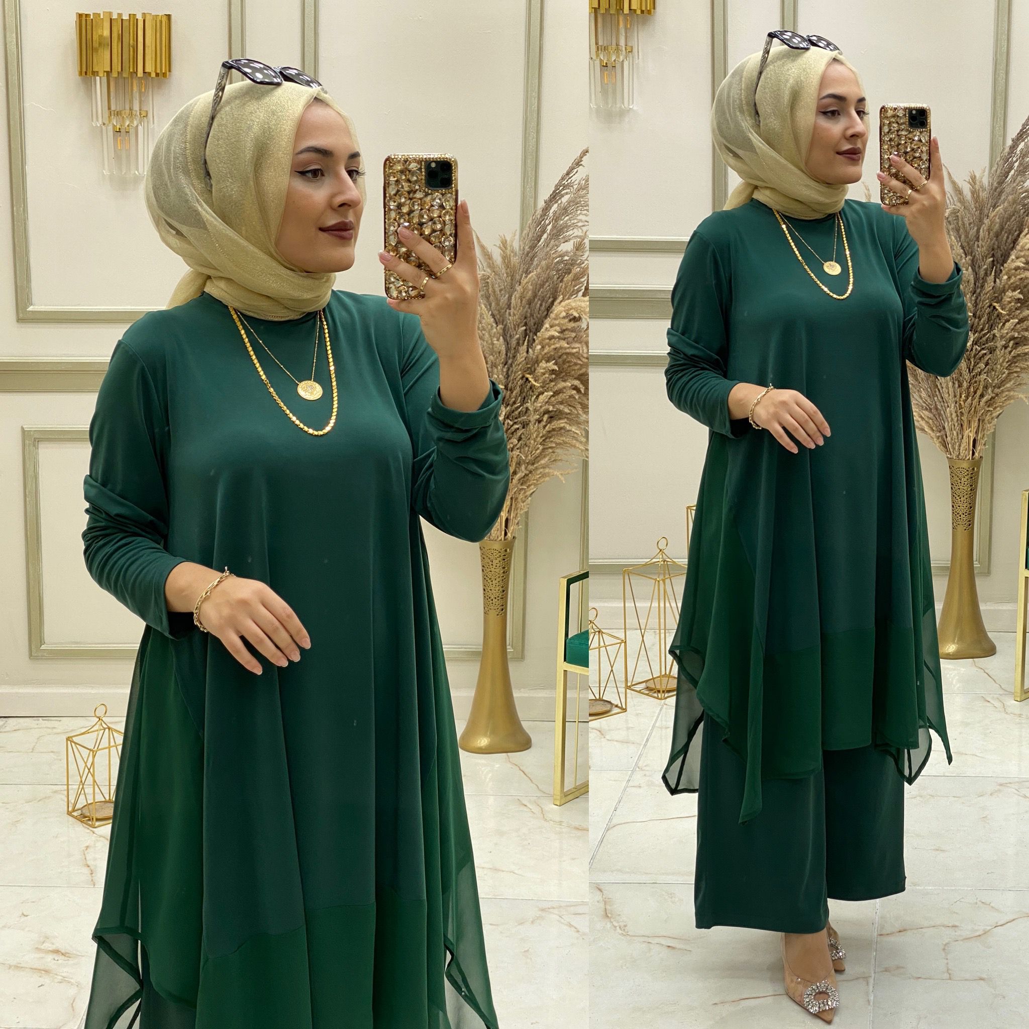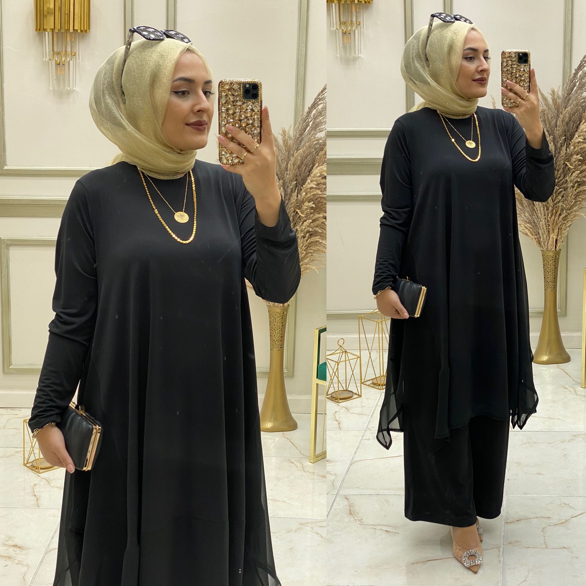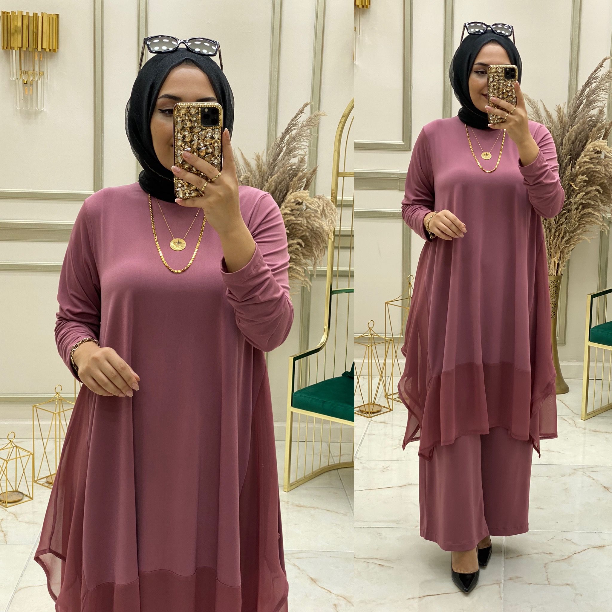 Şifon detaylı elçin tunik takım - Saklı tesettür kadın giyim elbise etek tunik takım