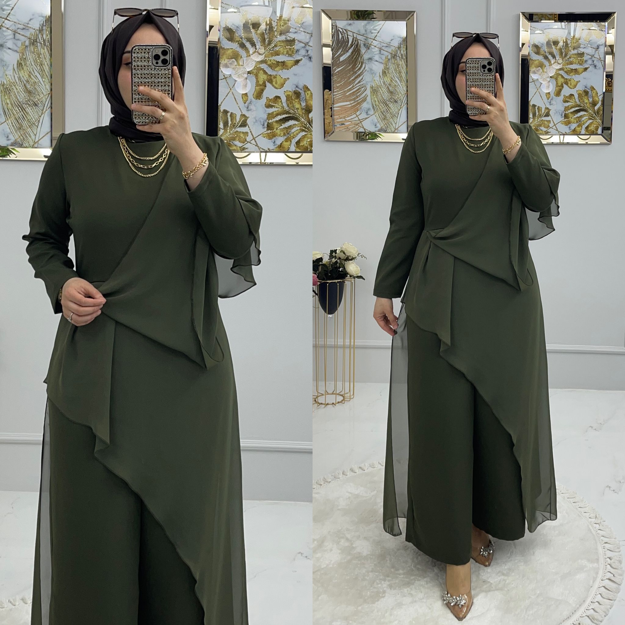 Saklı tesettür kadın giyim elbise etek tunik takım