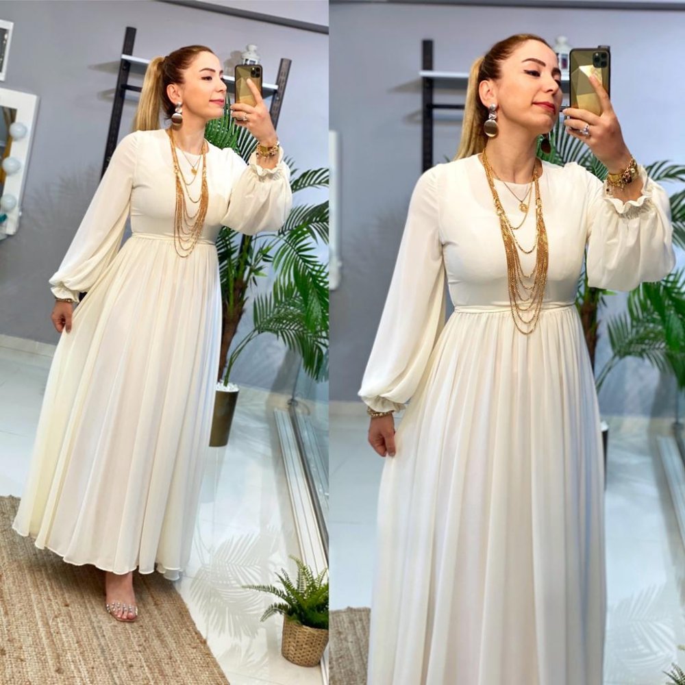 Şifon kumaş elbise - Saklı tesettür kadın giyim elbise etek tunik takım
