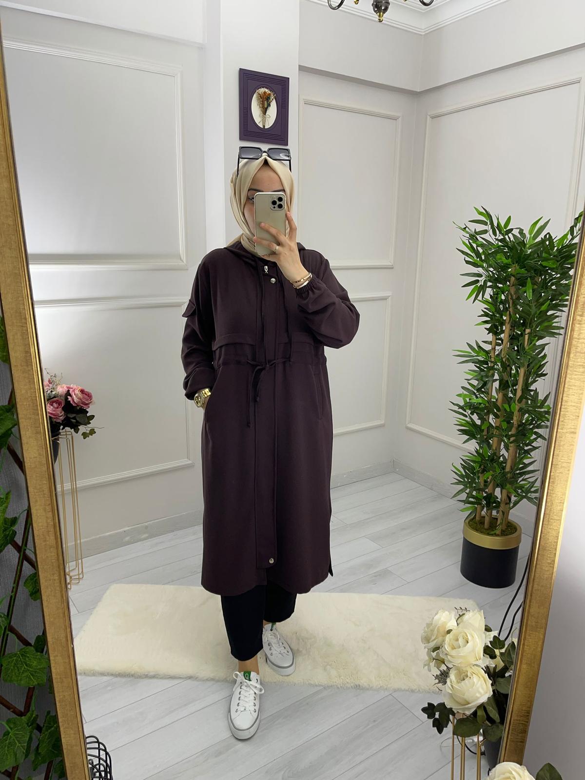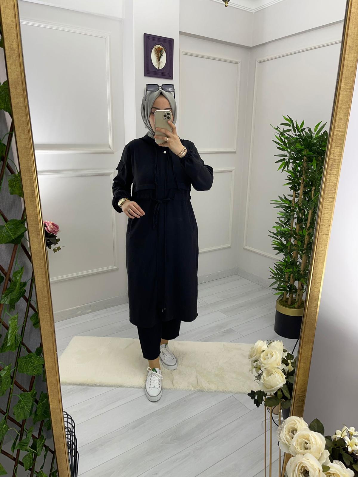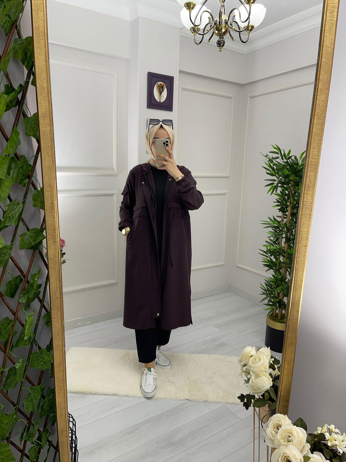 Spor fermuarlı büyük beden kap - Saklı tesettür kadın giyim elbise etek tunik takım