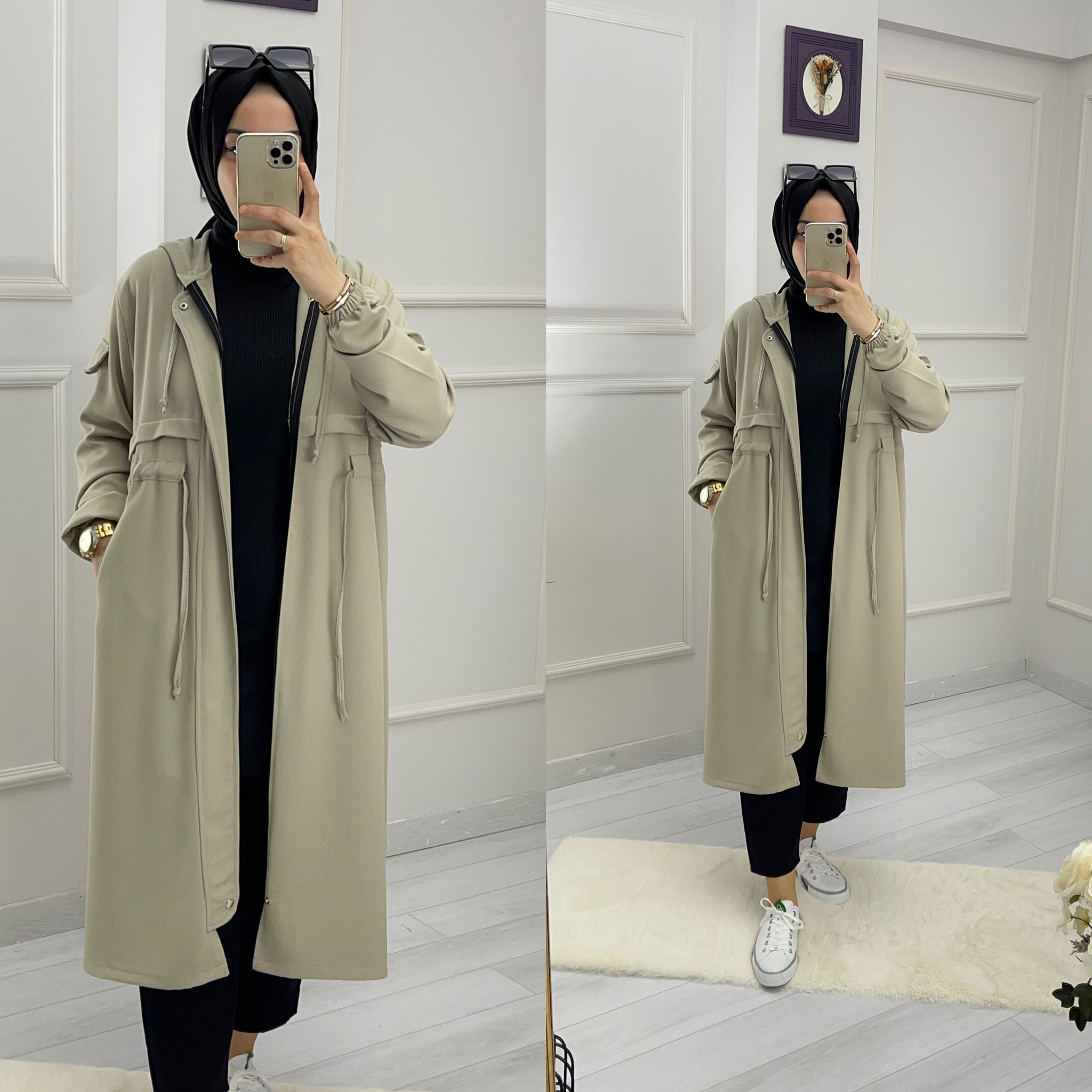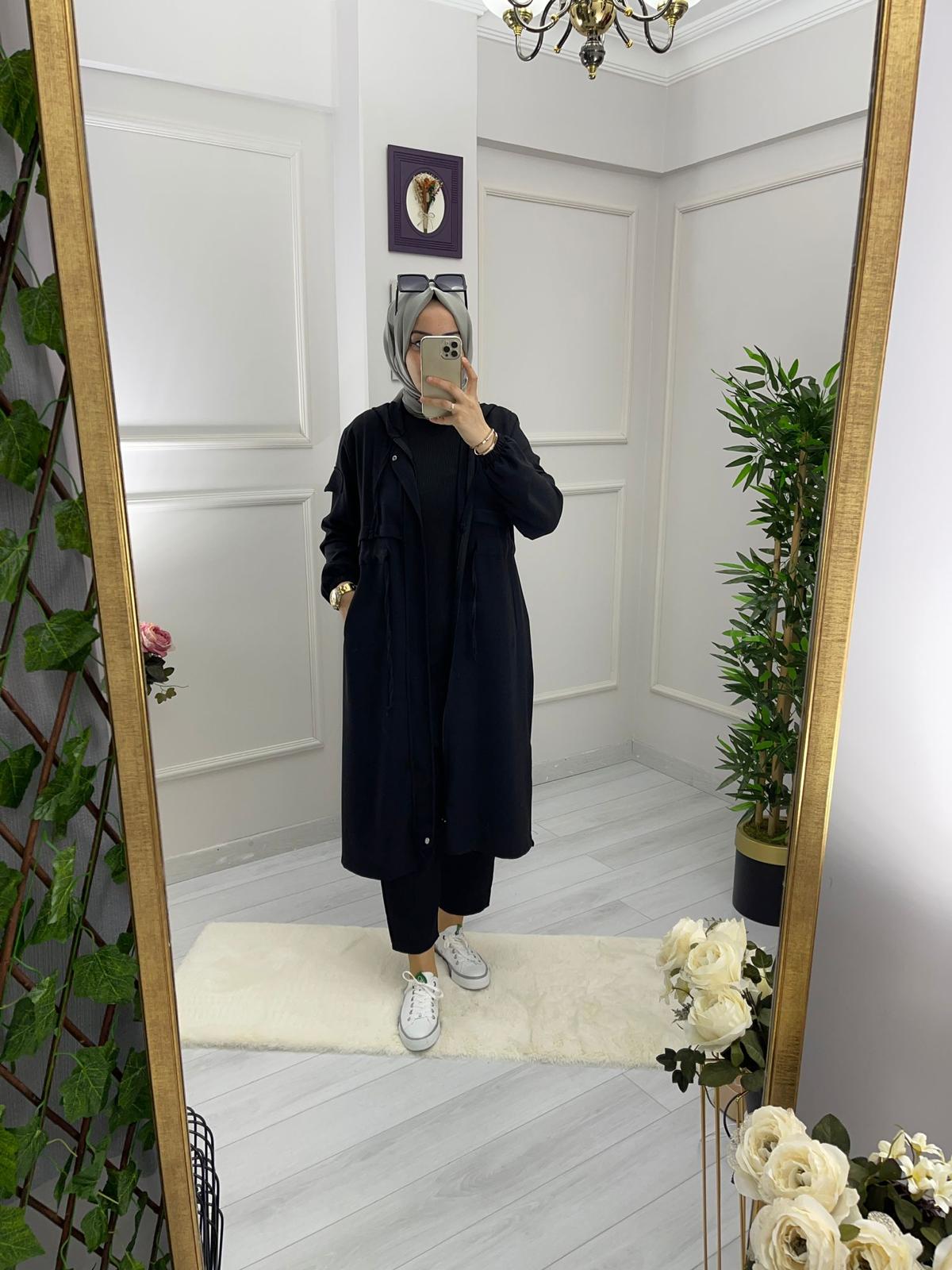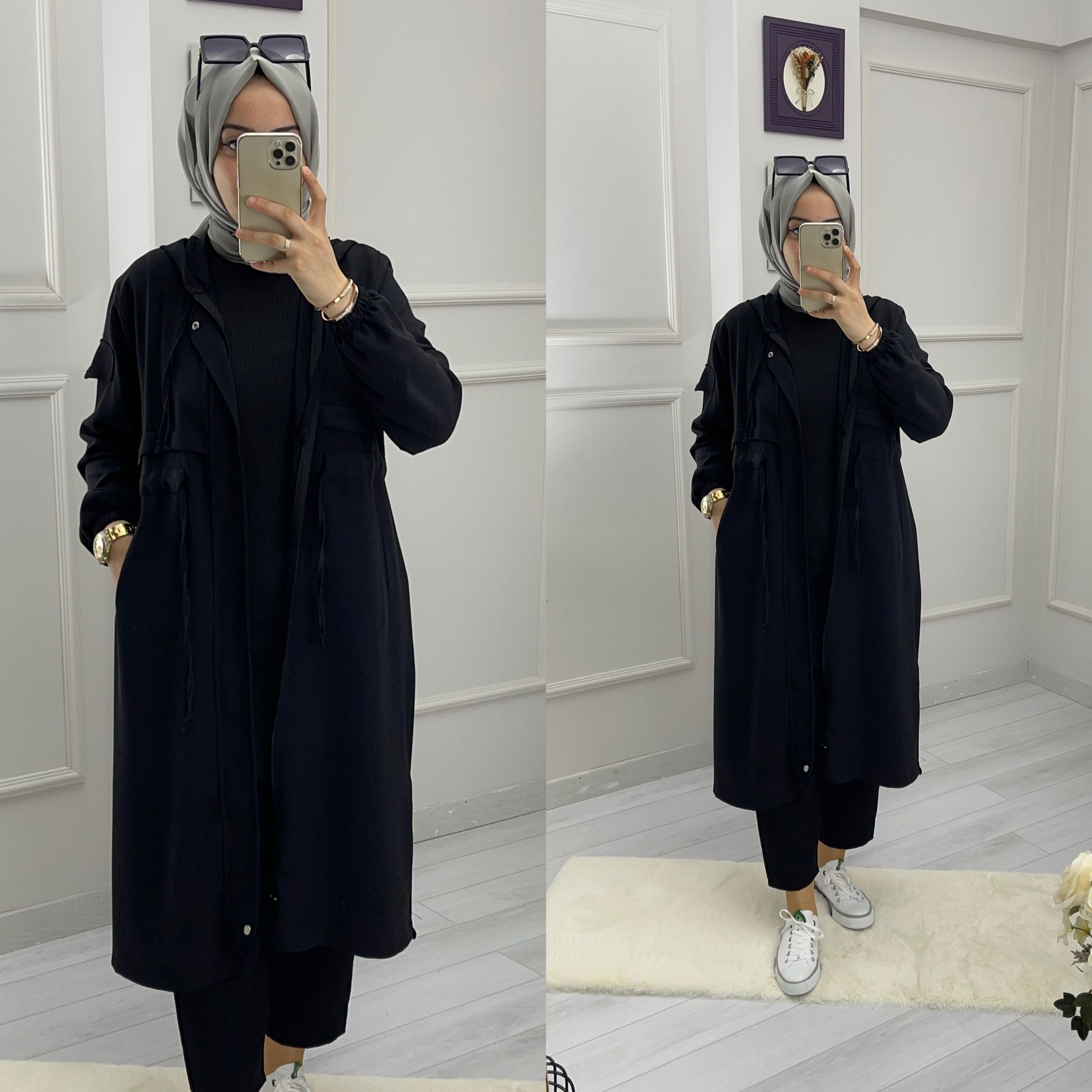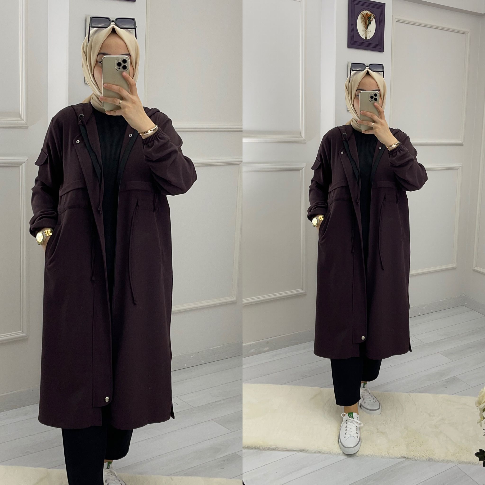Spor fermuarlı büyük beden kap - Saklı tesettür kadın giyim elbise etek tunik takım