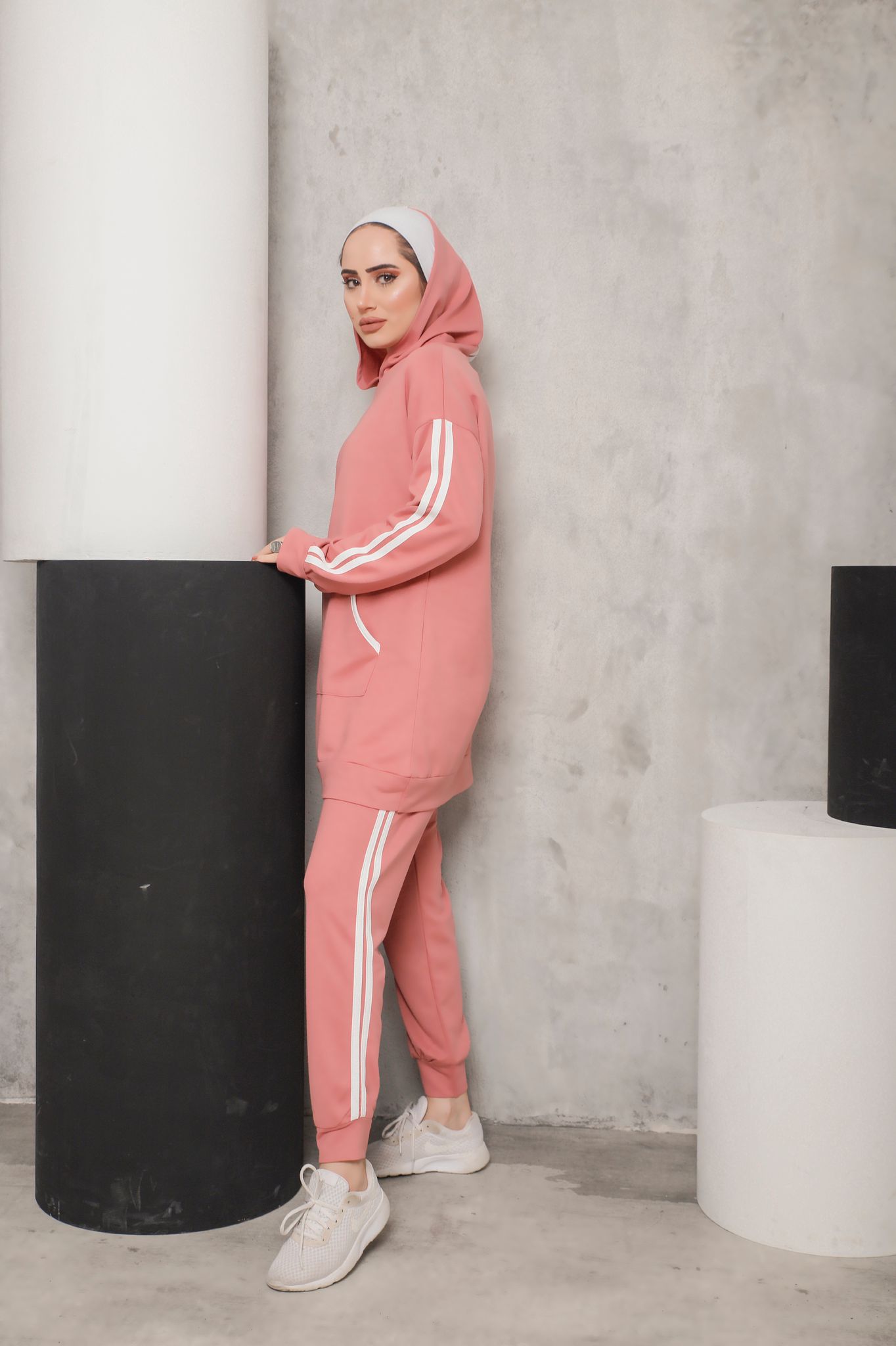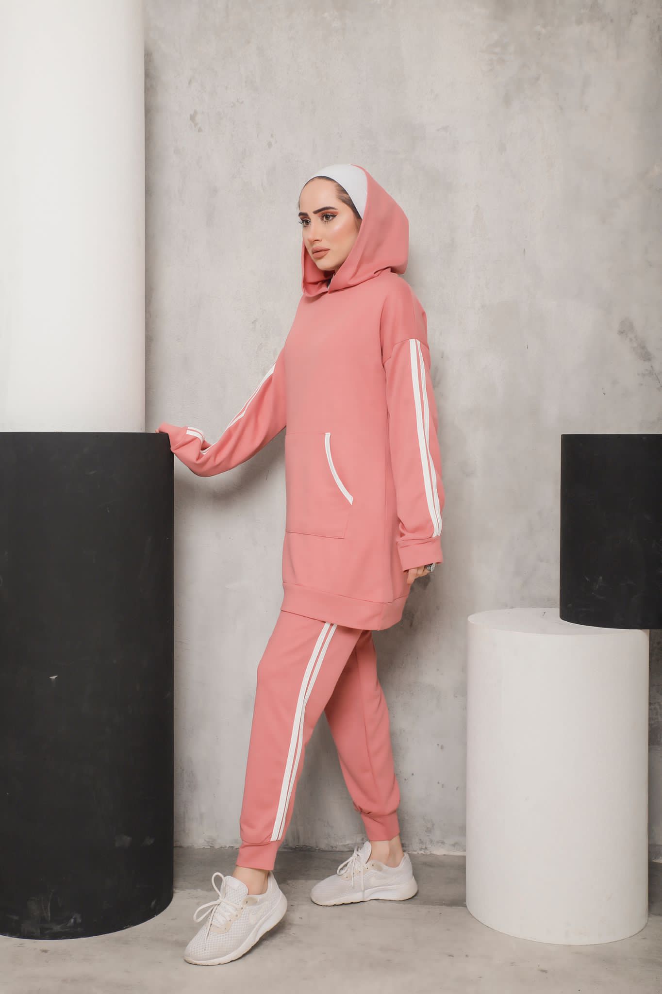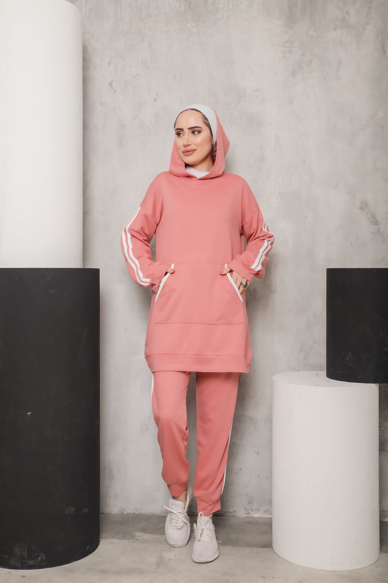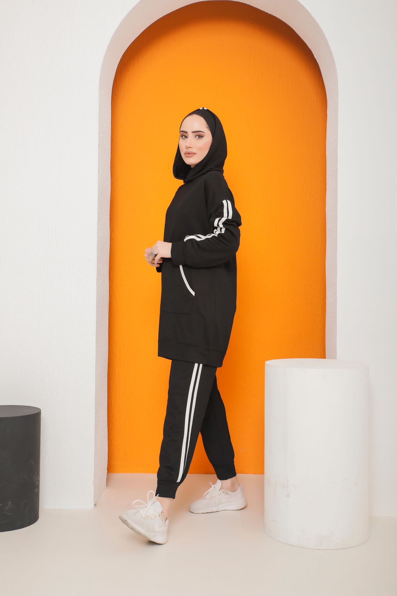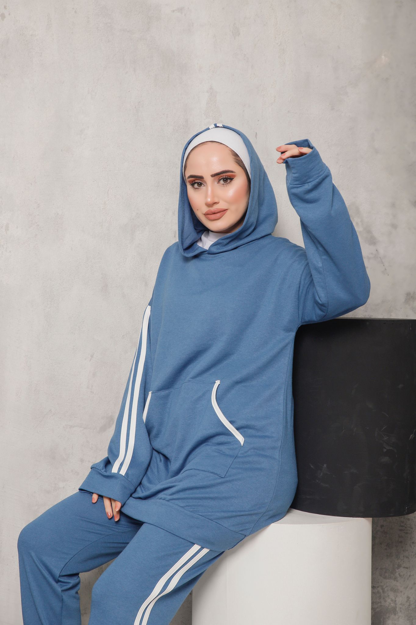 Kapşon yaka kol ucu ve tunik ucu ribana detaylı kanguru cepli