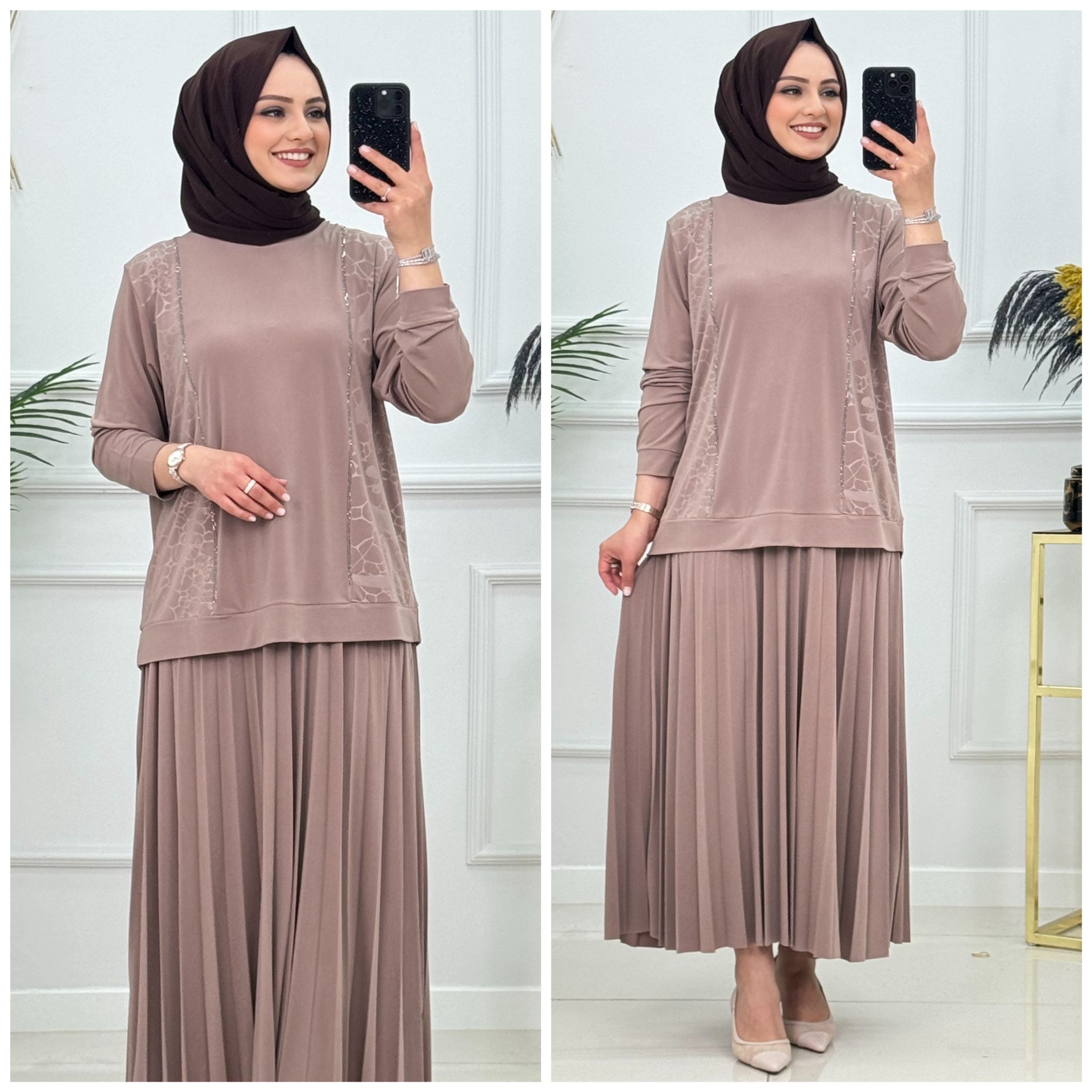 Saklı tesettür kadın giyim elbise etek tunik takım