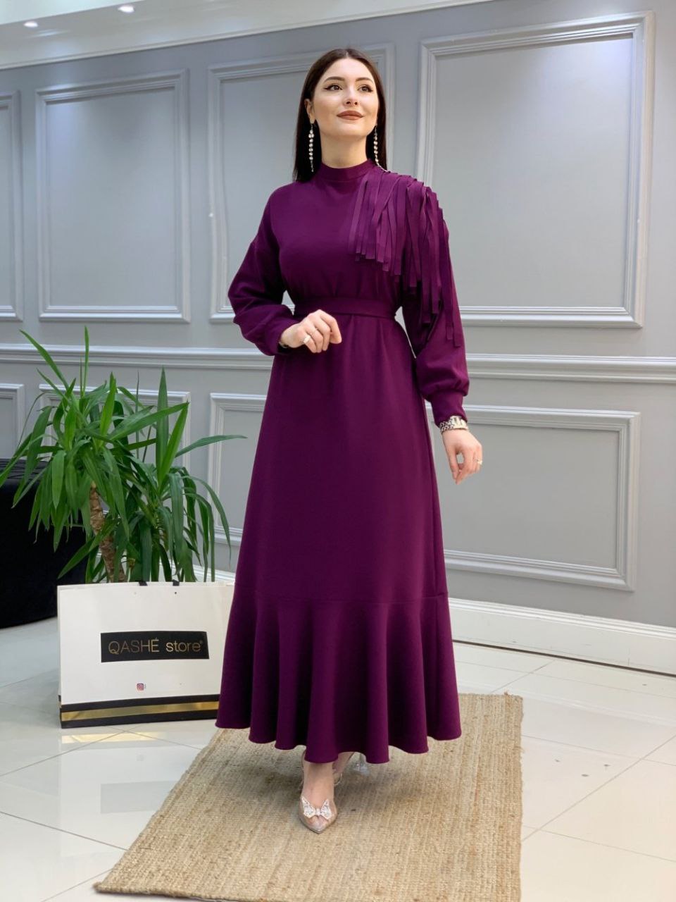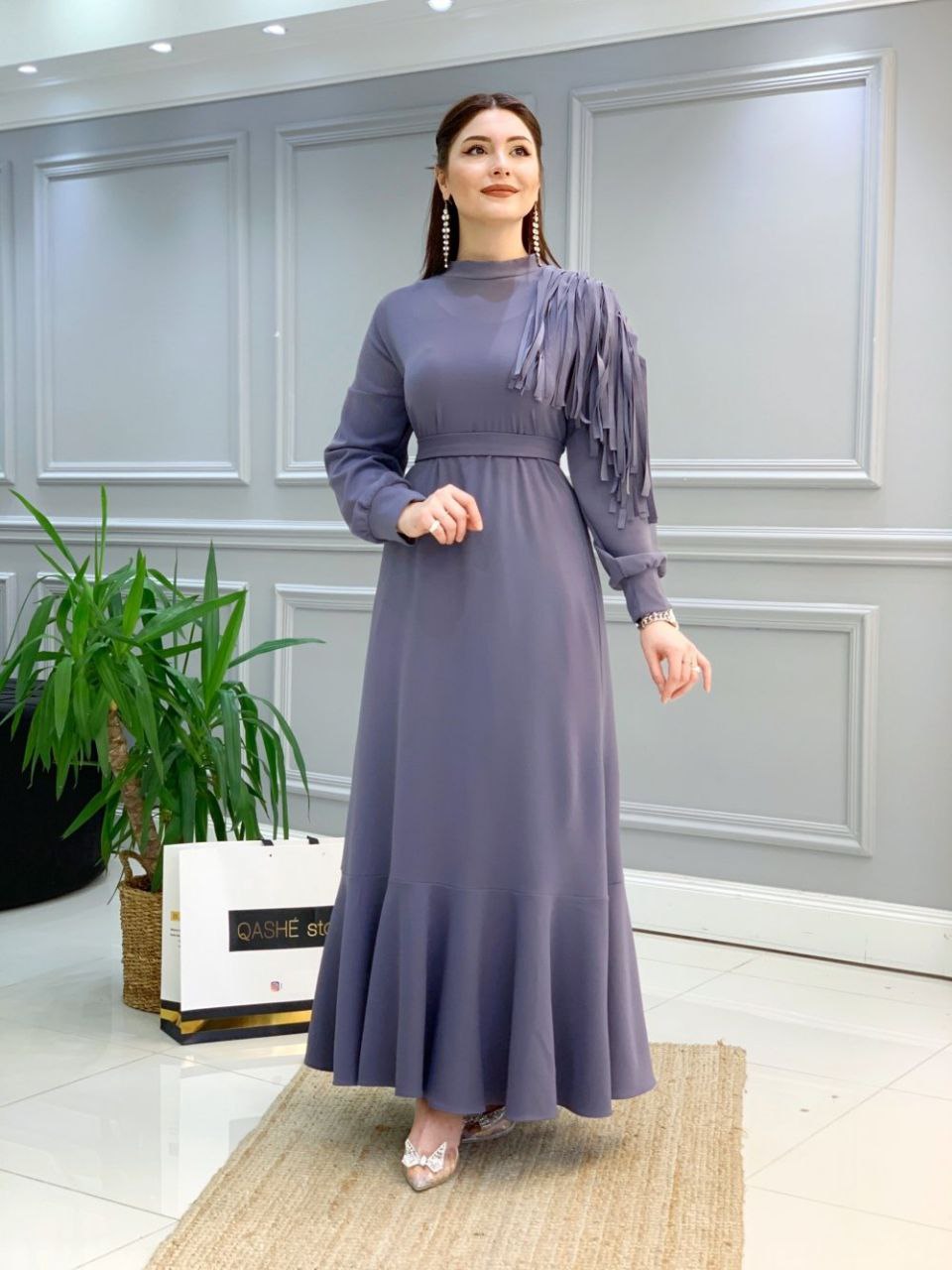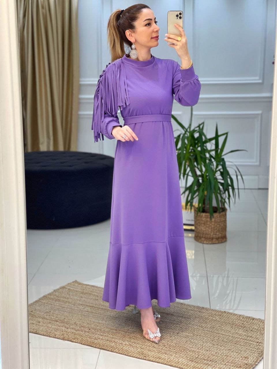 🌷Btk Saçaklı Uzun Elbise 3419 Lila