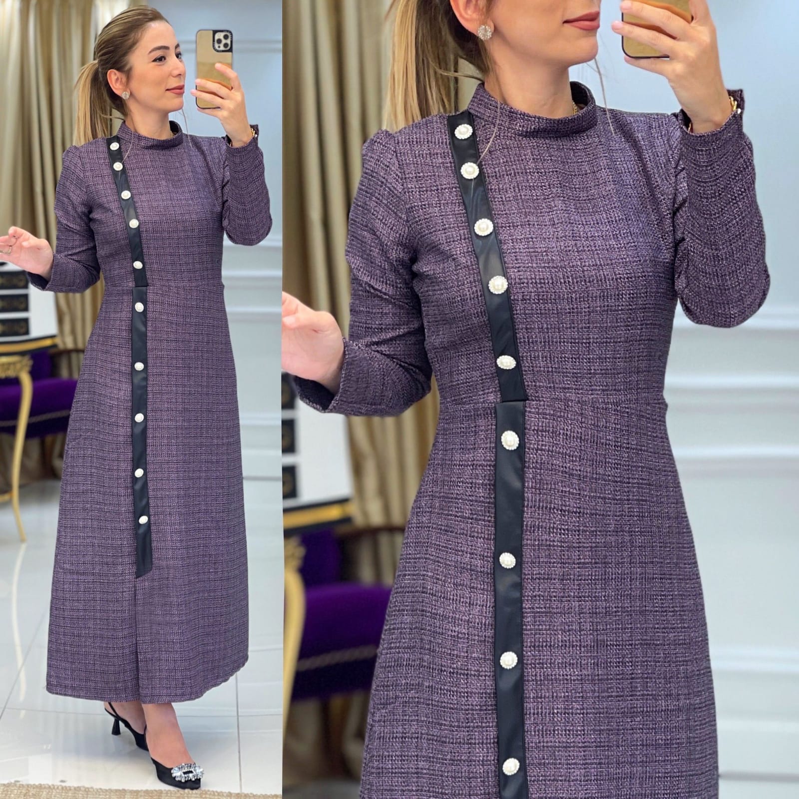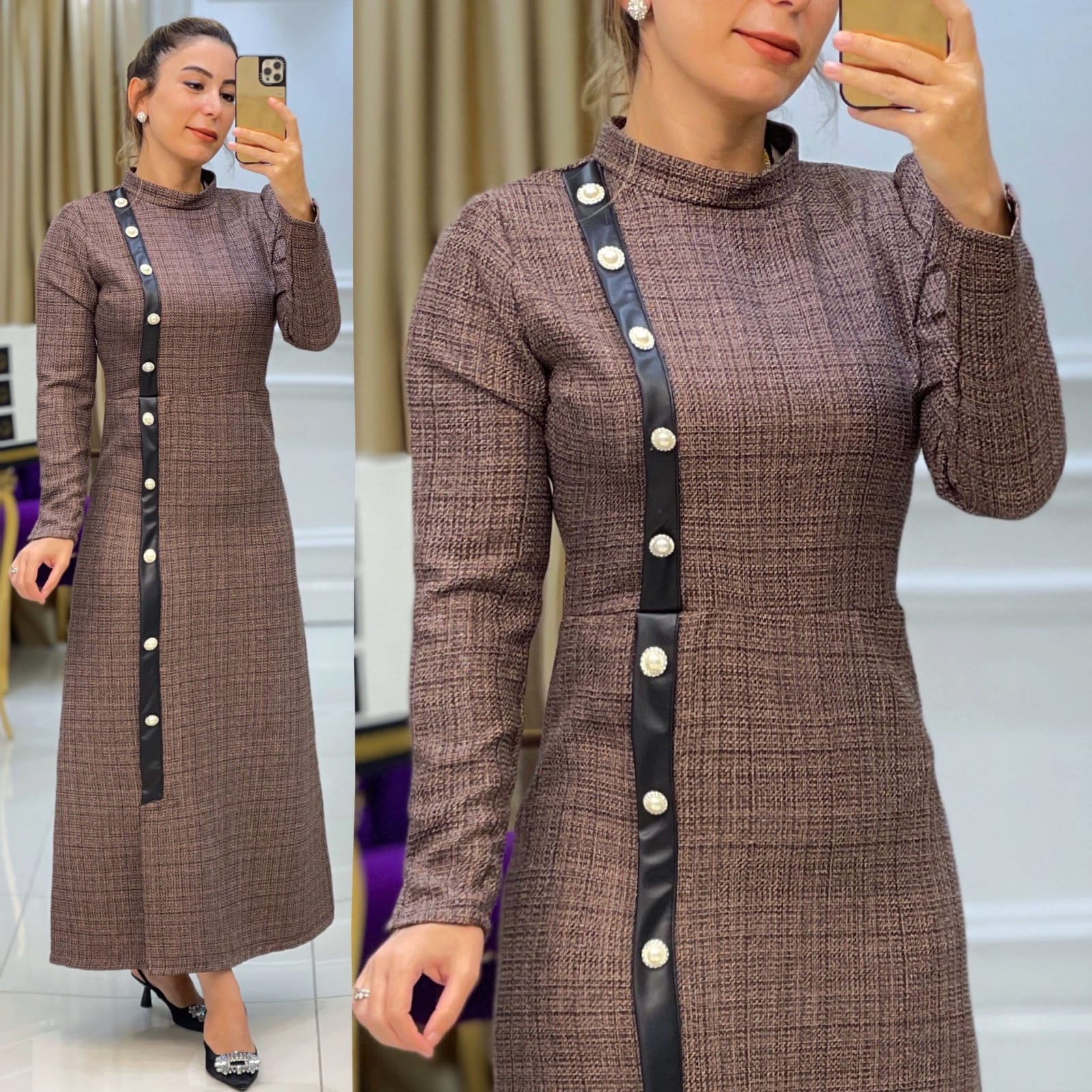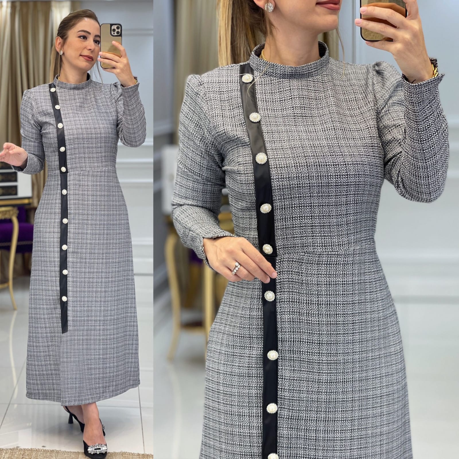 Taş işlemeli zarif elbise - Saklı tesettür kadın giyim elbise etek tunik takım