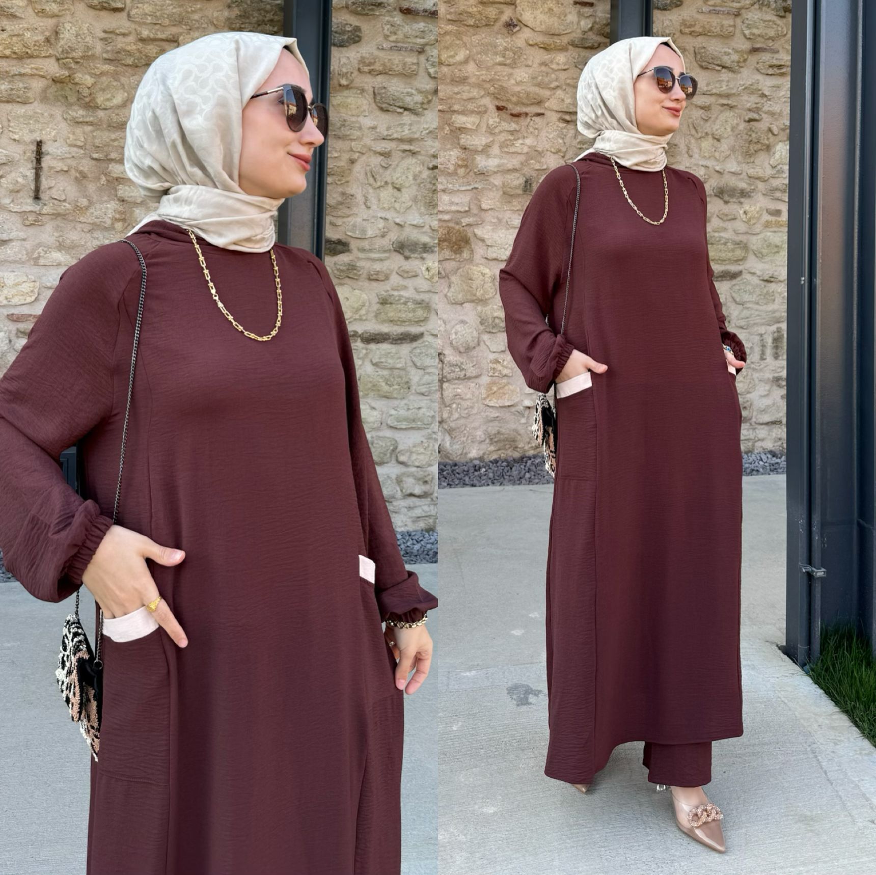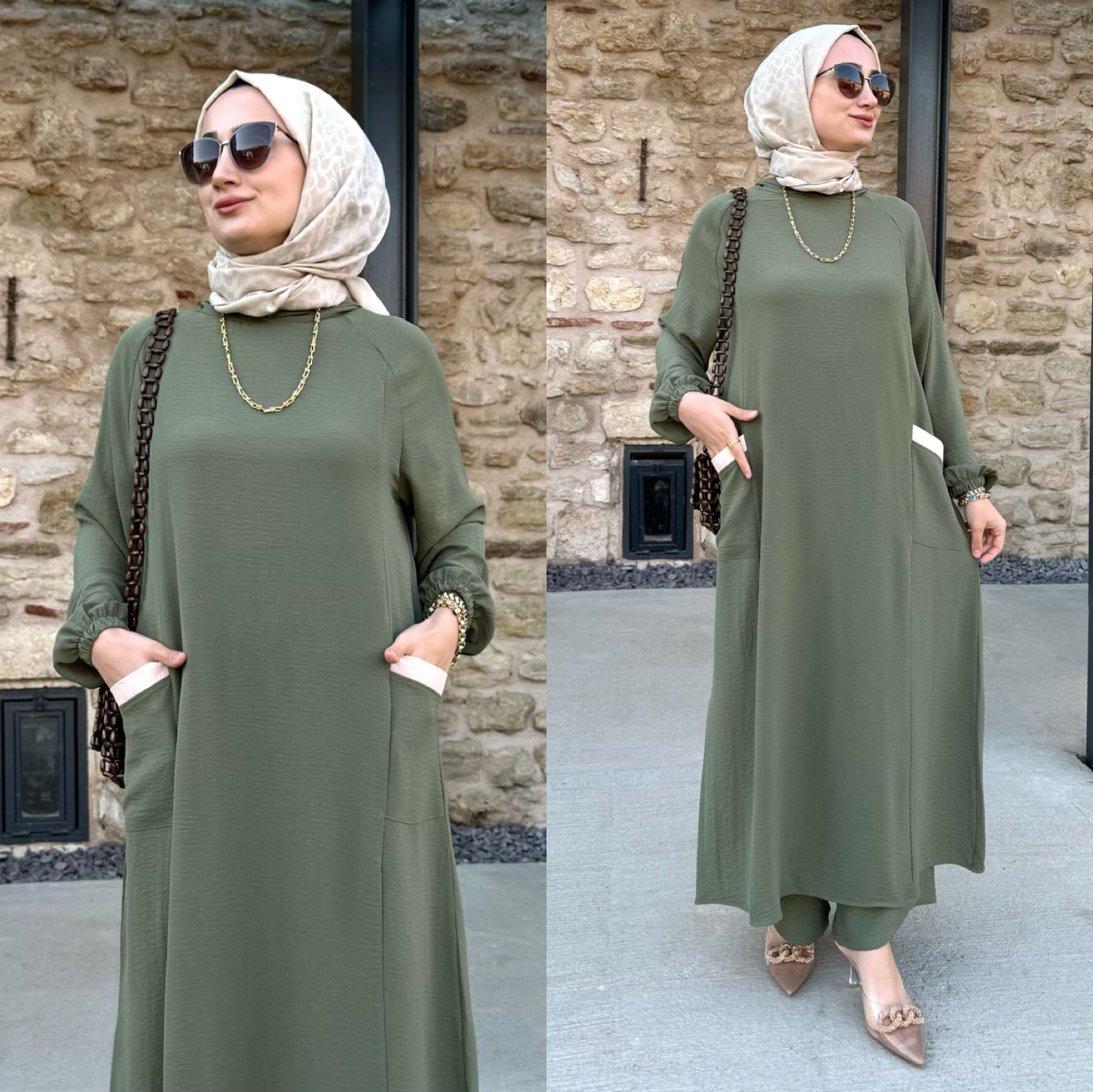 Saklı tesettür kadın giyim elbise etek tunik takım
