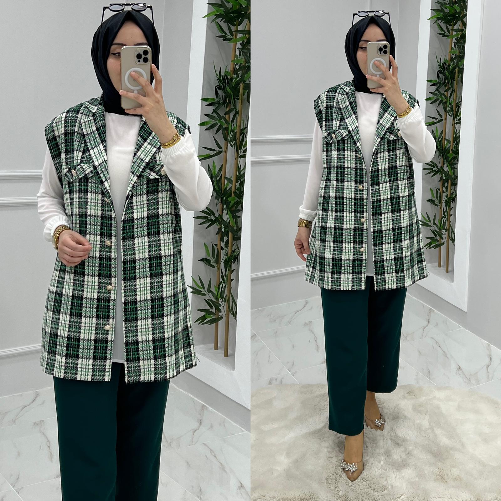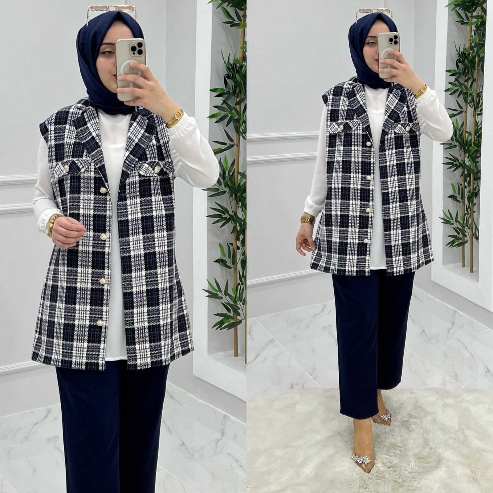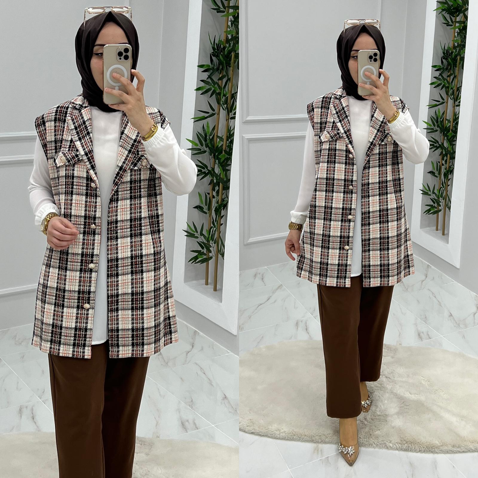Tuvit yelek pantalon takım - Saklı tesettür kadın giyim elbise etek tunik takım