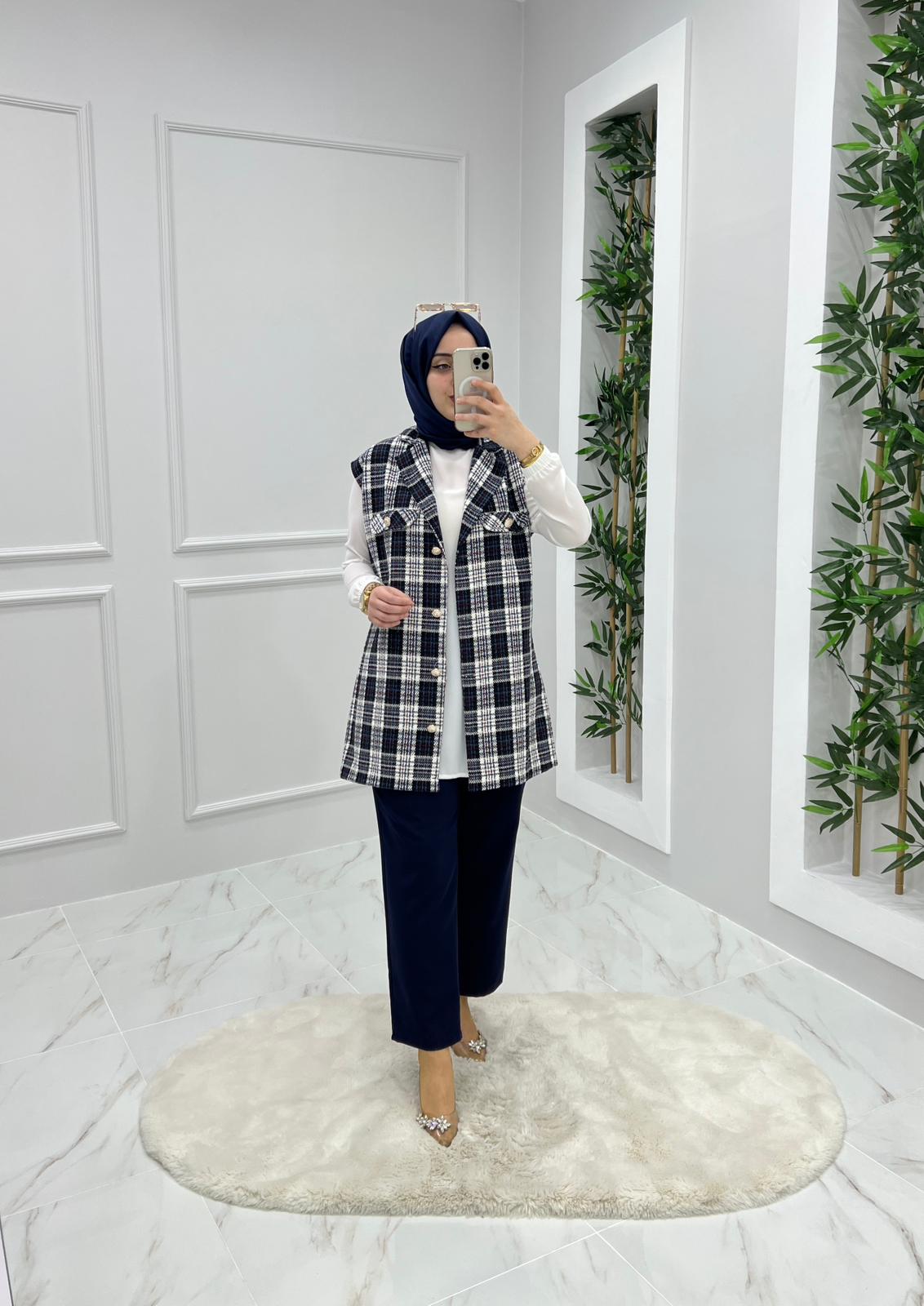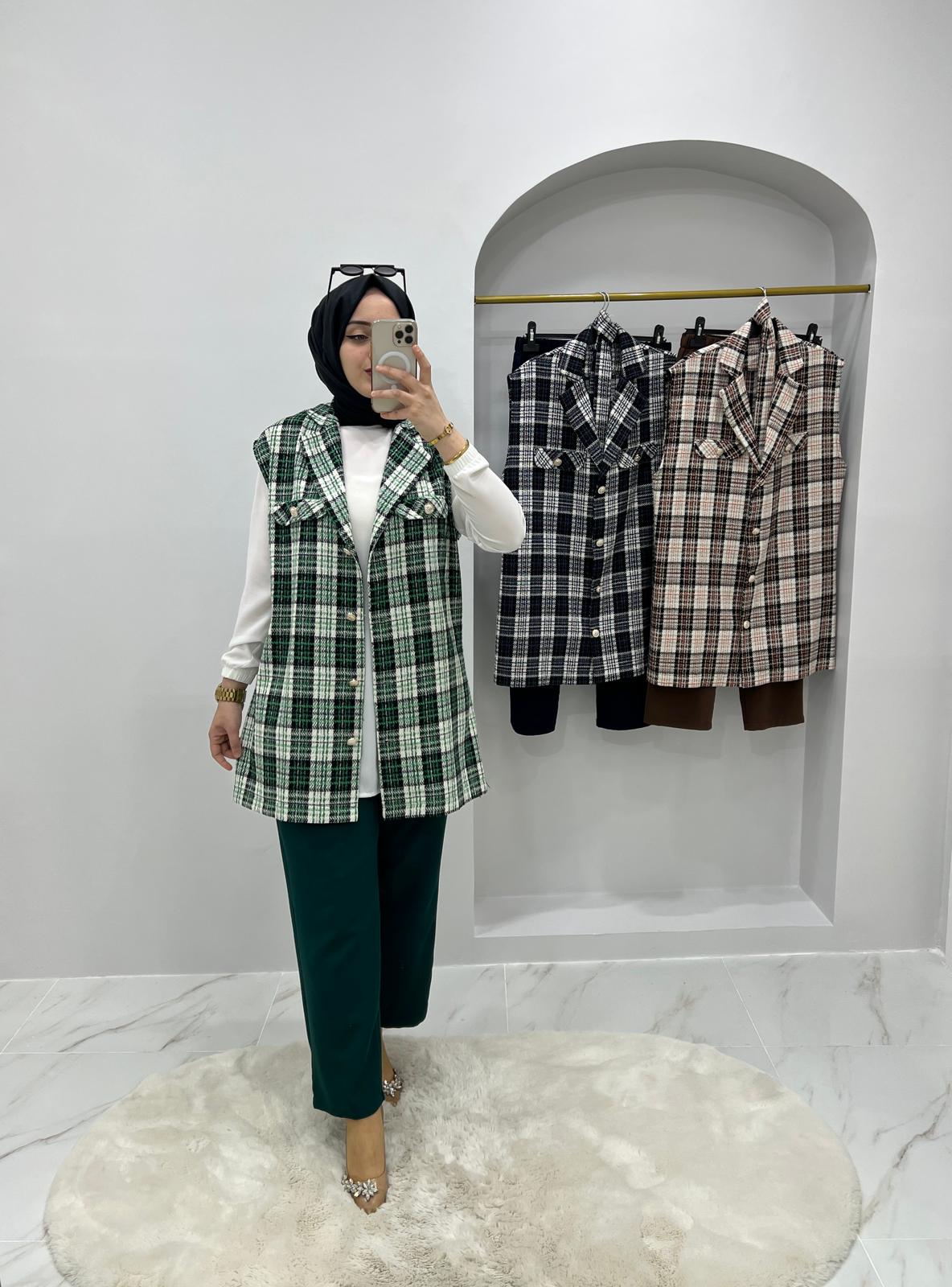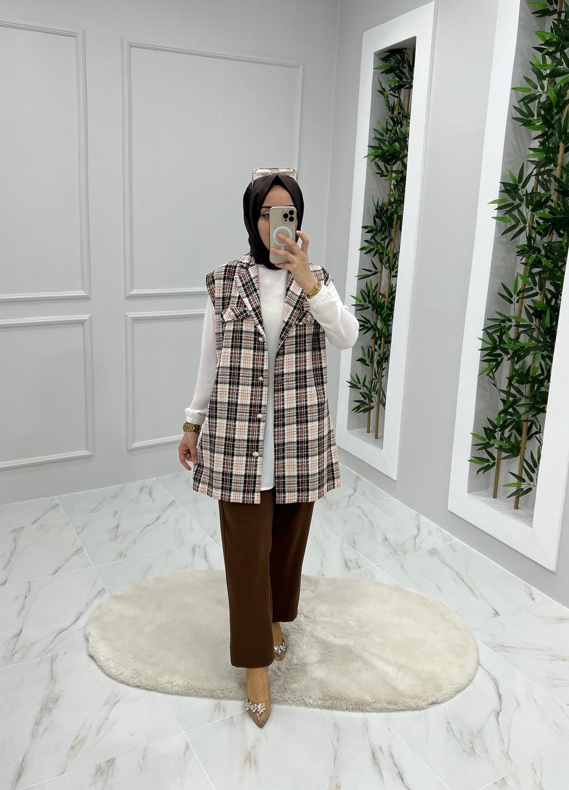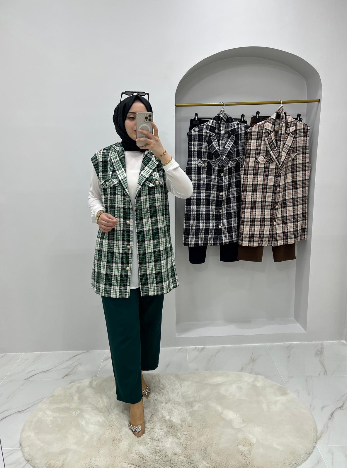 Tuvit yelek pantalon takım - Saklı tesettür kadın giyim elbise etek tunik takım