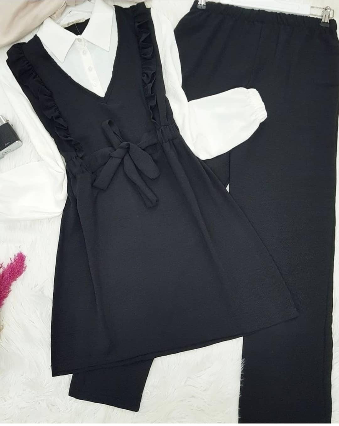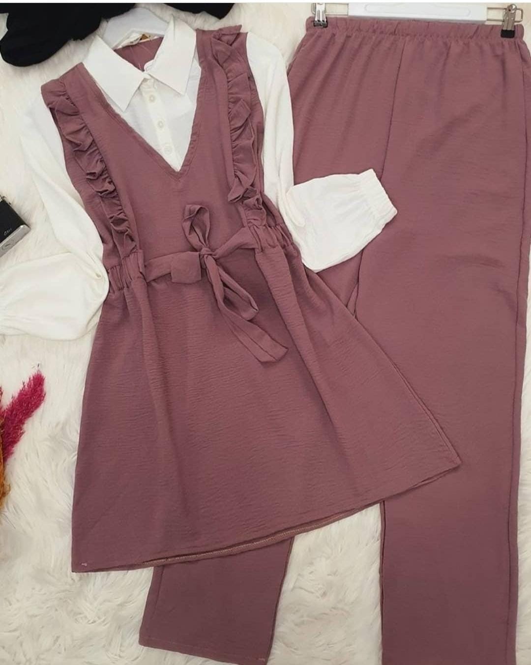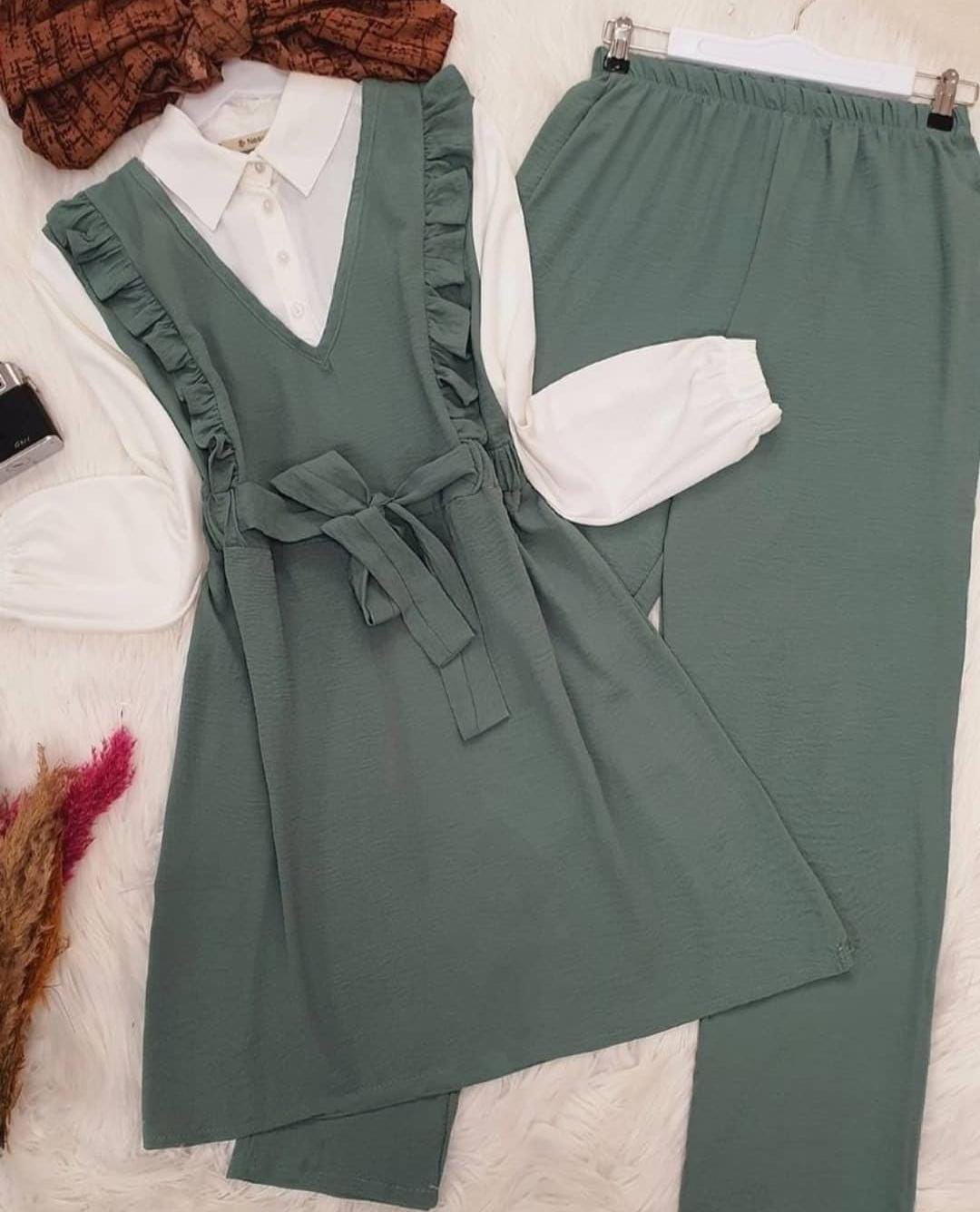 Üçlü pantolon takım ayrobin kumaş - Saklı tesettür kadın giyim elbise etek tunik takım