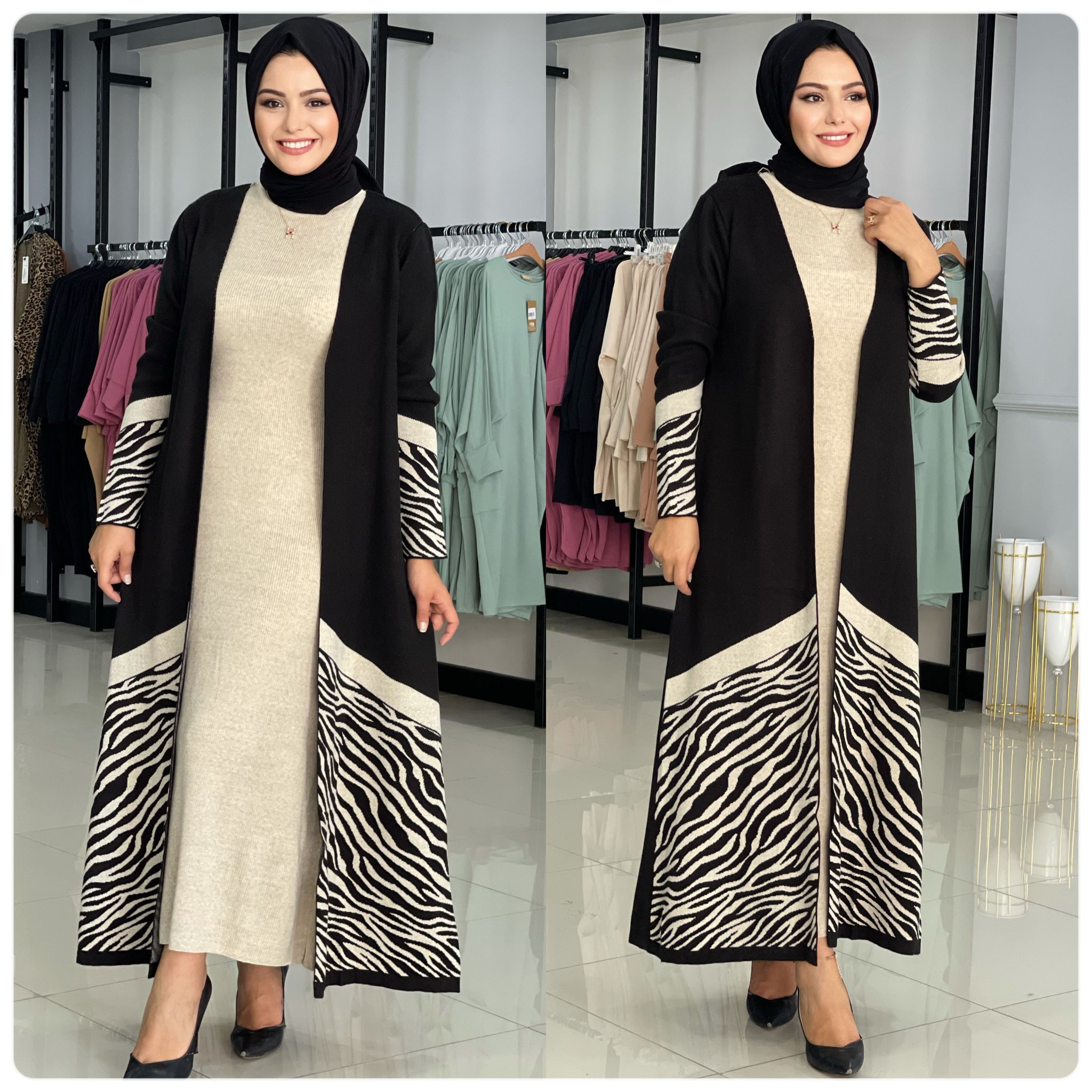 Uzun triko ikili hırka takım - Saklı tesettür kadın giyim elbise etek tunik takım