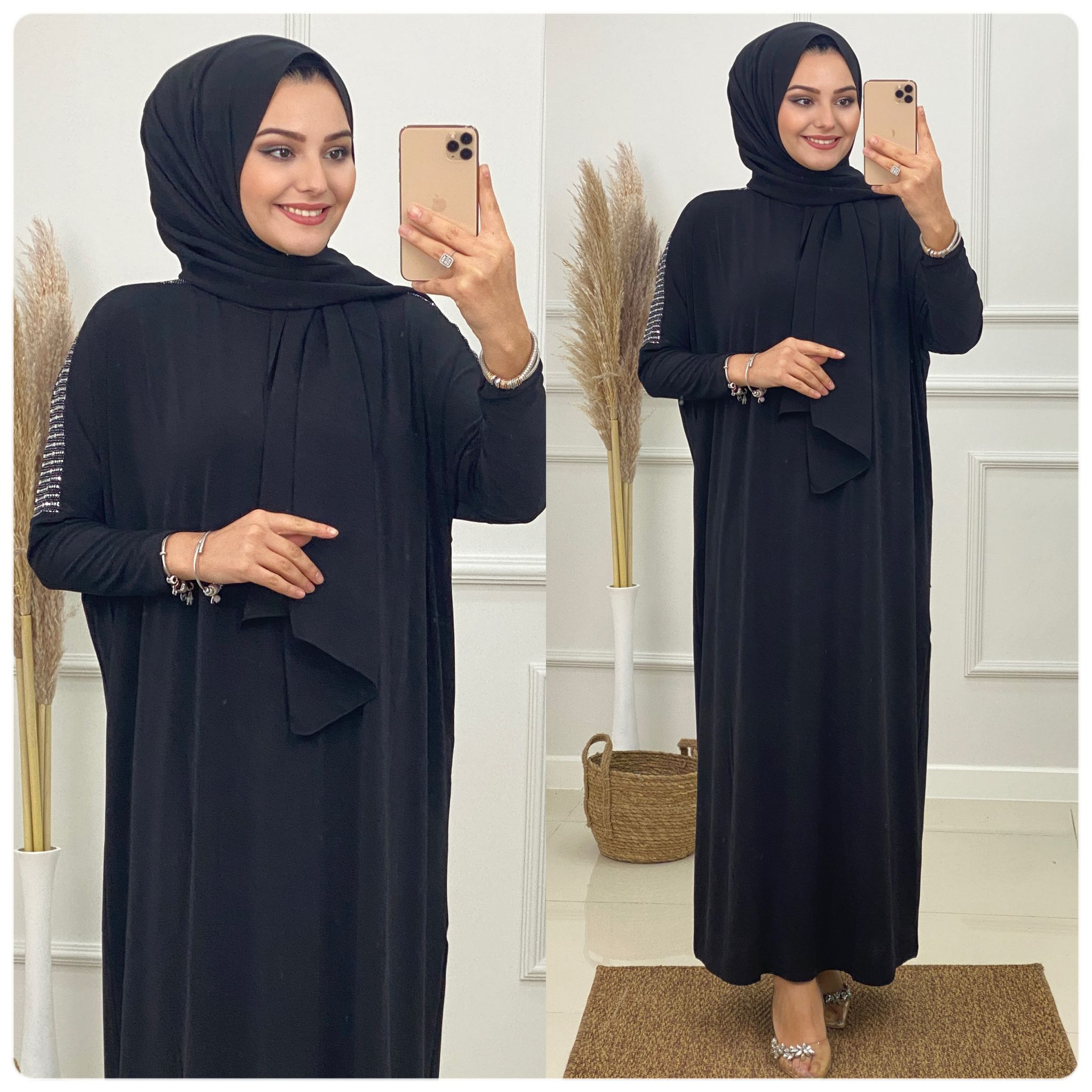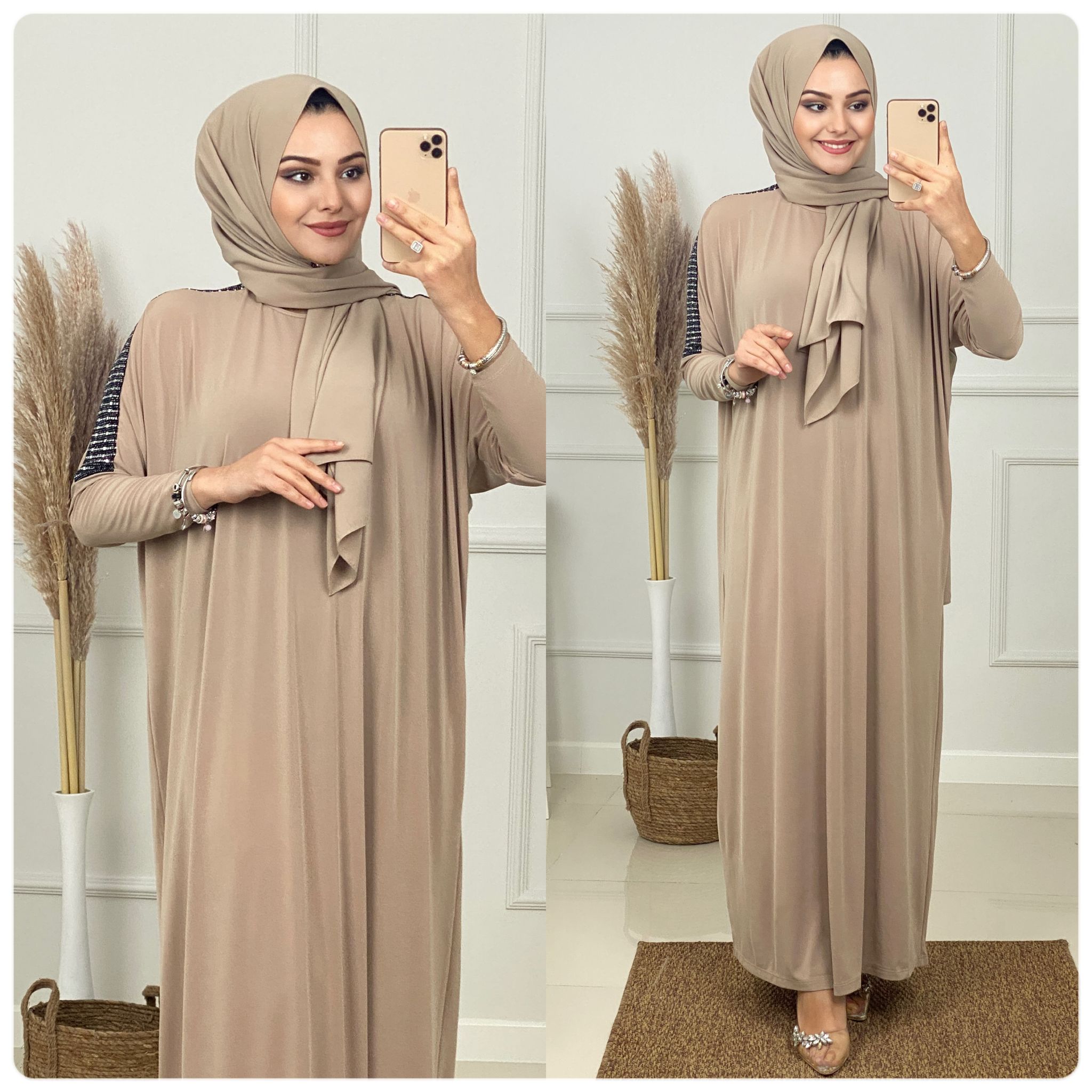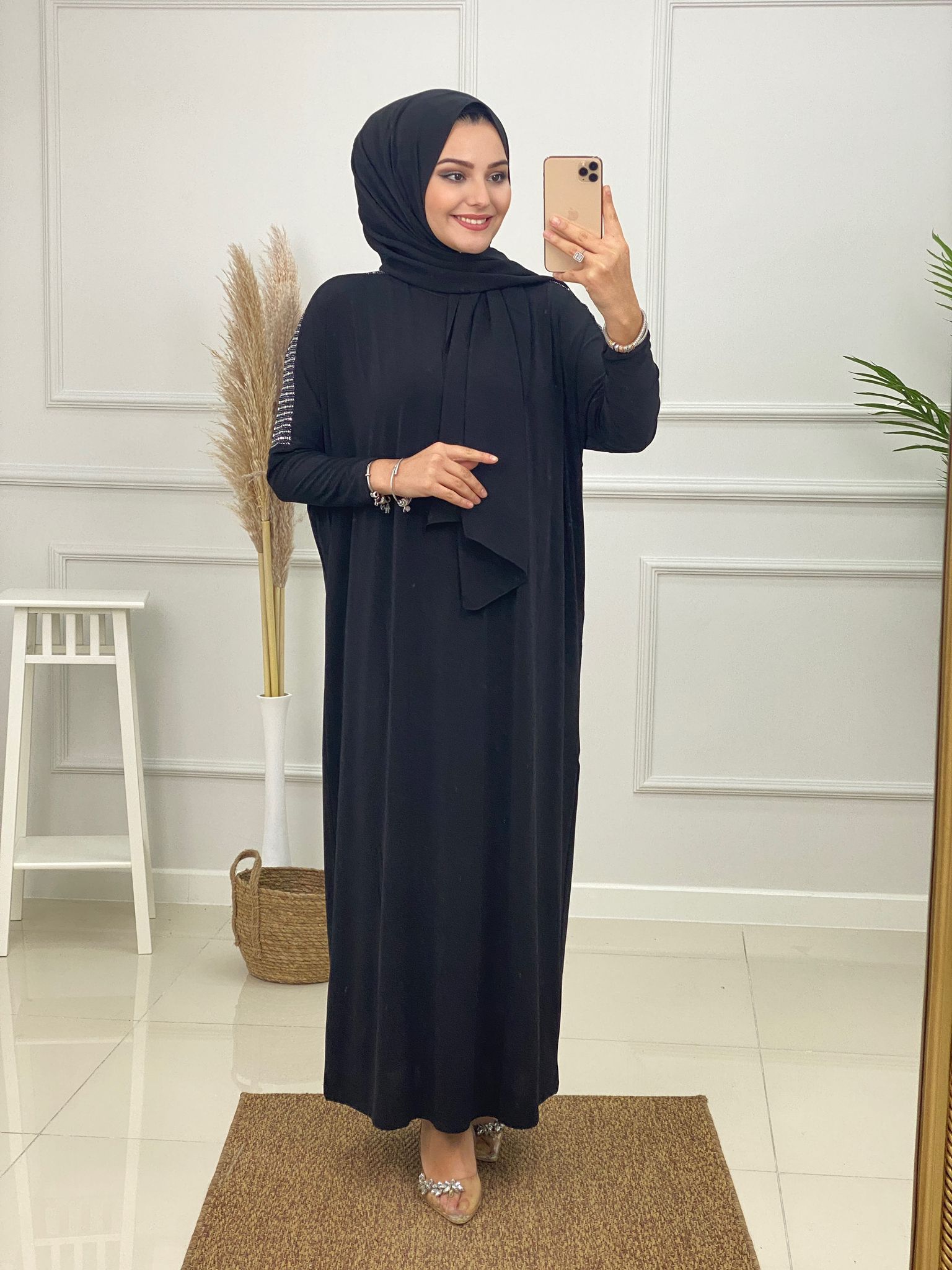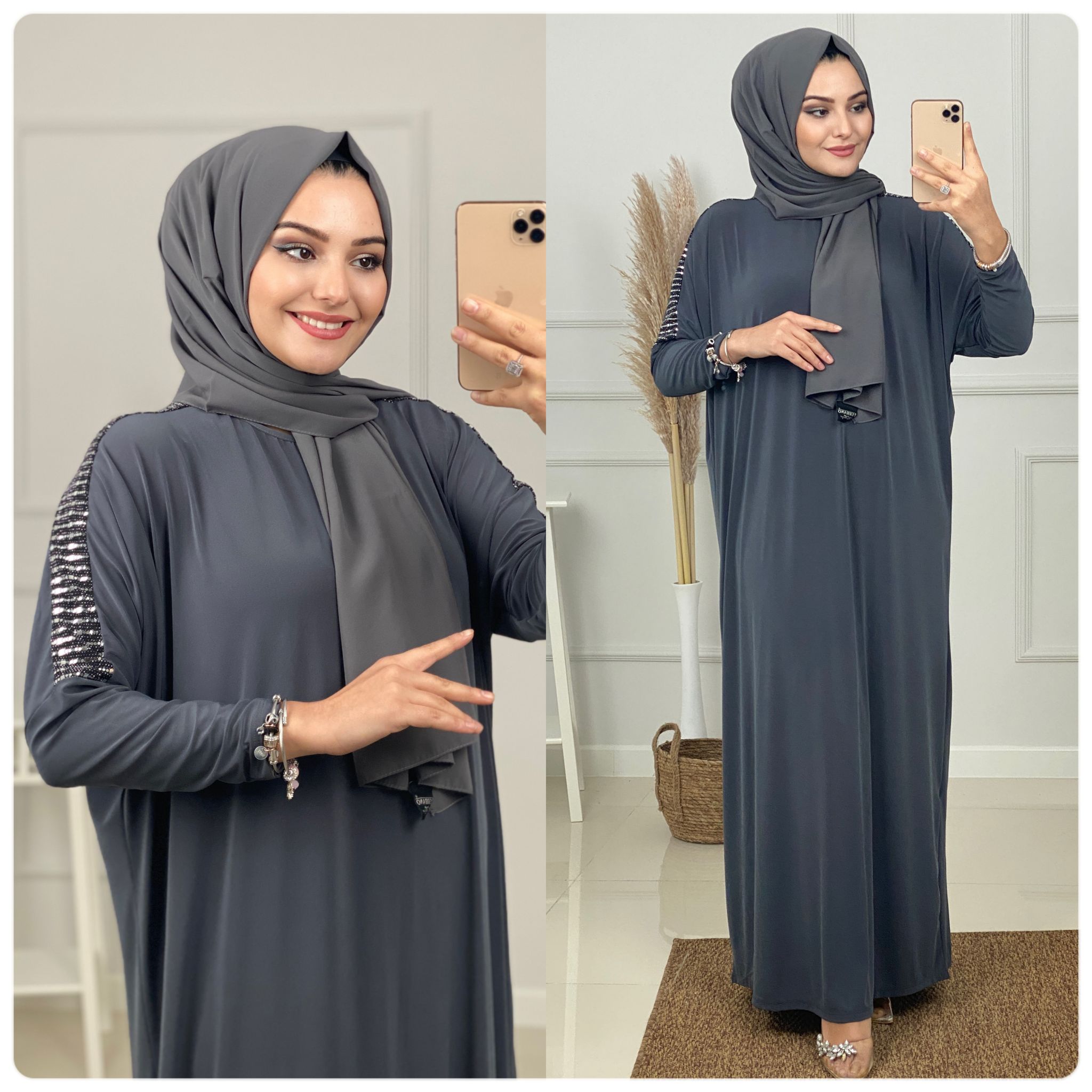 Yarasa kol sandy kumaş ferace - Saklı tesettür kadın giyim elbise etek tunik takım