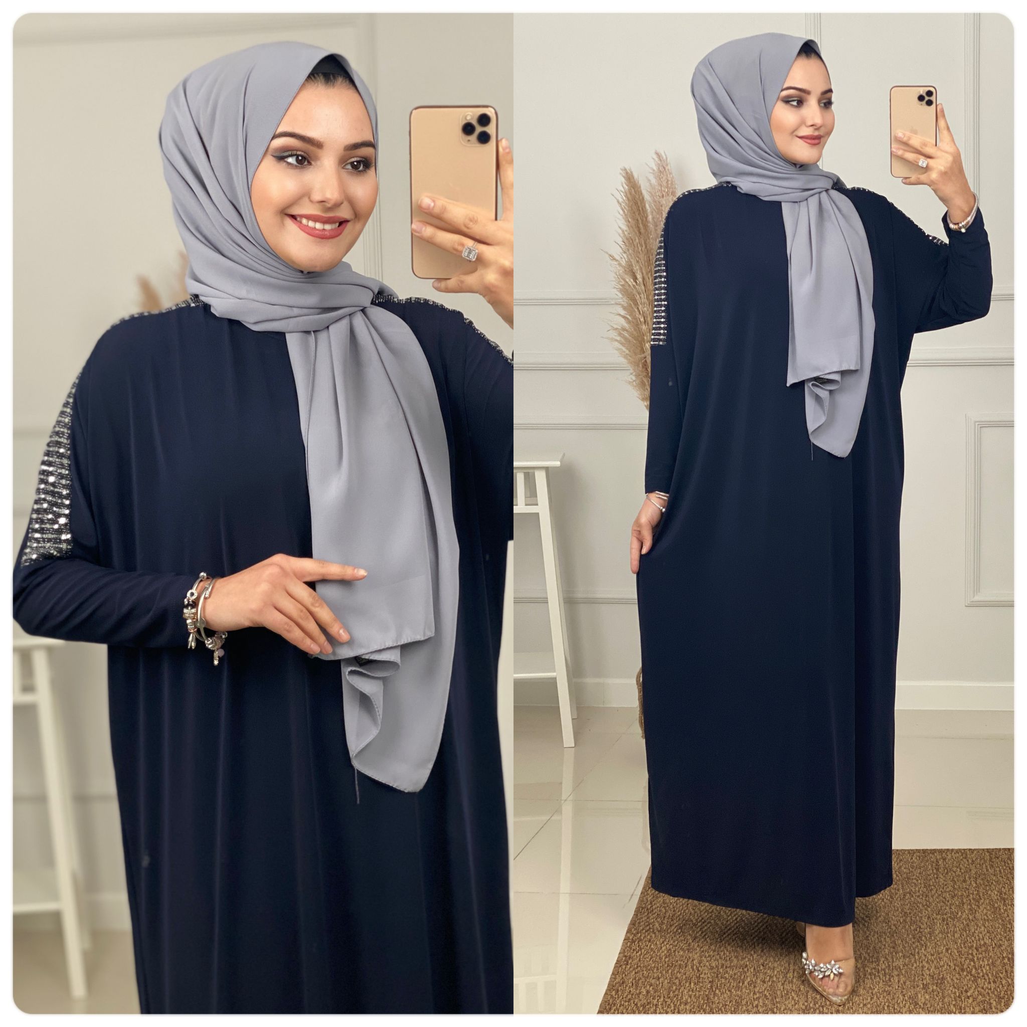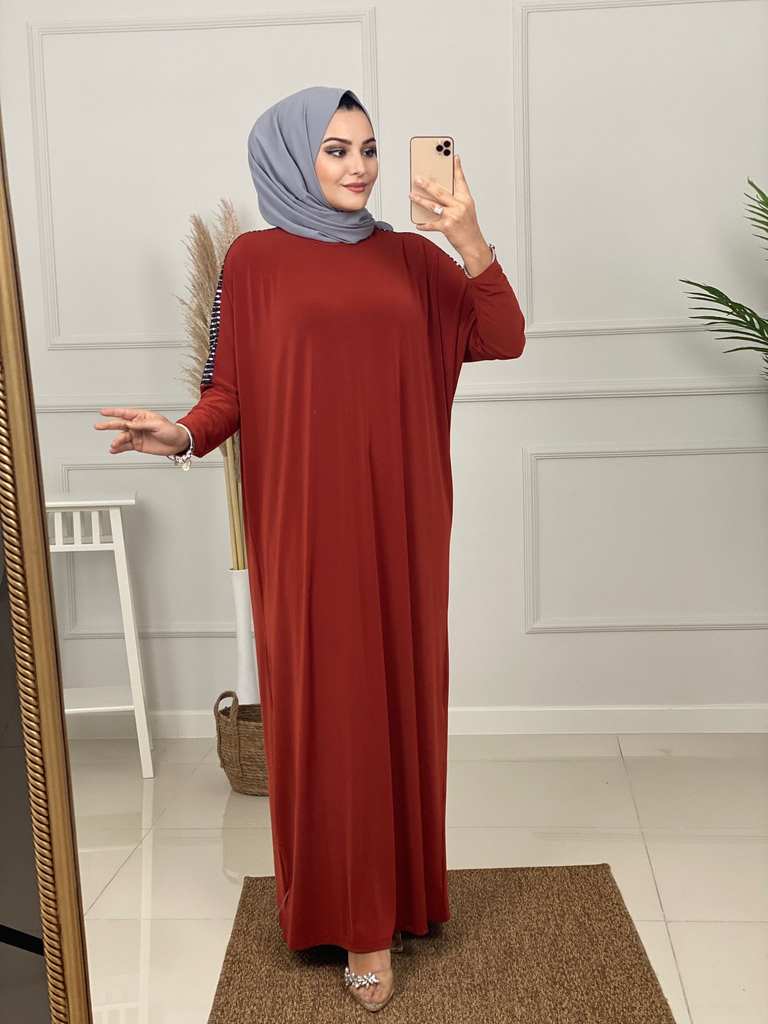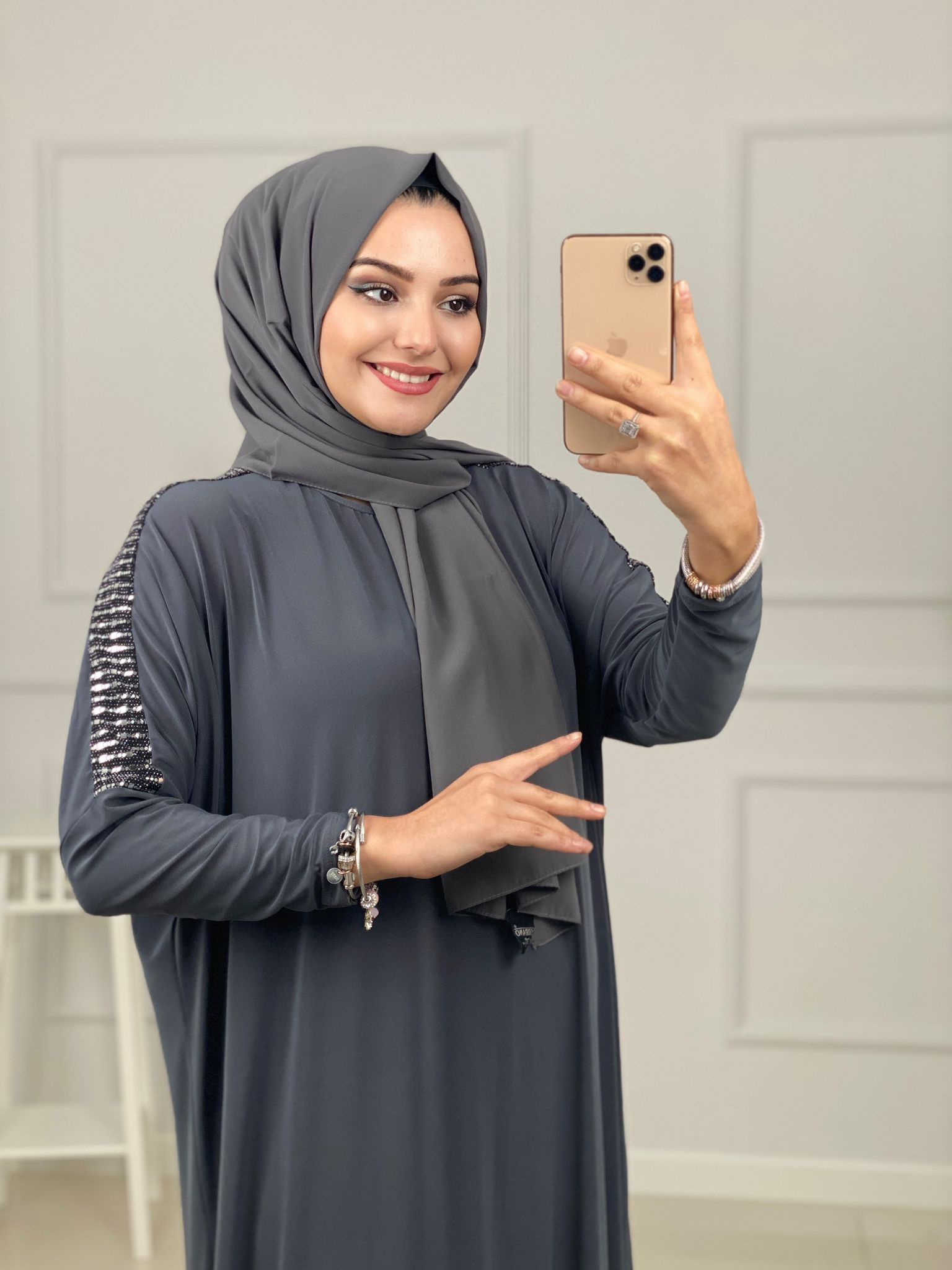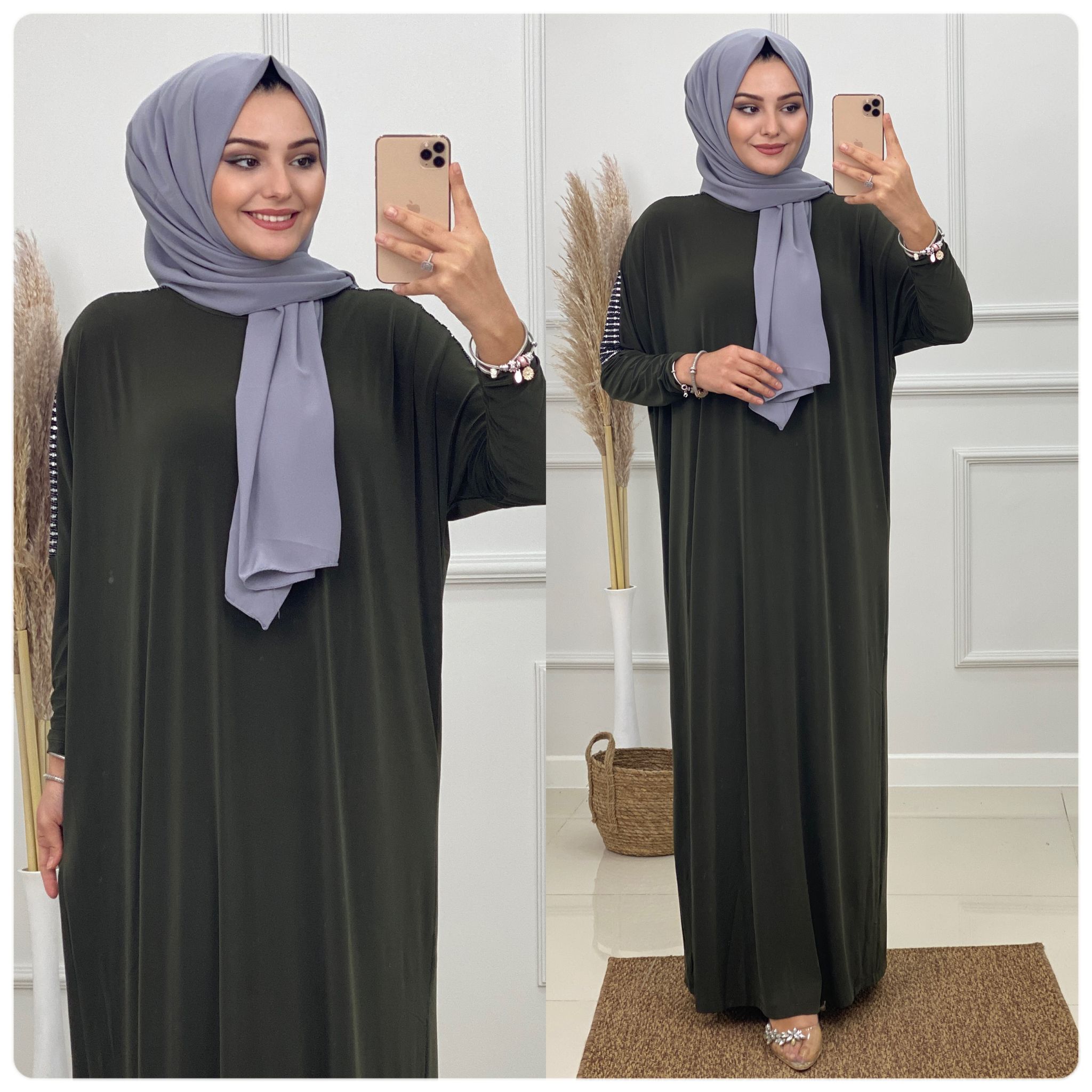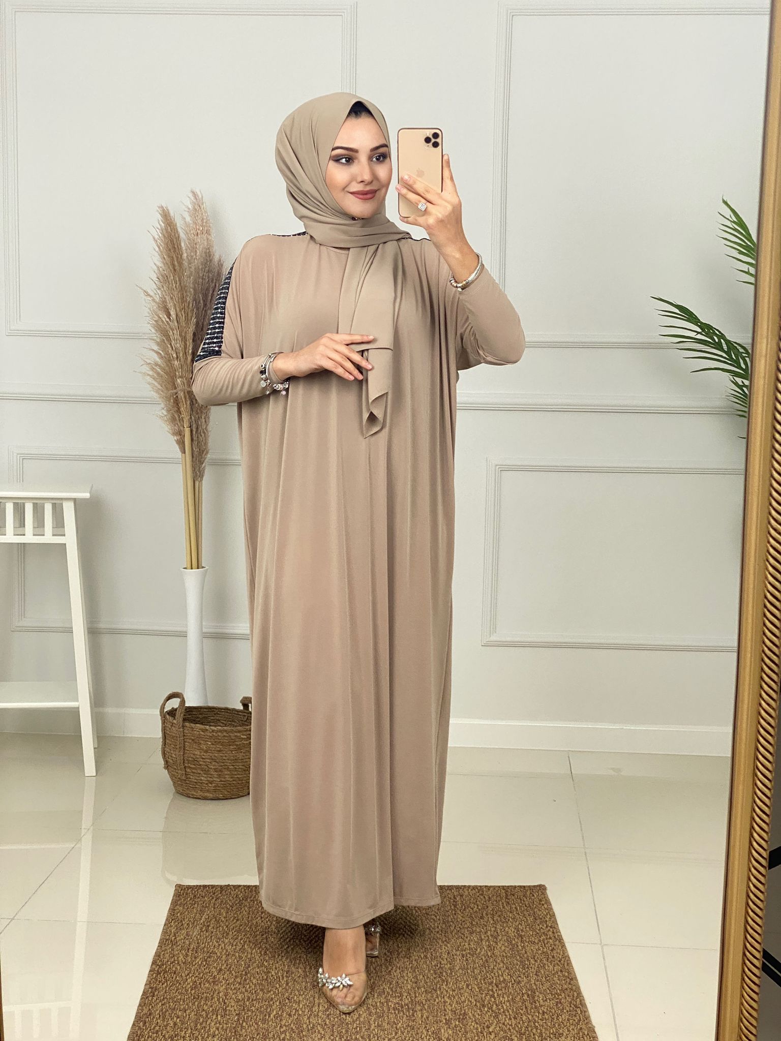 Yarasa kol sandy kumaş ferace - Saklı tesettür kadın giyim elbise etek tunik takım