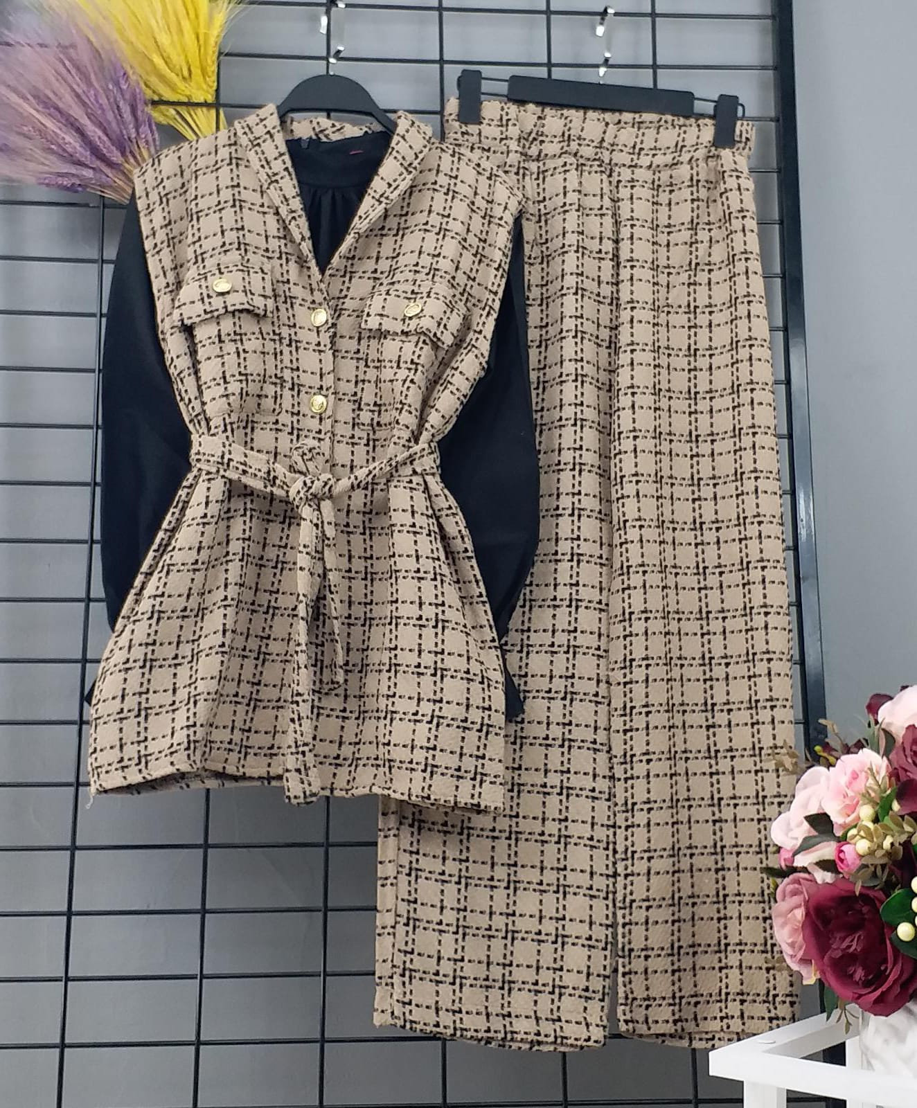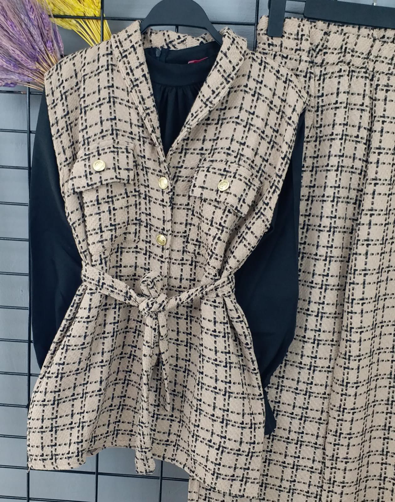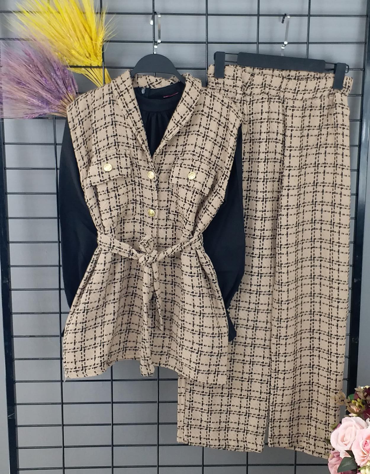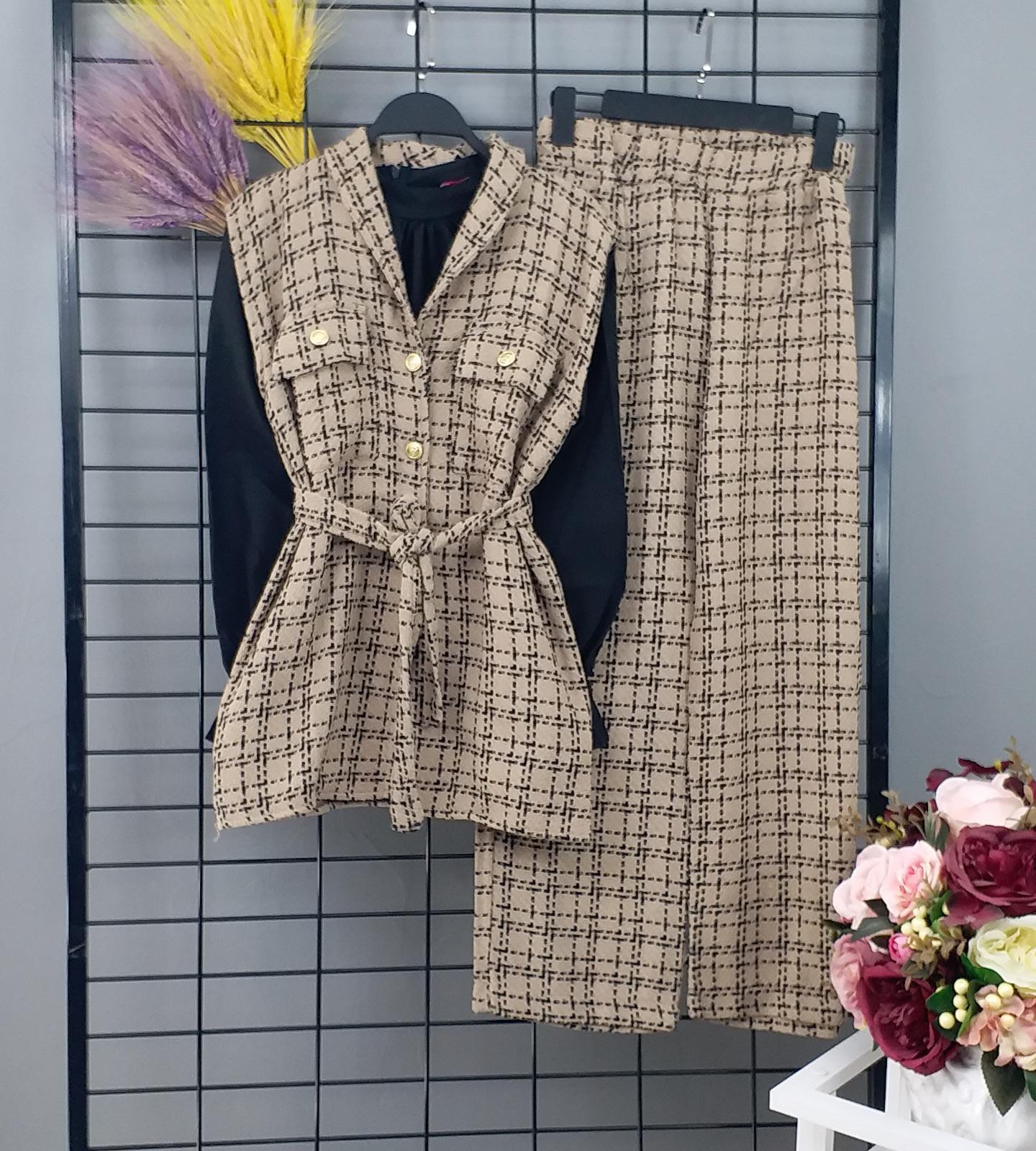 Yelek pantalon takım şanel kumaş - Saklı tesettür kadın giyim elbise etek tunik takım