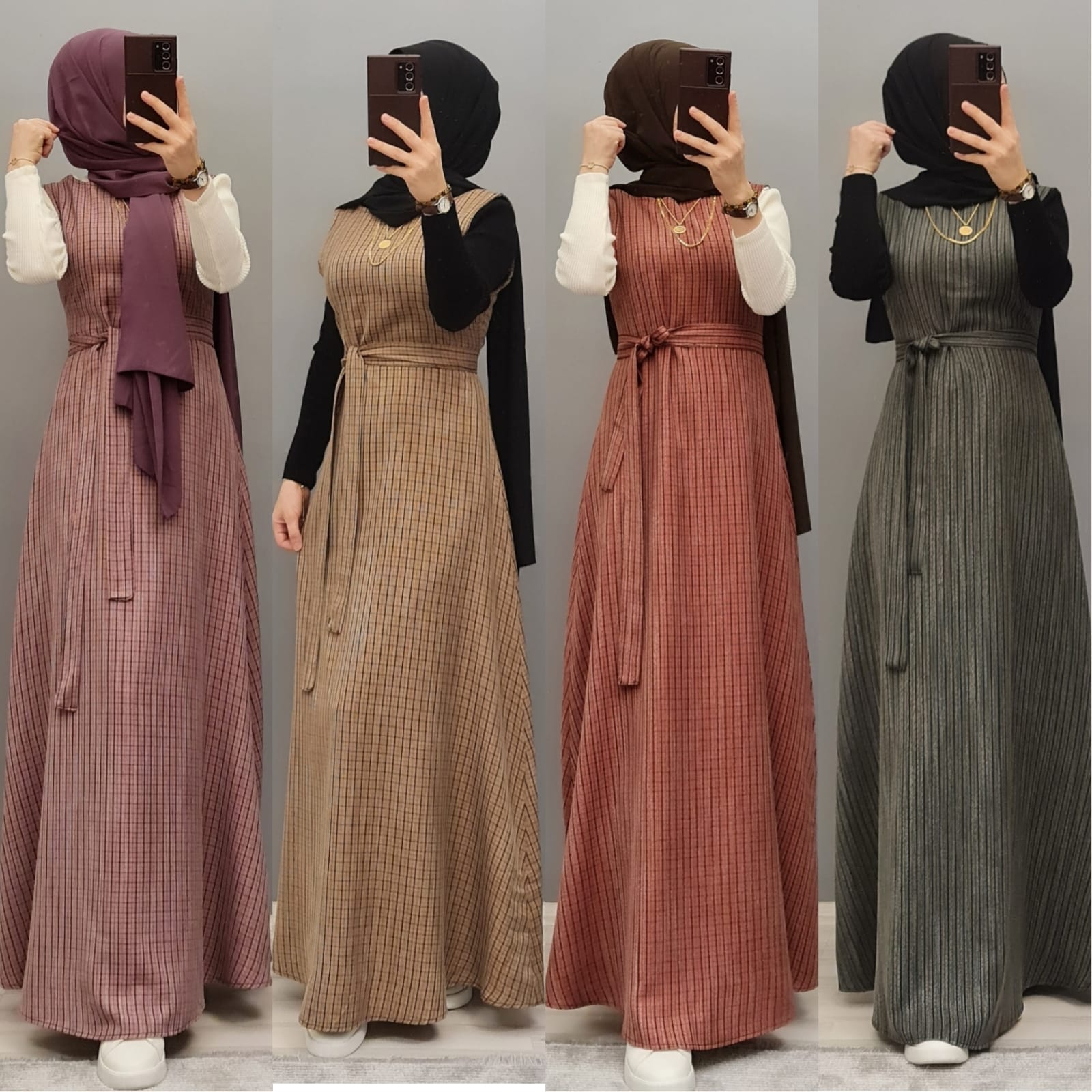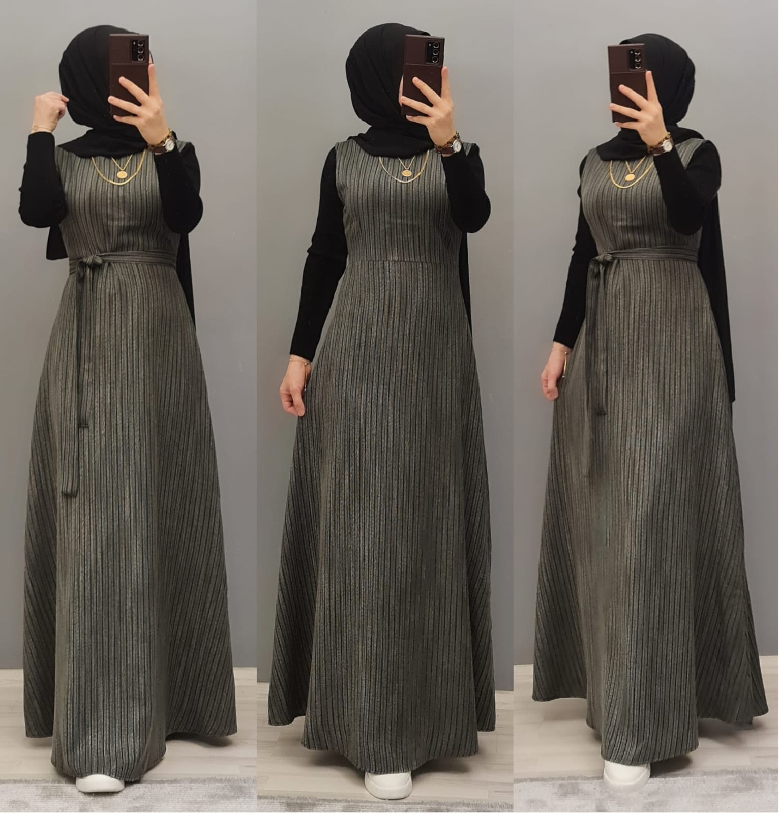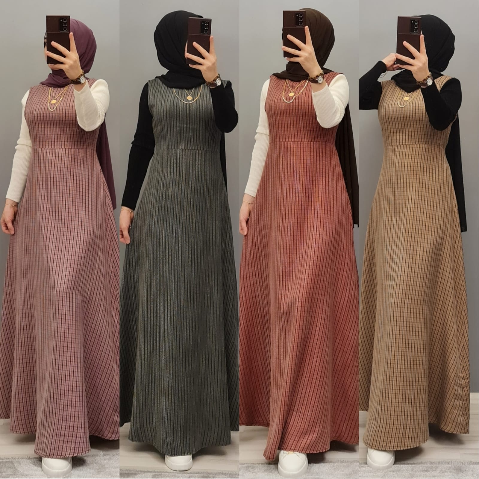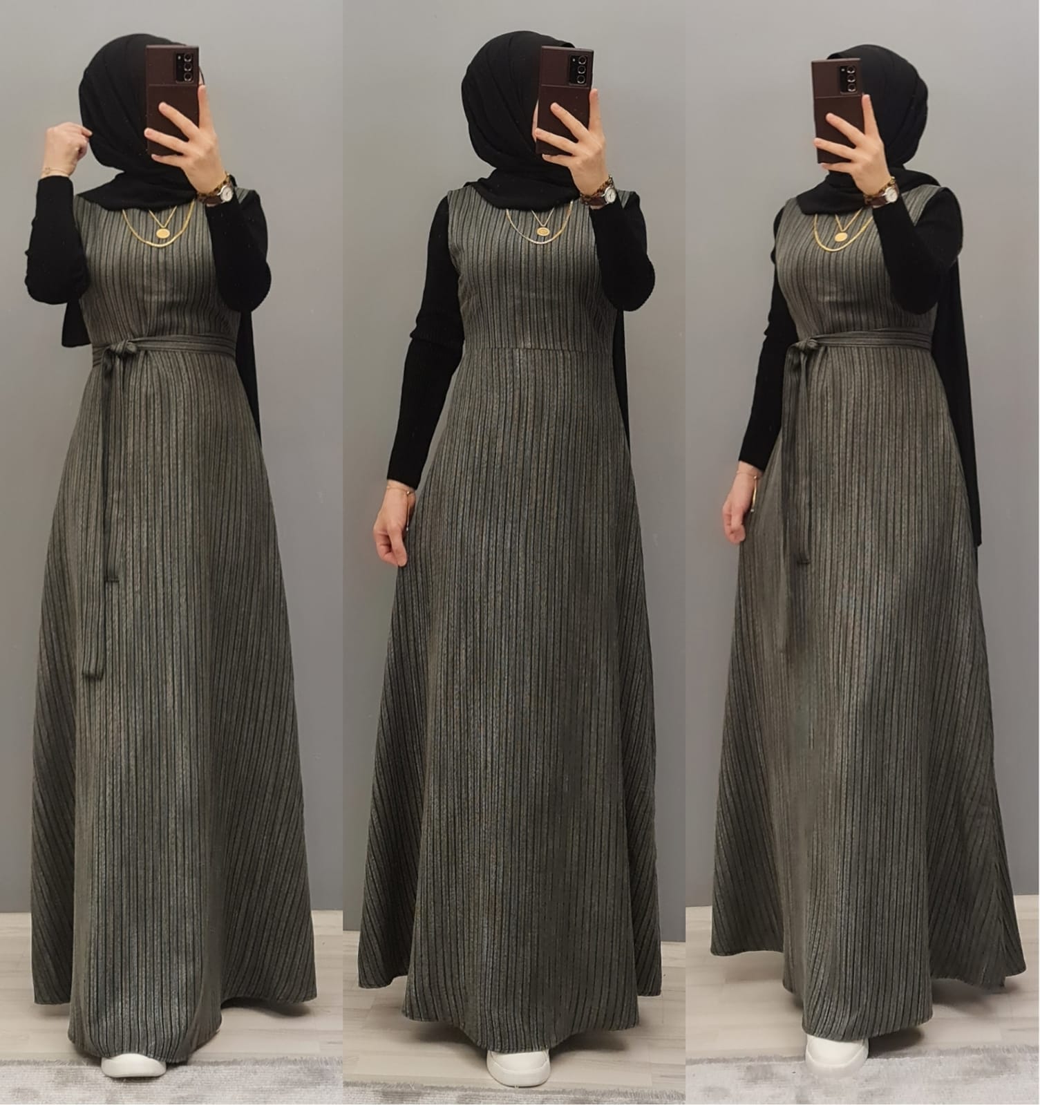 Yün efekli jile badi takım - Saklı tesettür kadın giyim elbise etek tunik takım