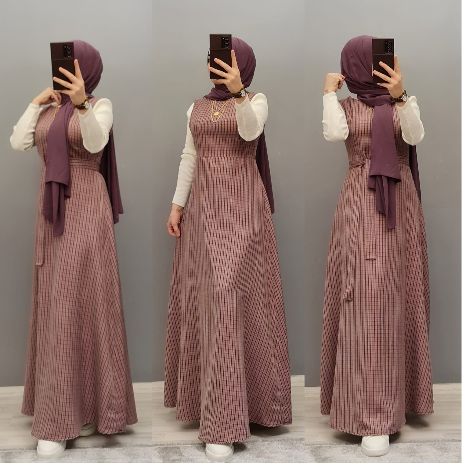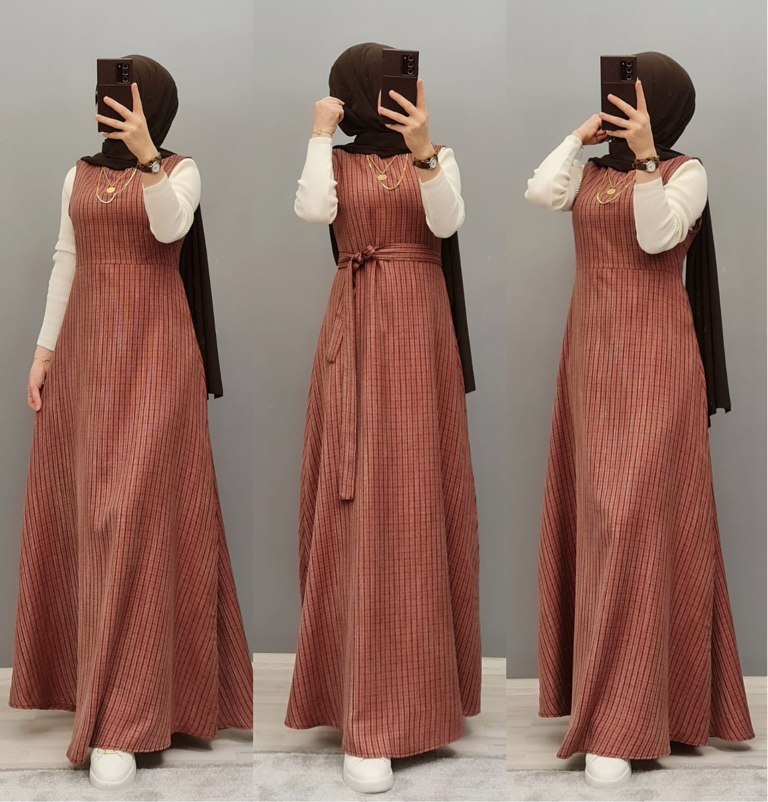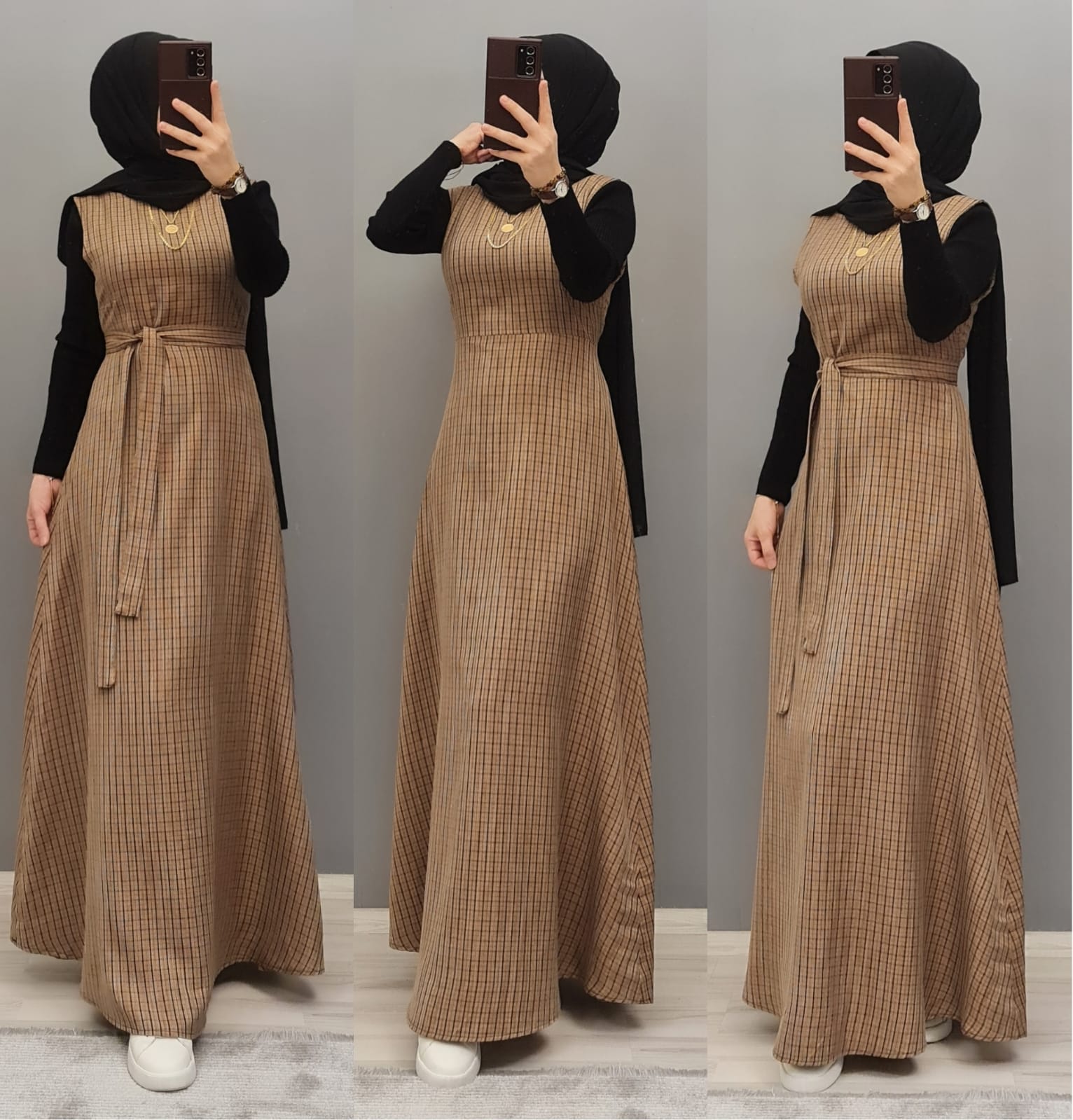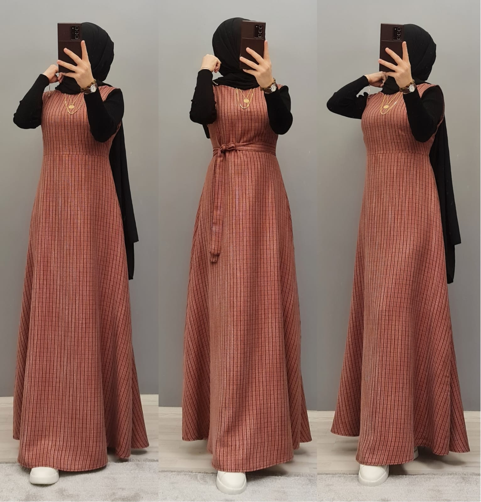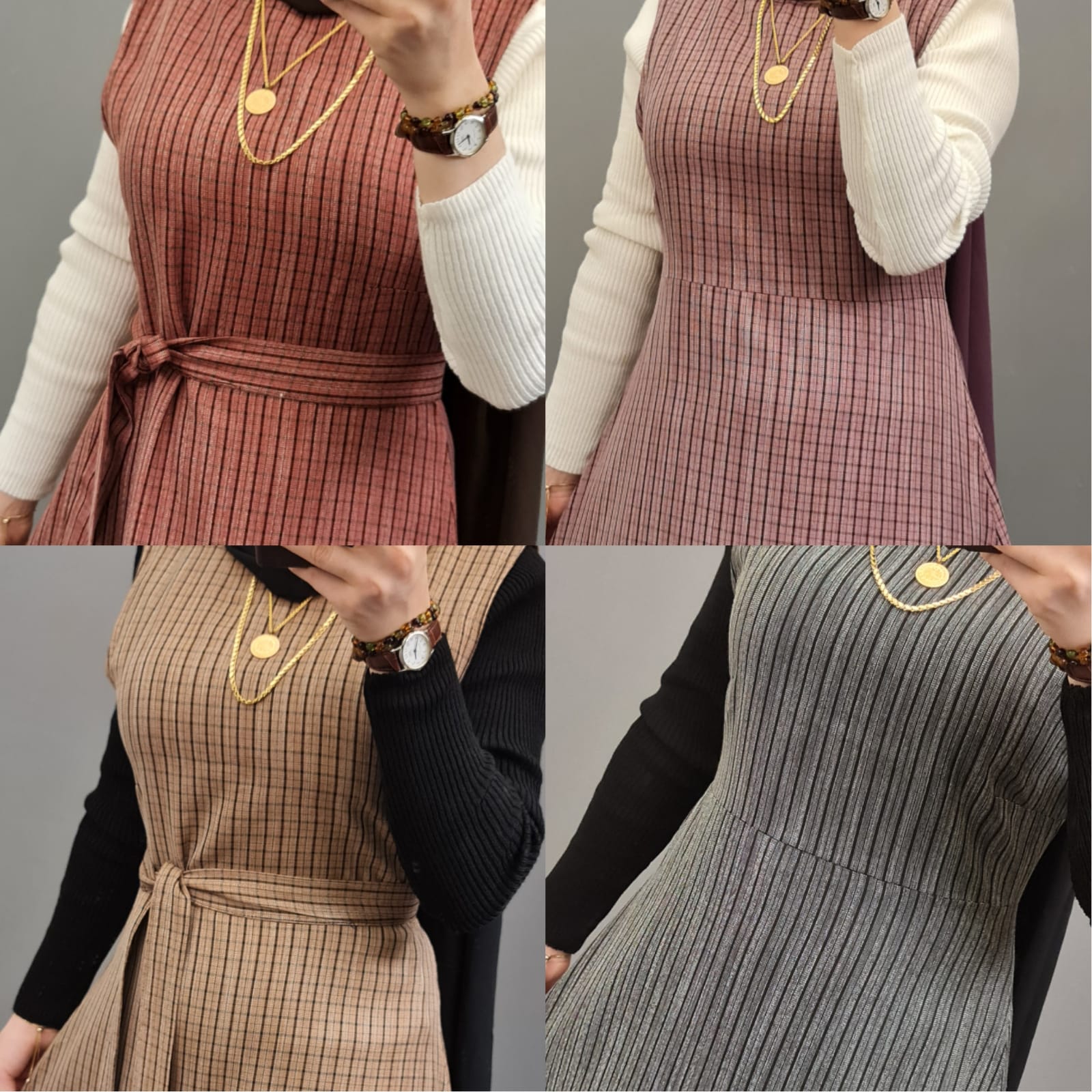 Yün efekli jile badi takım - Saklı tesettür kadın giyim elbise etek tunik takım