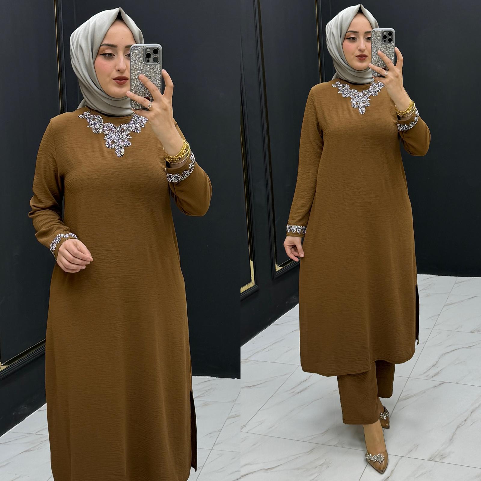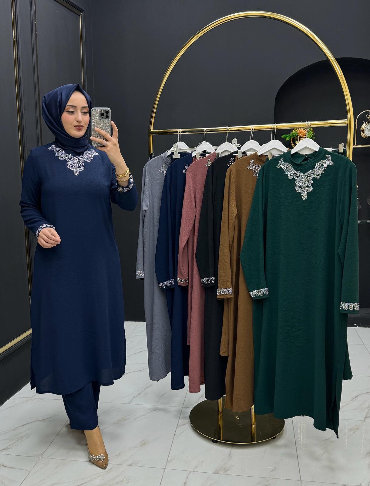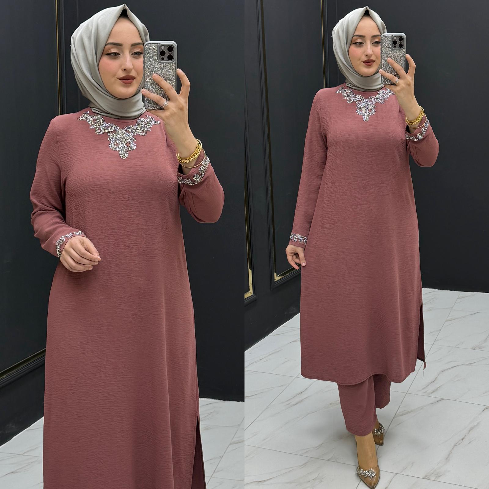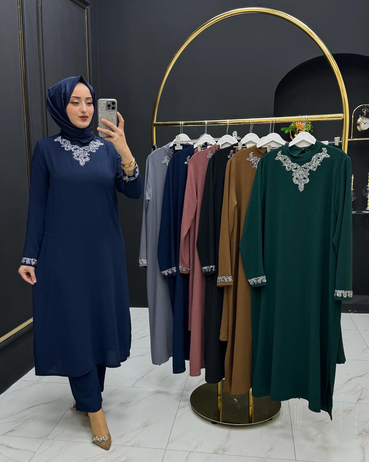 Zelal takım ayrobin krep kumaş - Saklı tesettür kadın giyim elbise etek tunik takım