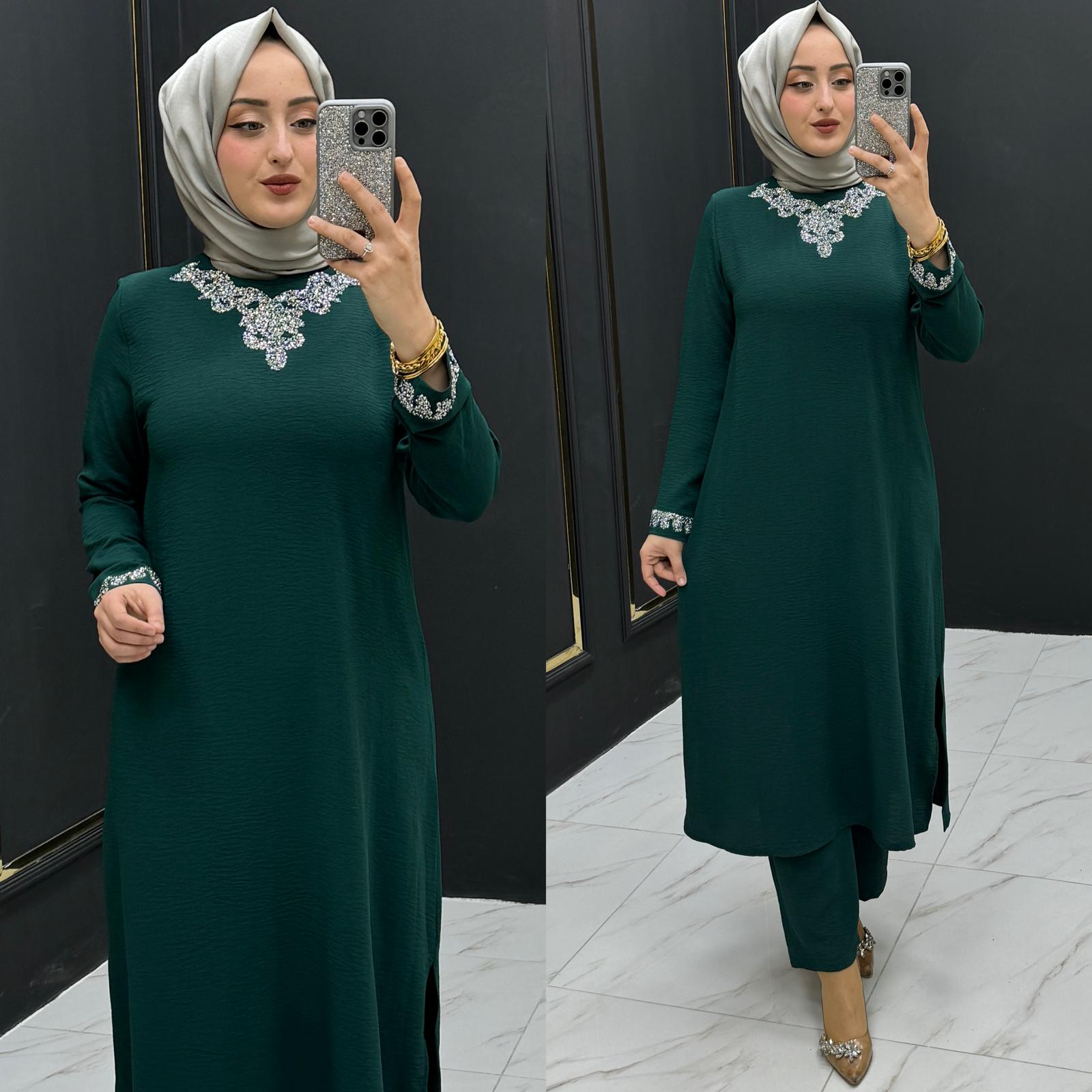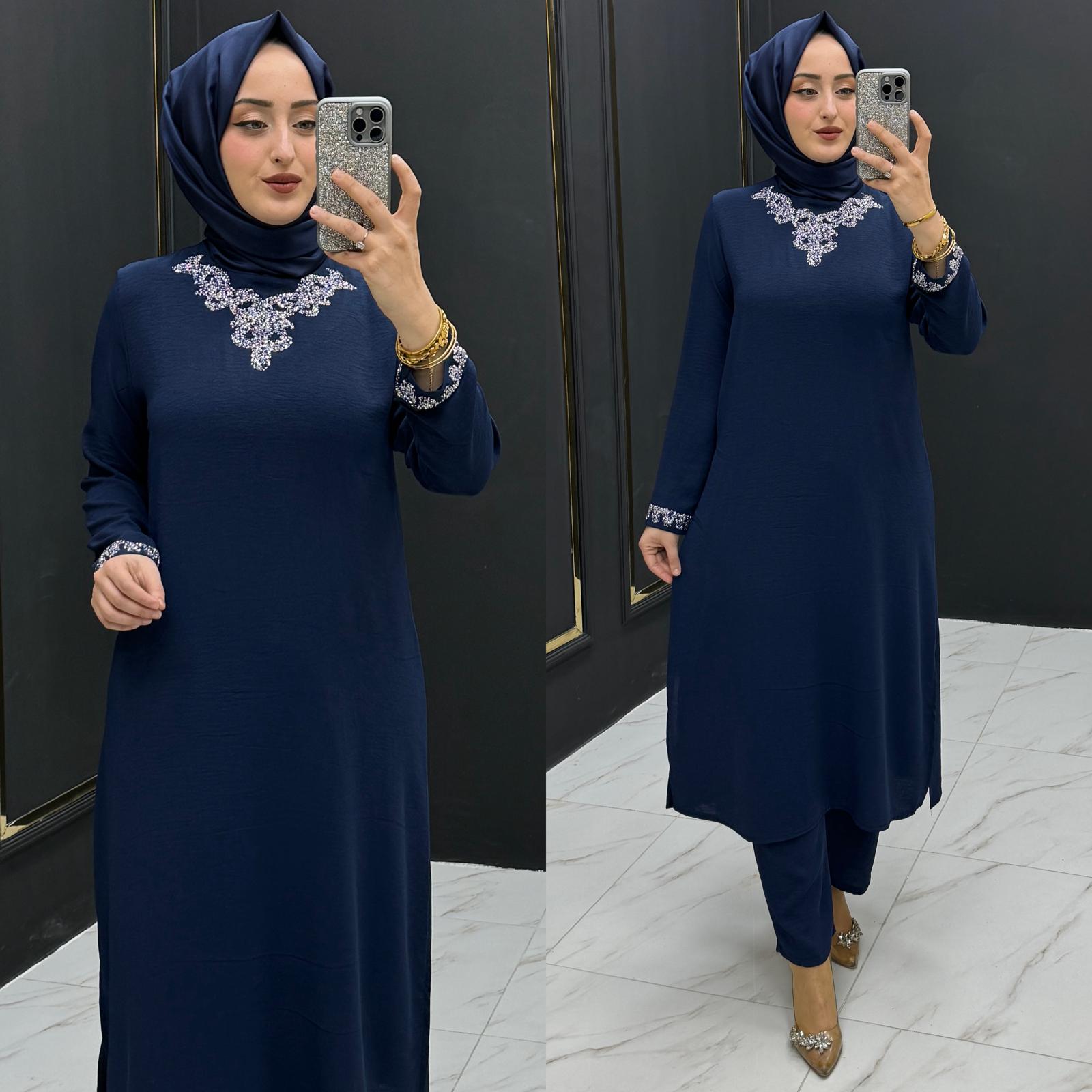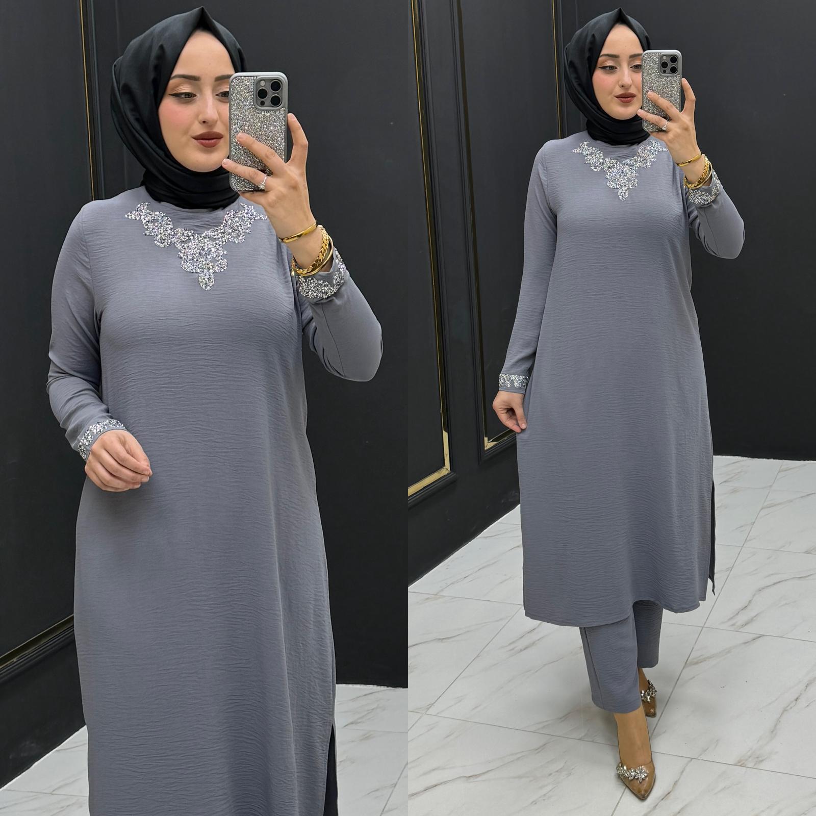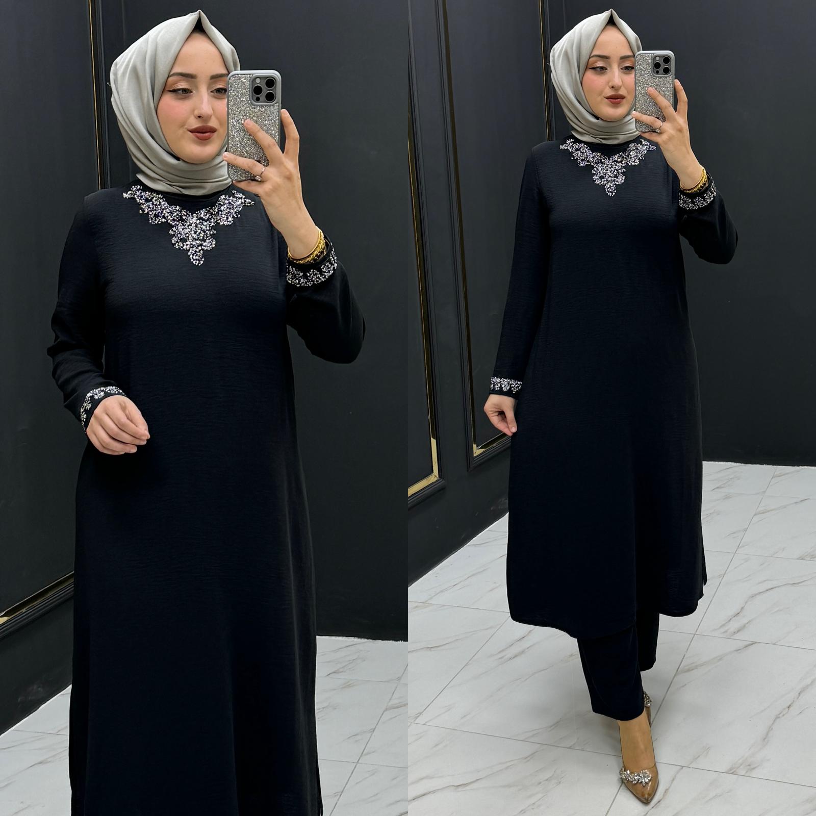 Zelal takım ayrobin krep kumaş - Saklı tesettür kadın giyim elbise etek tunik takım
